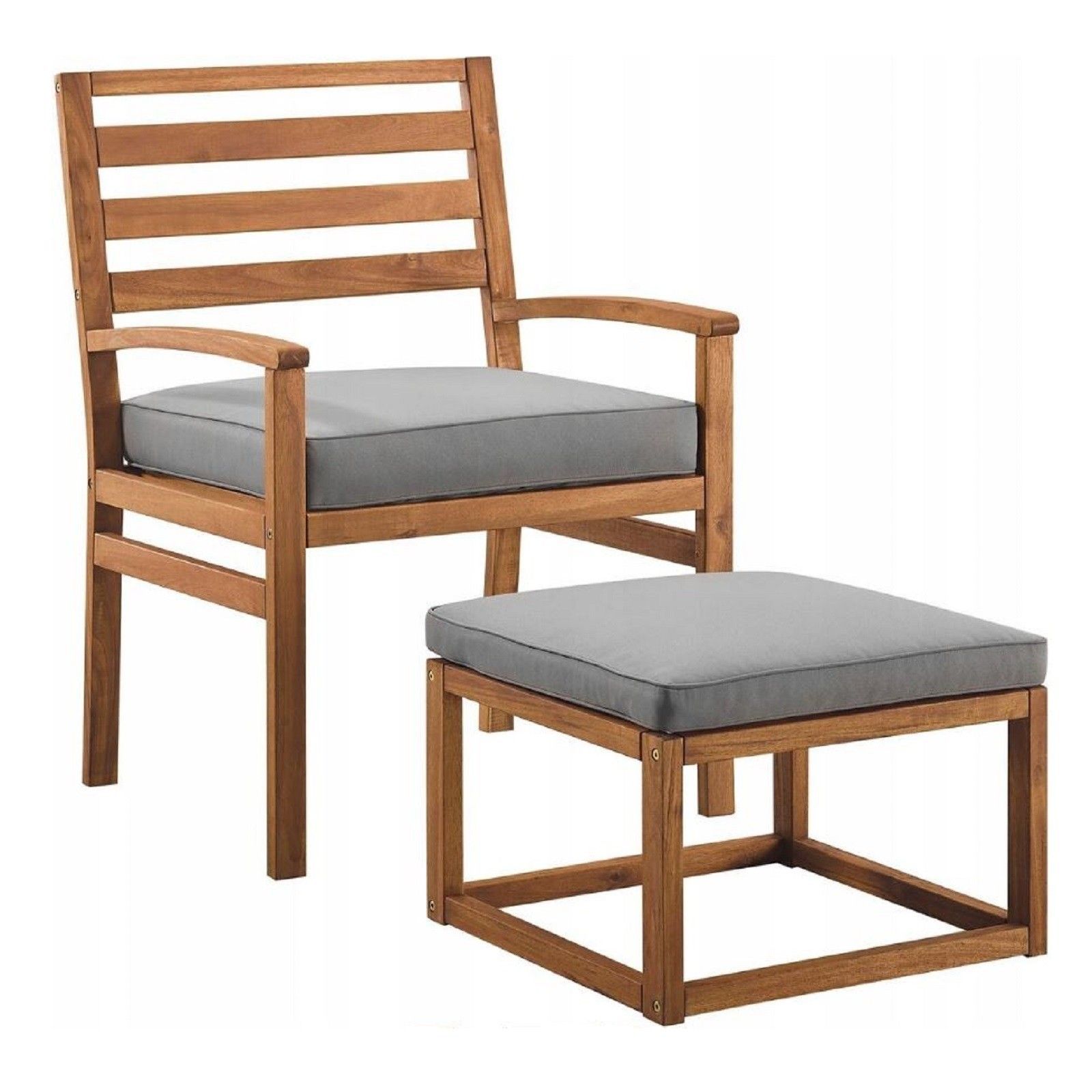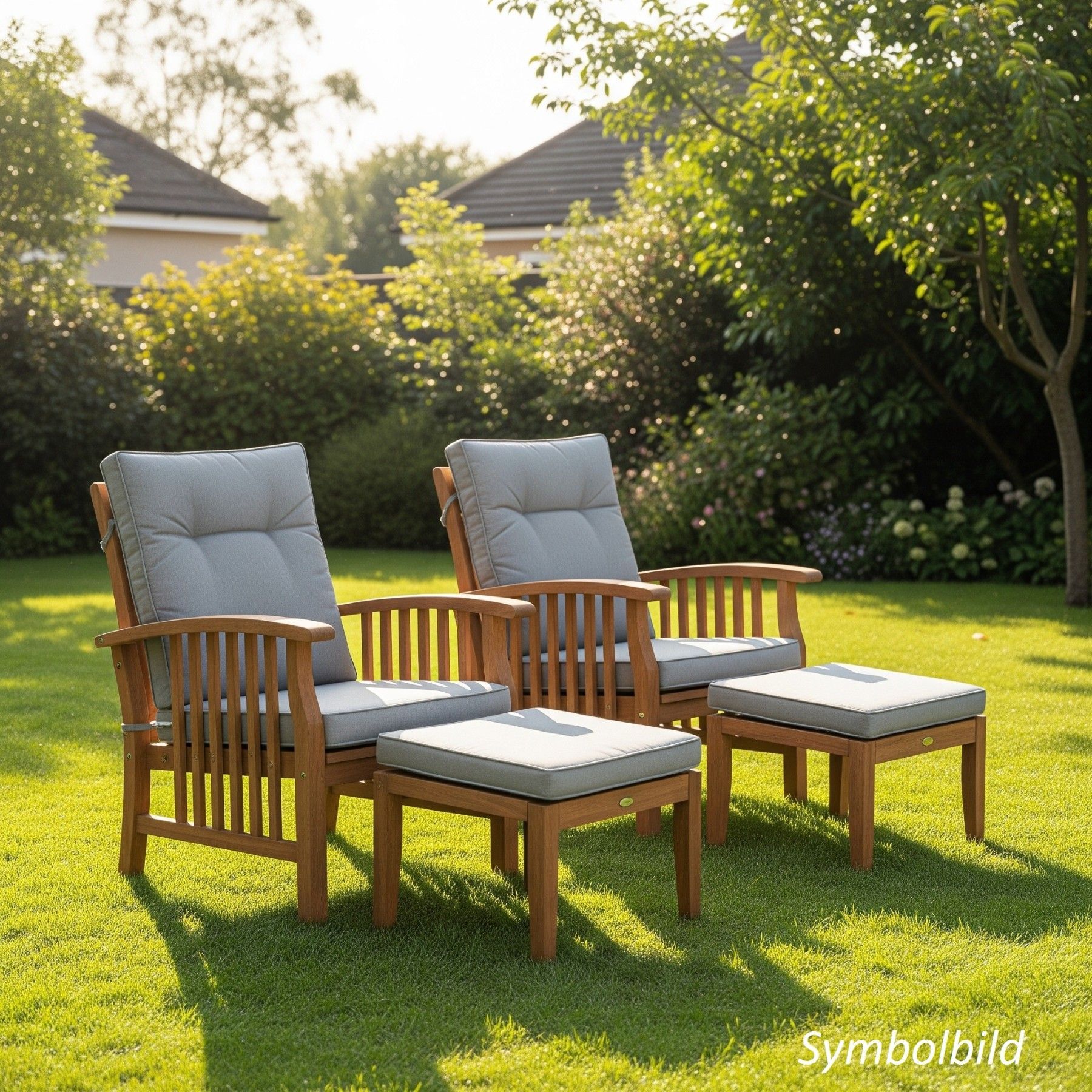 QLS QLS Gartenstuhl aus Holz mit Fußstütze und Kissen Outdoor Relaxsessel Braun 11287