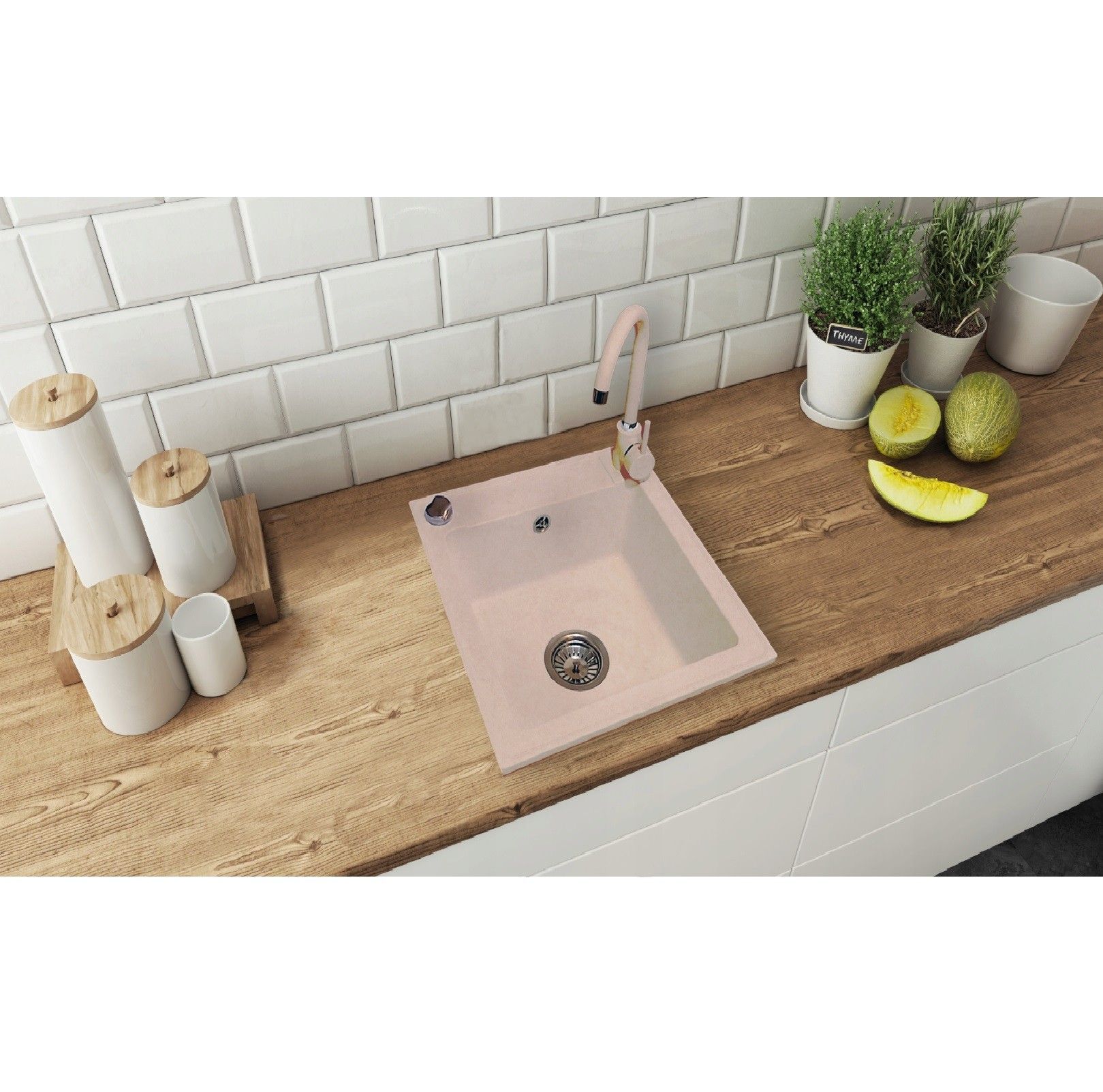 • Belmondo Einbau-Granitspüle 44 x 46 cm, inklusive Siphon-Set, Armatur wählbar