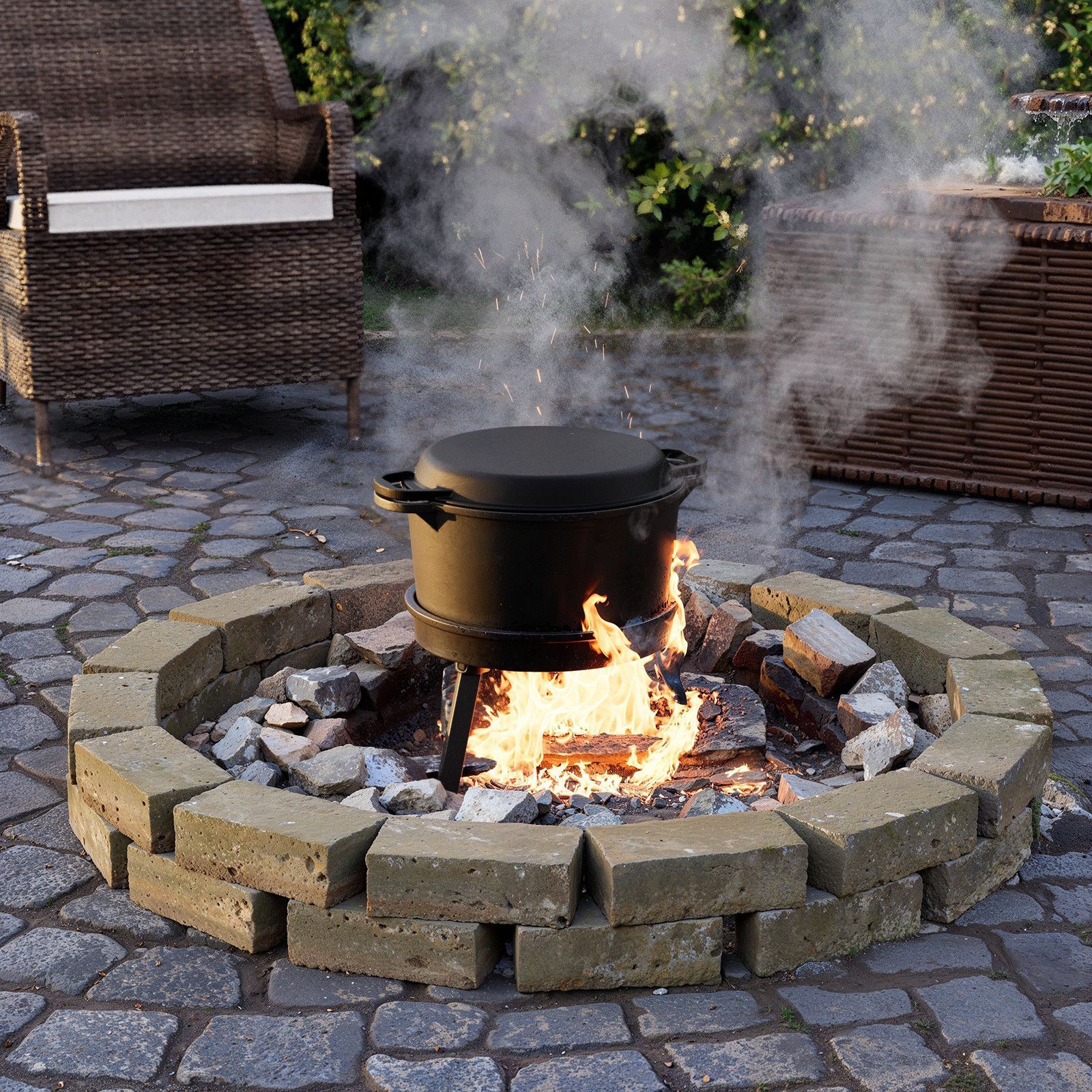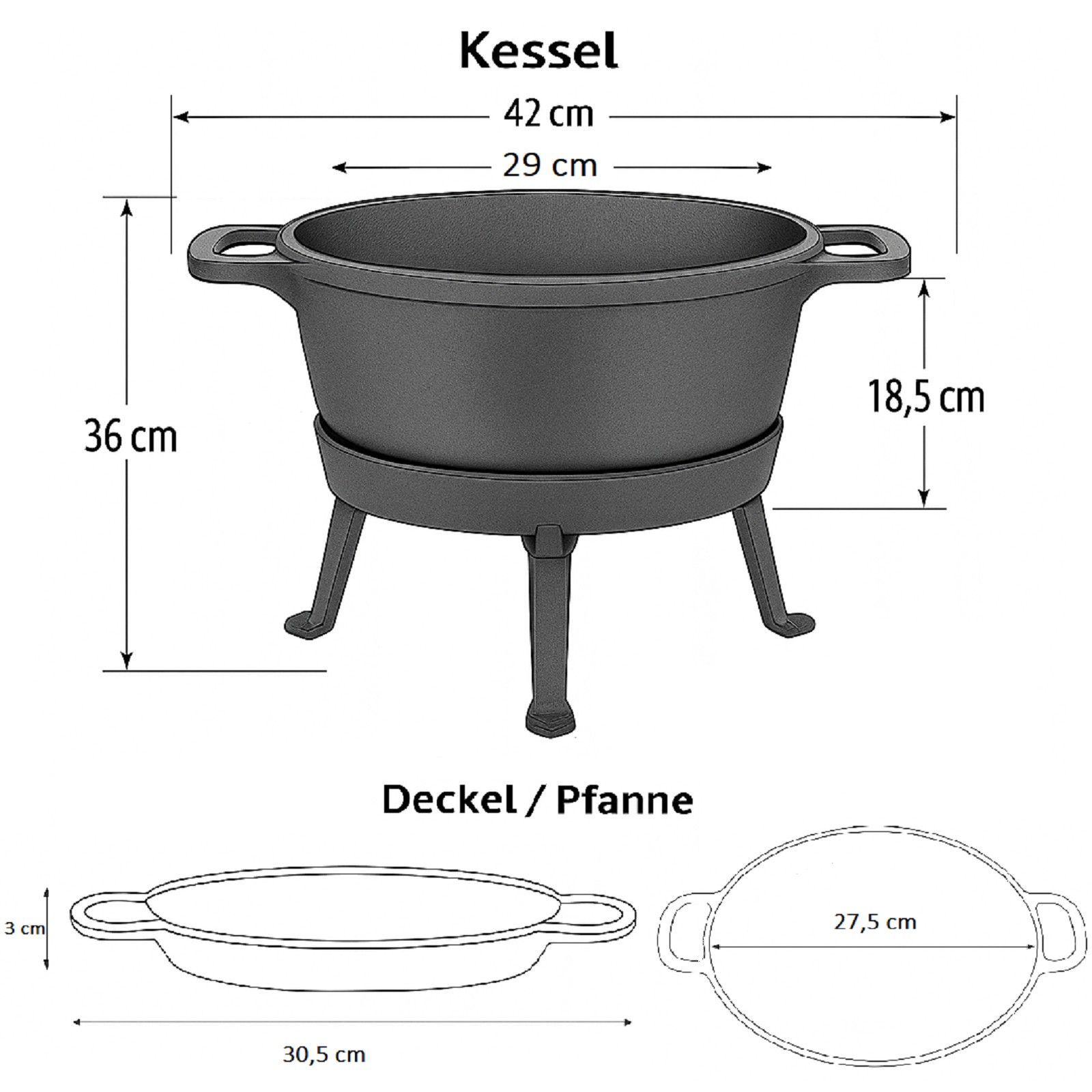 • Dutch Oven Topf Ø 25 Kochtopf Gusseisen Feuertopf Camping Schmortopf Deckelheber