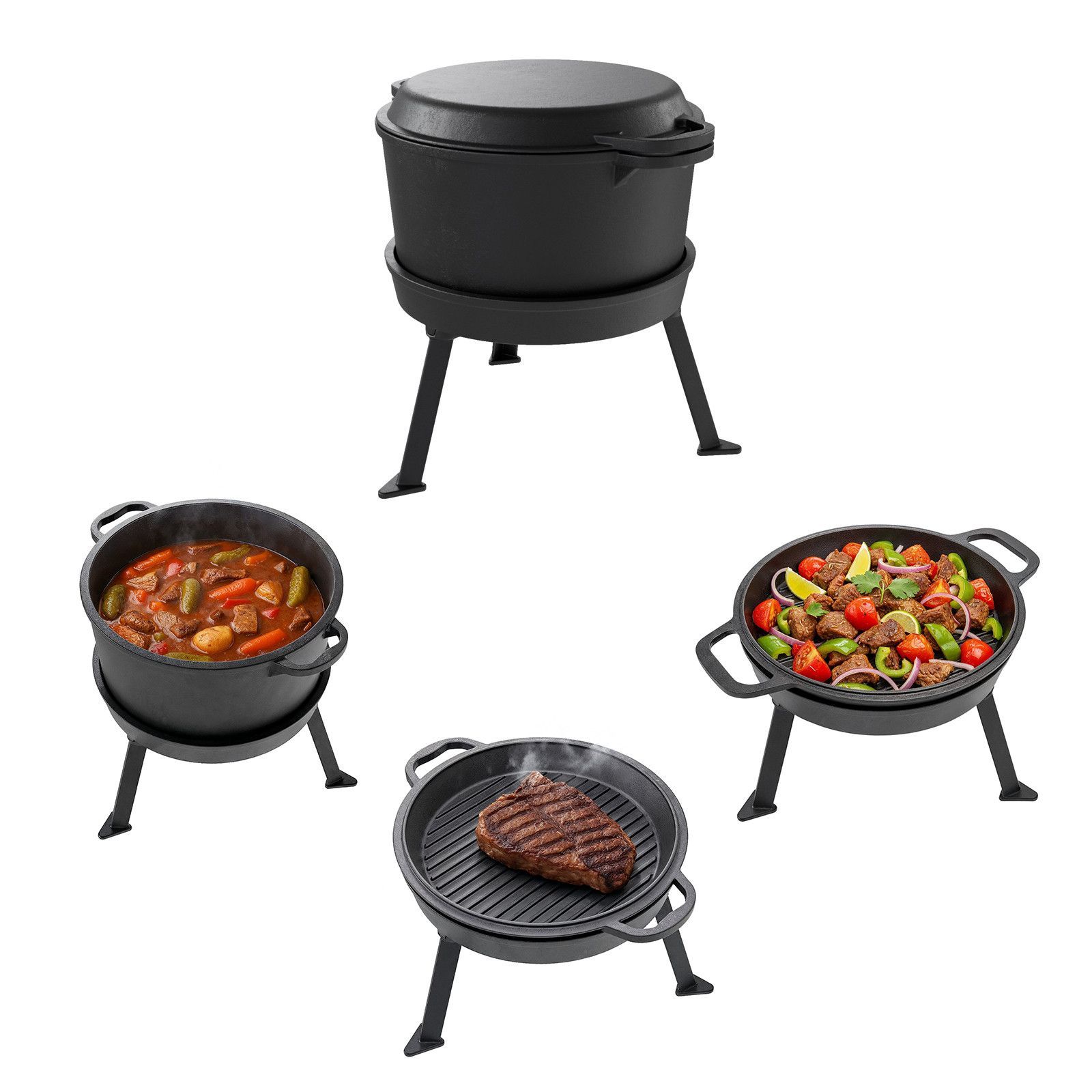 • TP Potjie Pot - BBQ Dreifuß Dutch Oven Gusseisen, Feuerkessel mit Deckel und Füßen