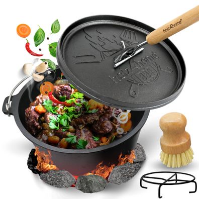 • Dutch Oven 6l Untersetzer Deckelheber Kochtopf Gusseisen Feuertopf Schmortopf