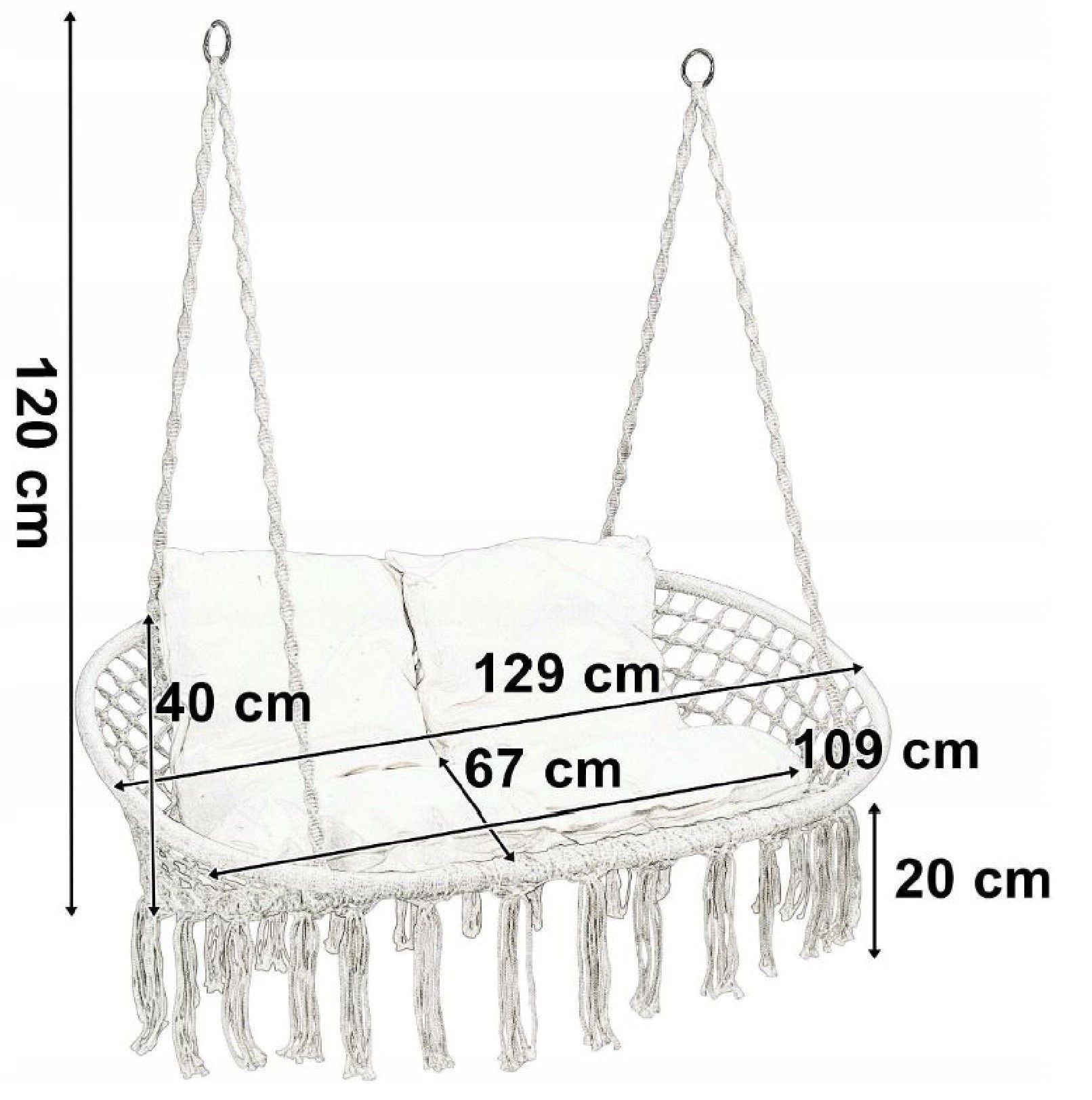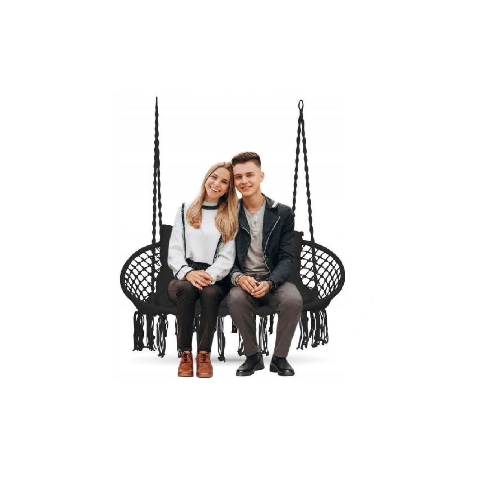 QLS QLS Hängesessel bis 300kg Indoor Outdoor Hängeschaukel für 2 Personen schwarz 11303