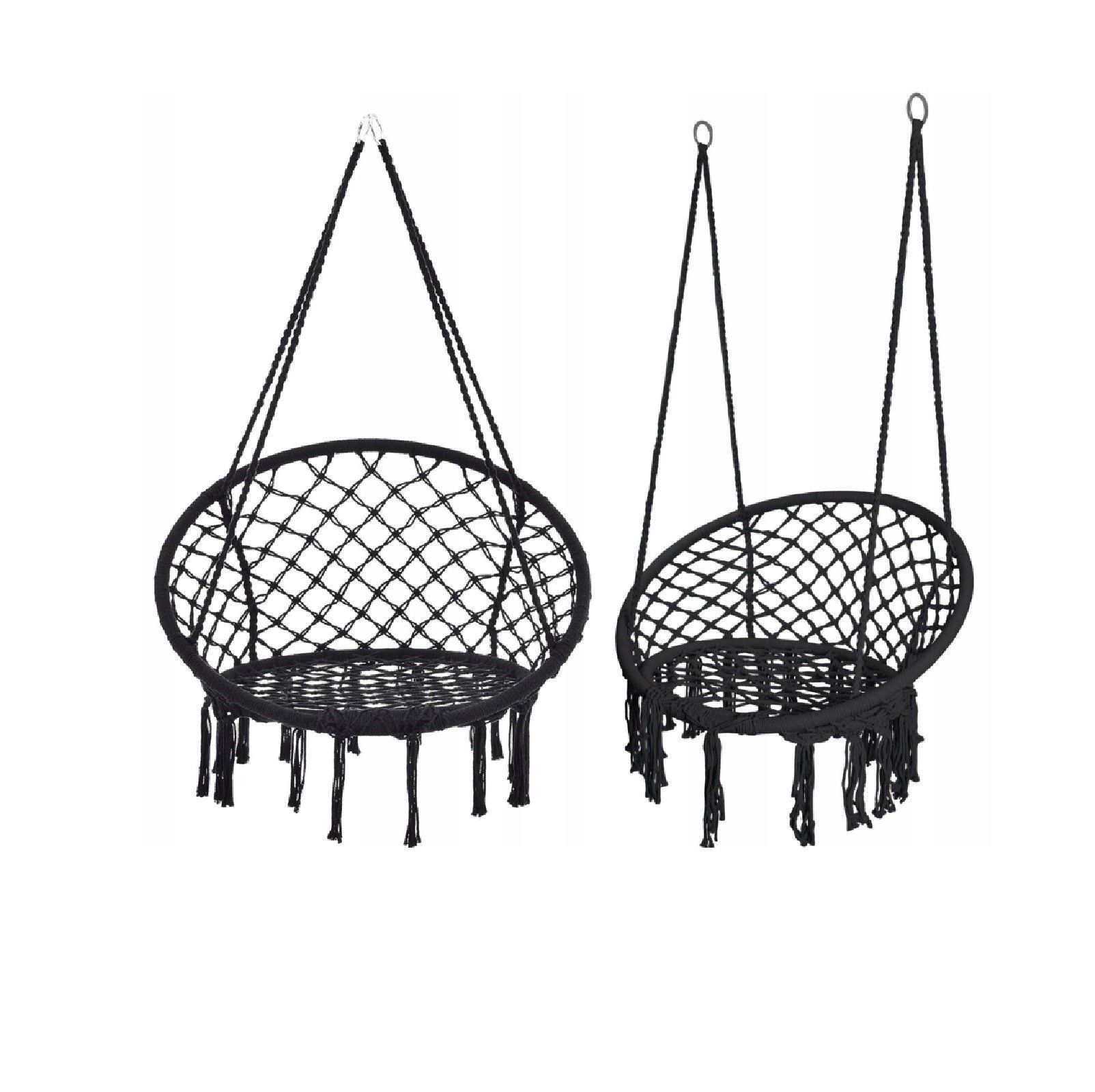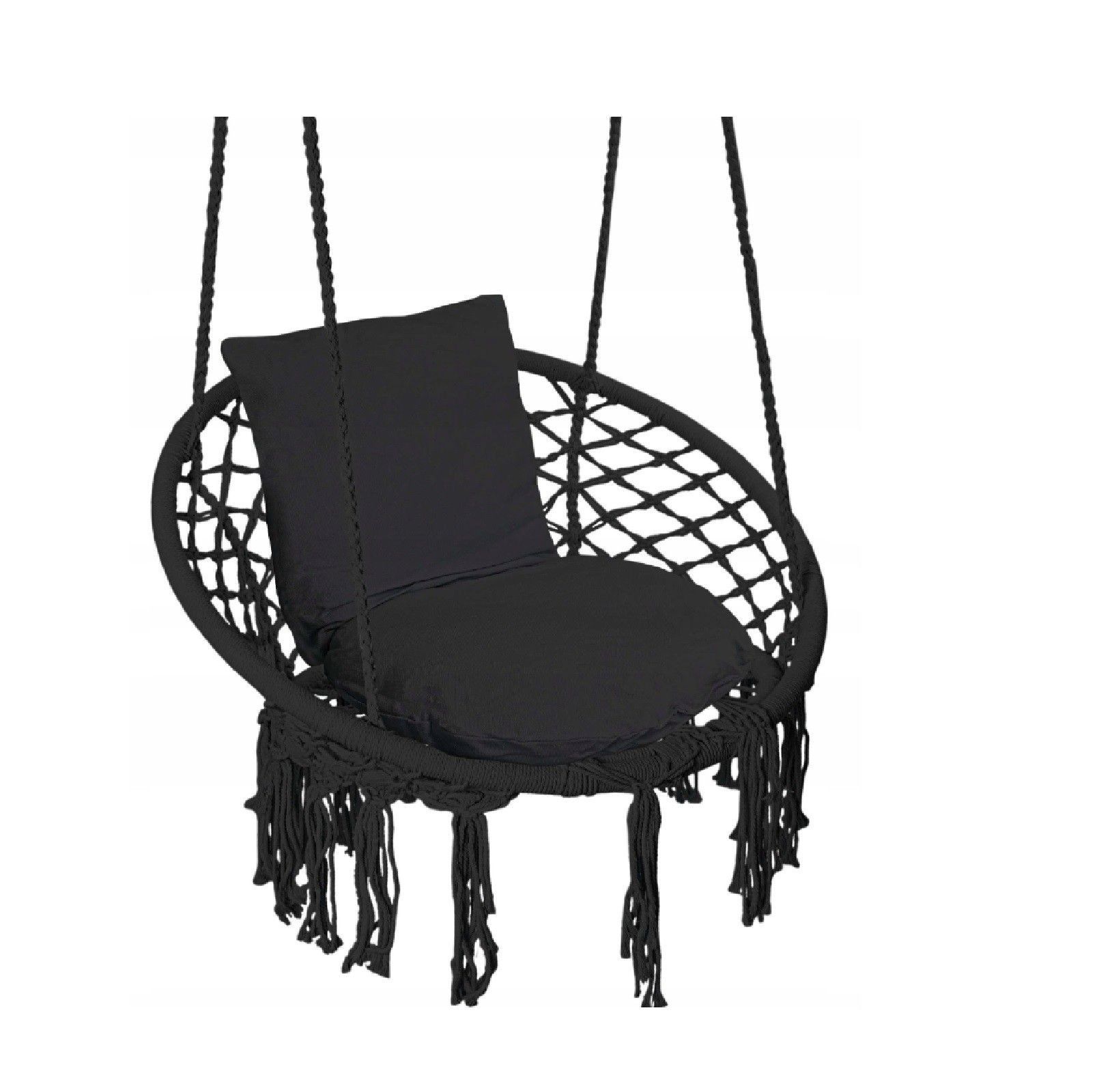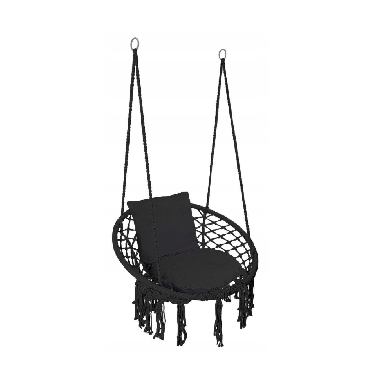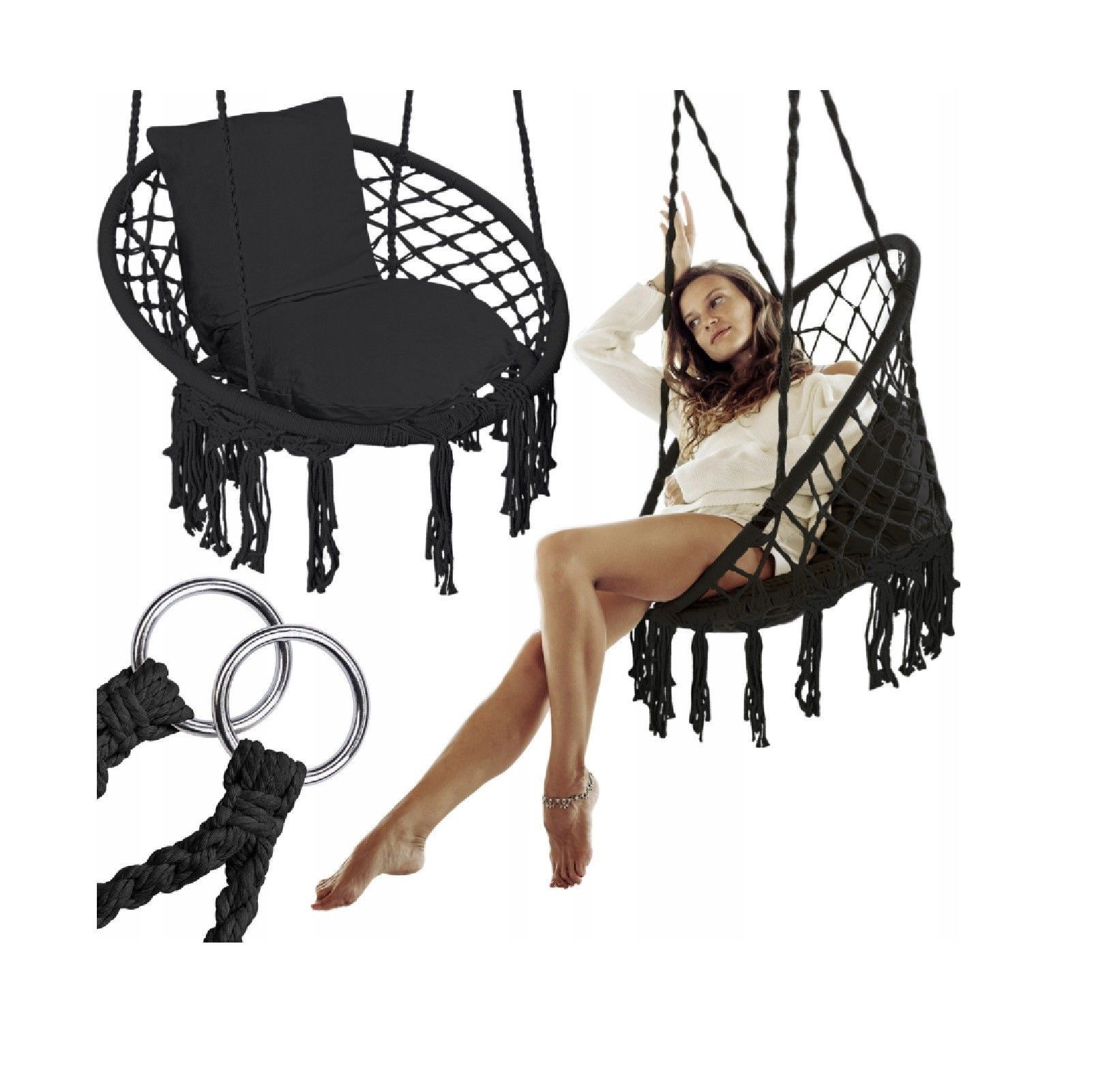 QLS QLS Hängesessel mit Kissen für Garten & Zuhause Schaukelstuhl bis 150kg schwarz 11299