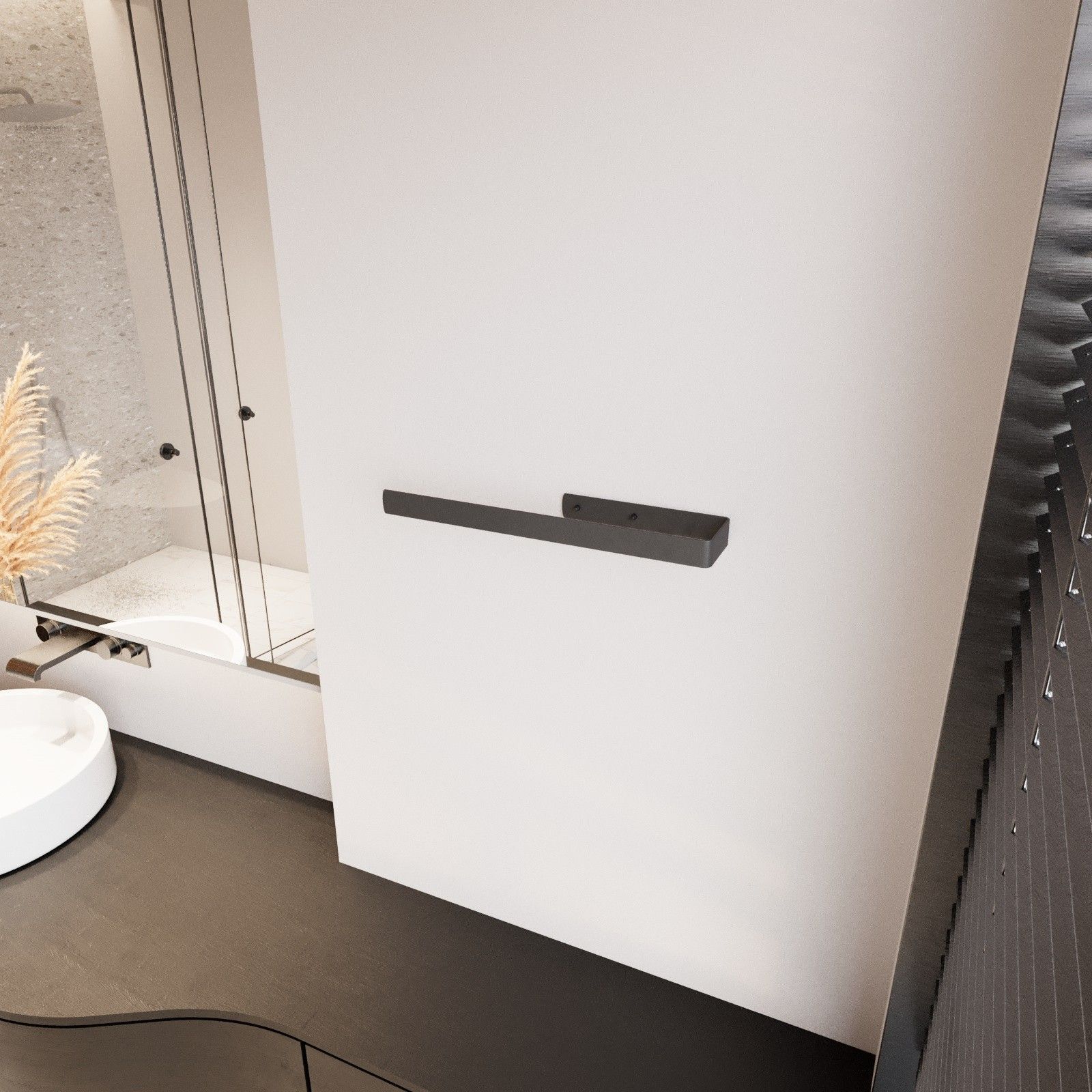 QLS QLS Handtuchhalter 40 cm Wand Stange für Badezimmer Küche Stahl Schwarz 11114