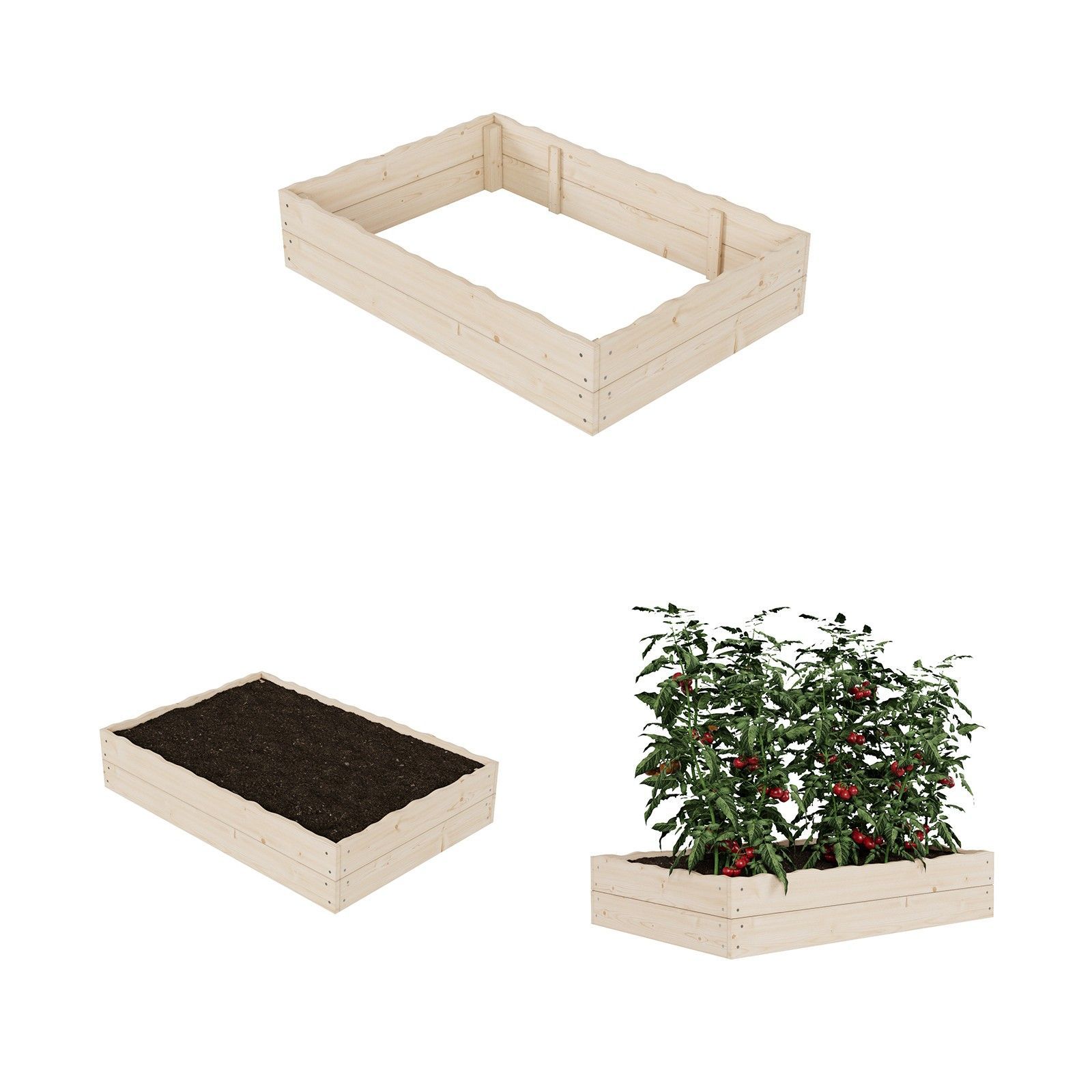 QLS QLS Hochbeet 120x80x24 cm aus Holz zum Bepflanzen von Gemüse Kräutern Deko 11169