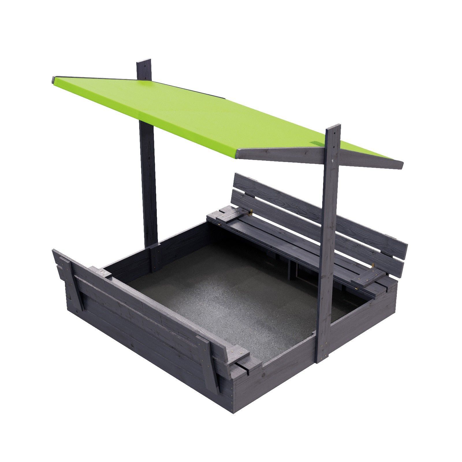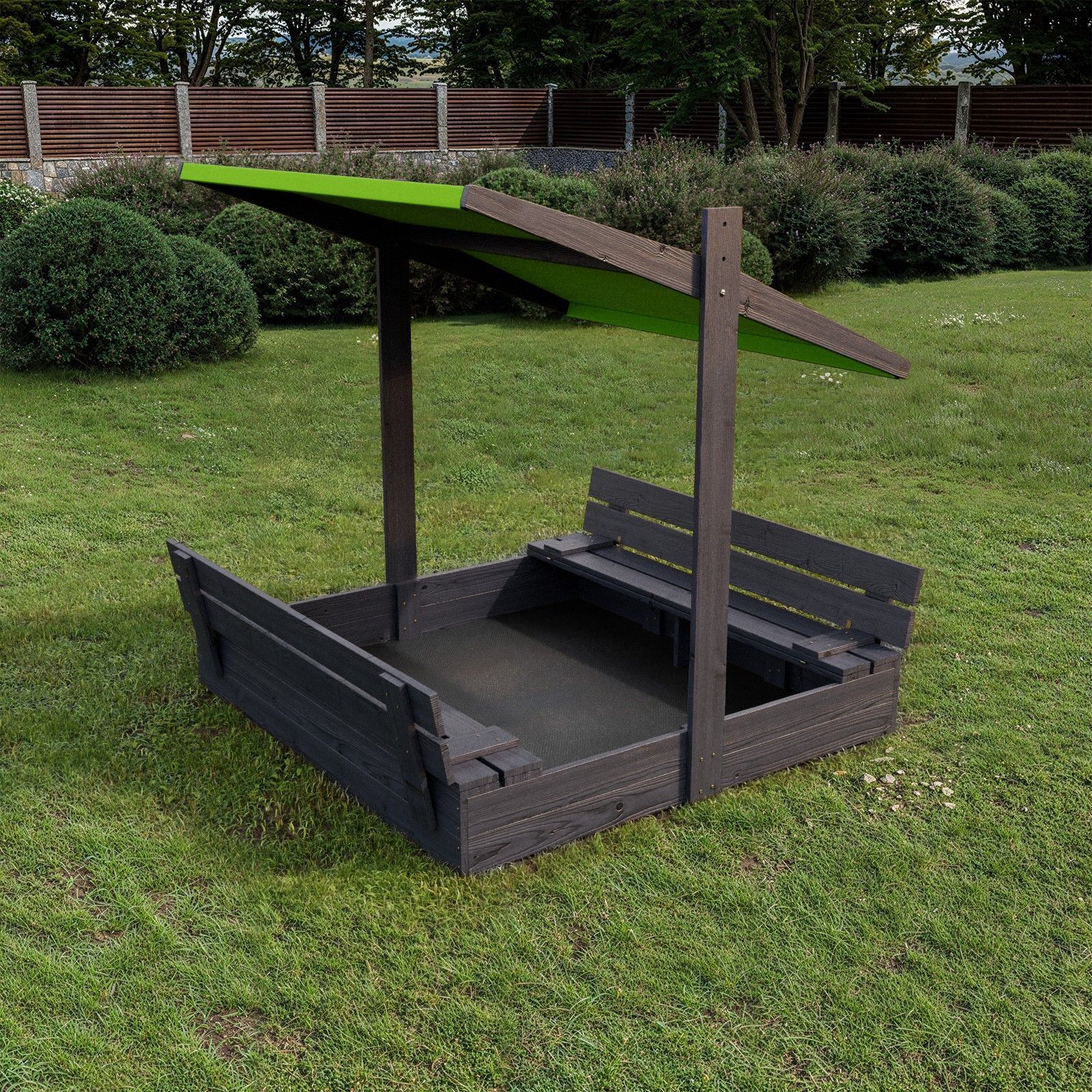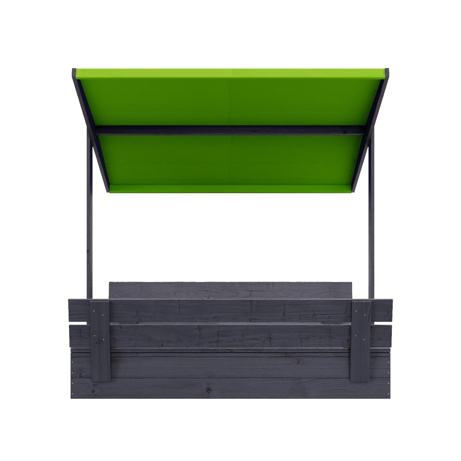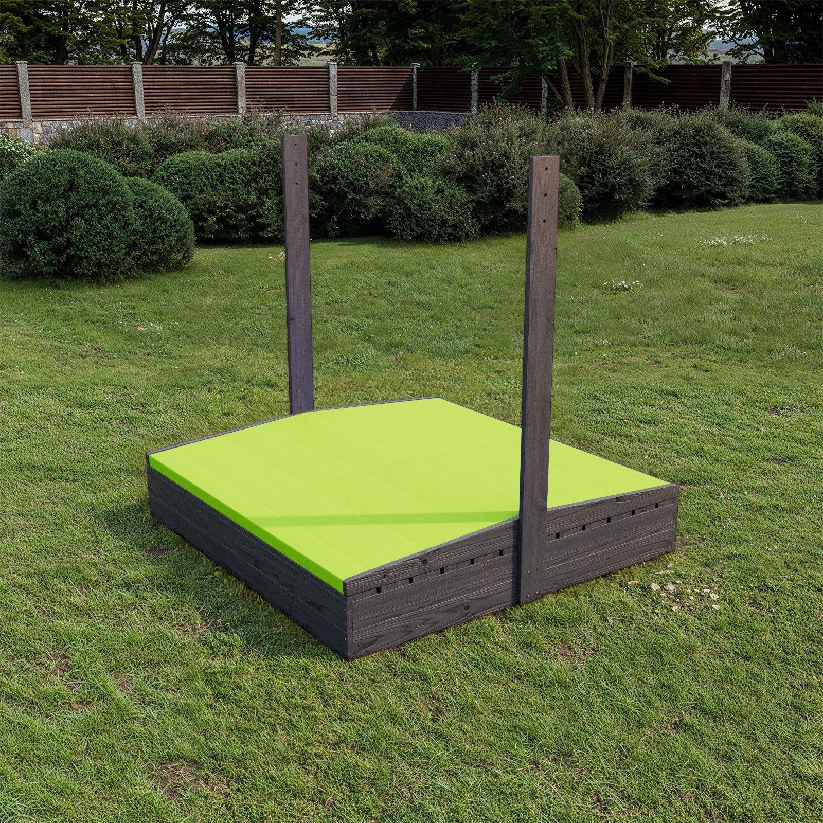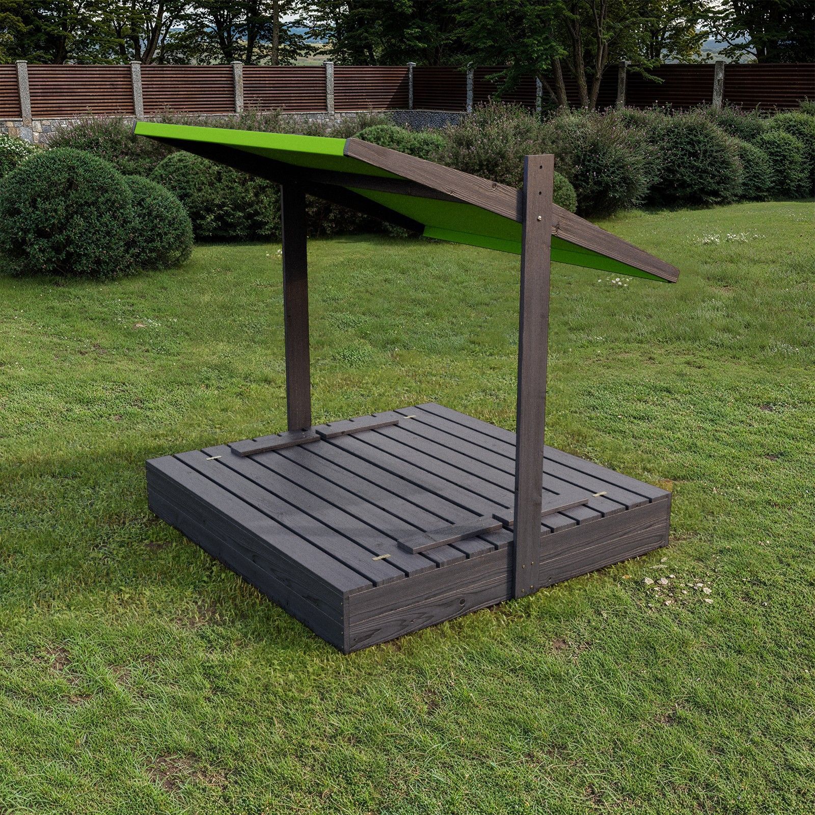 QLS QLS Holz-Sandkasten 120 cm mit Sitzbank und grünem Dach Abdeckung imprägniert 11292
