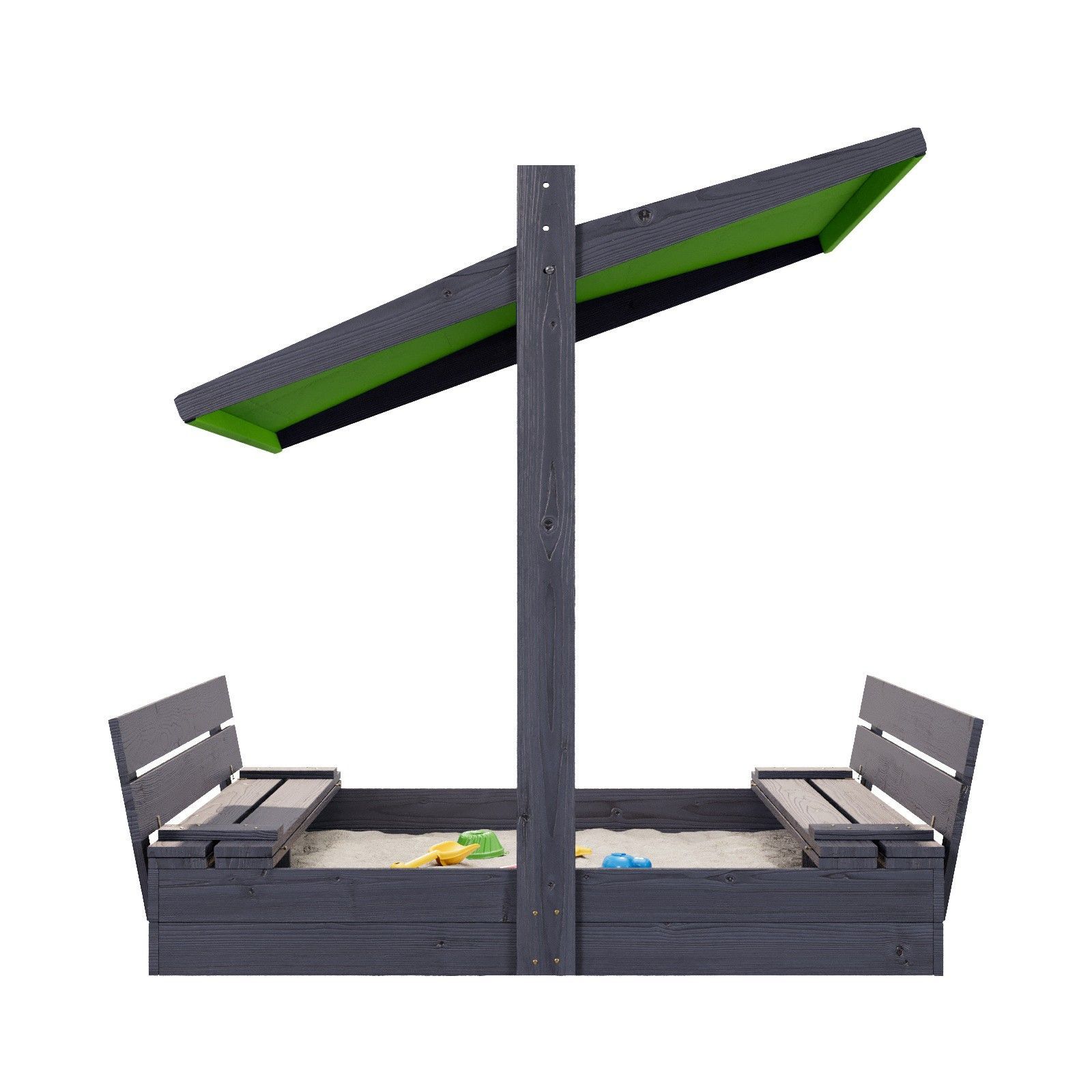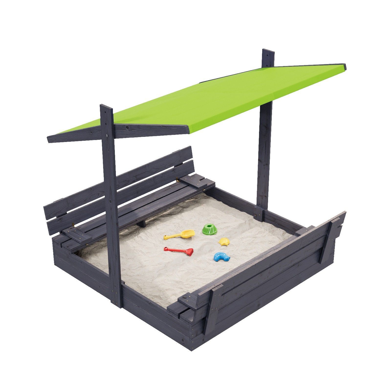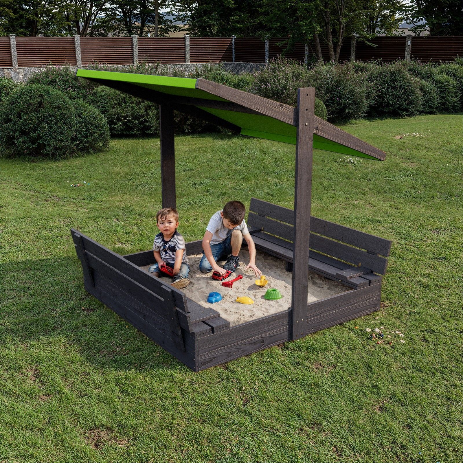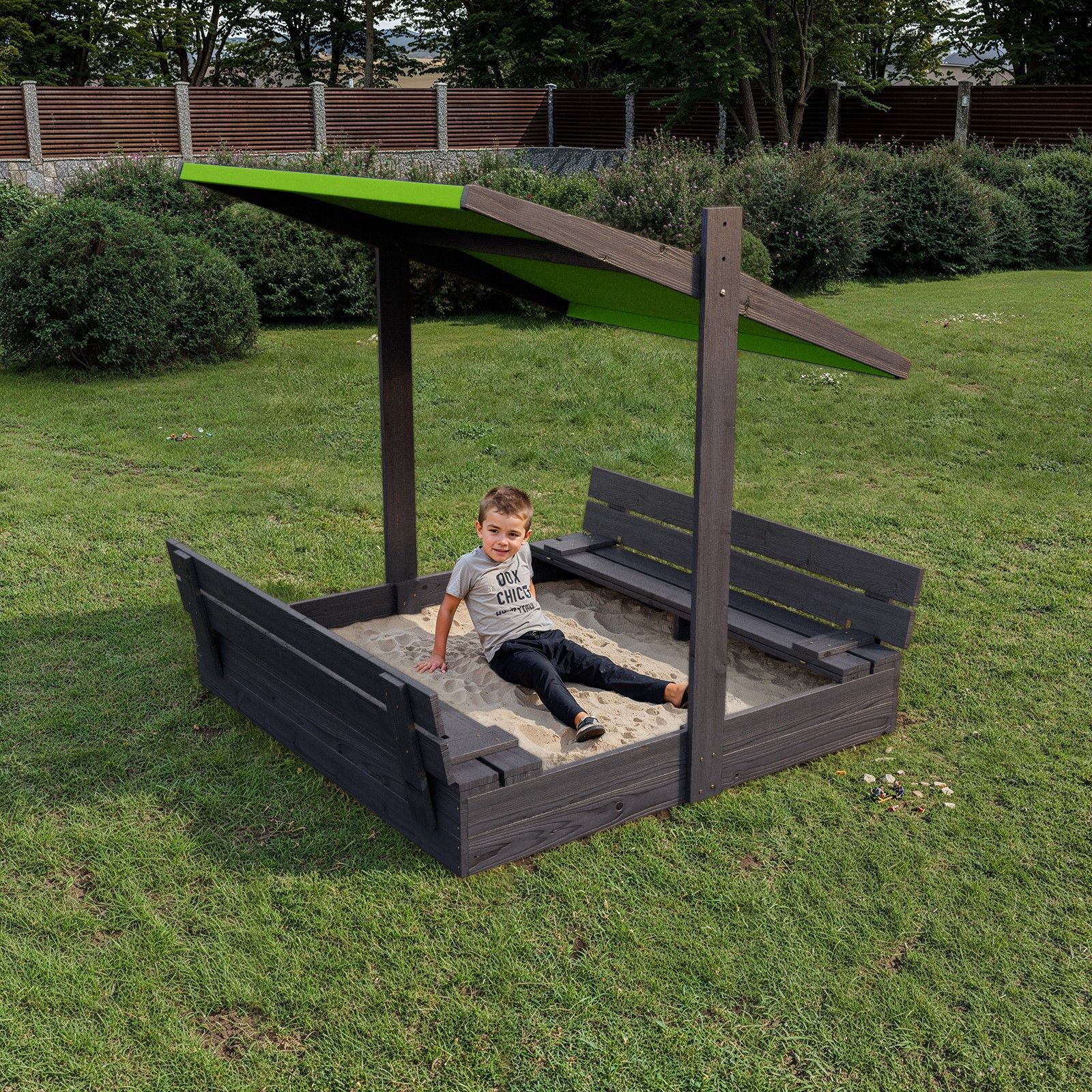 QLS QLS Holz-Sandkasten 120 cm mit Sitzbank und grünem Dach Abdeckung imprägniert 11292