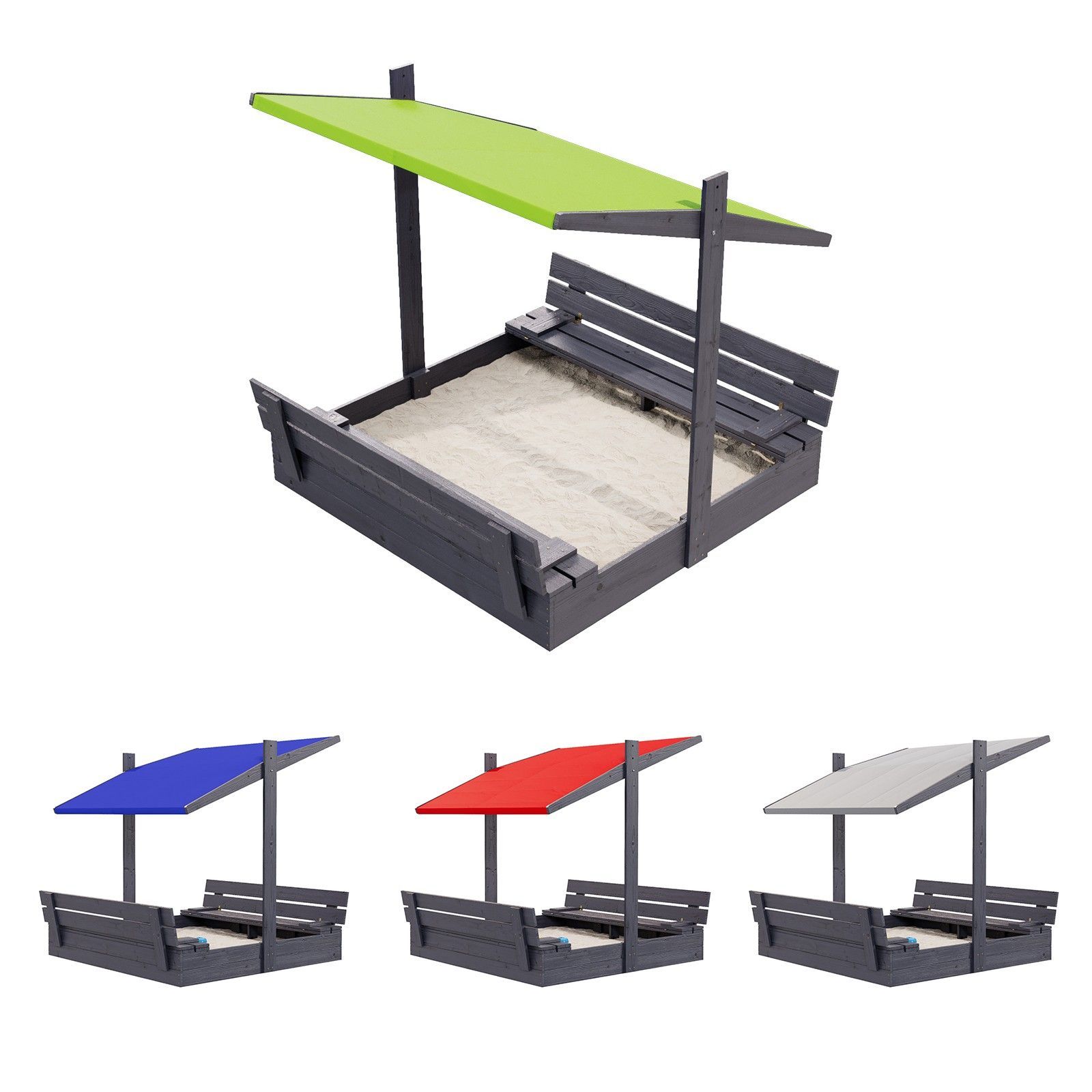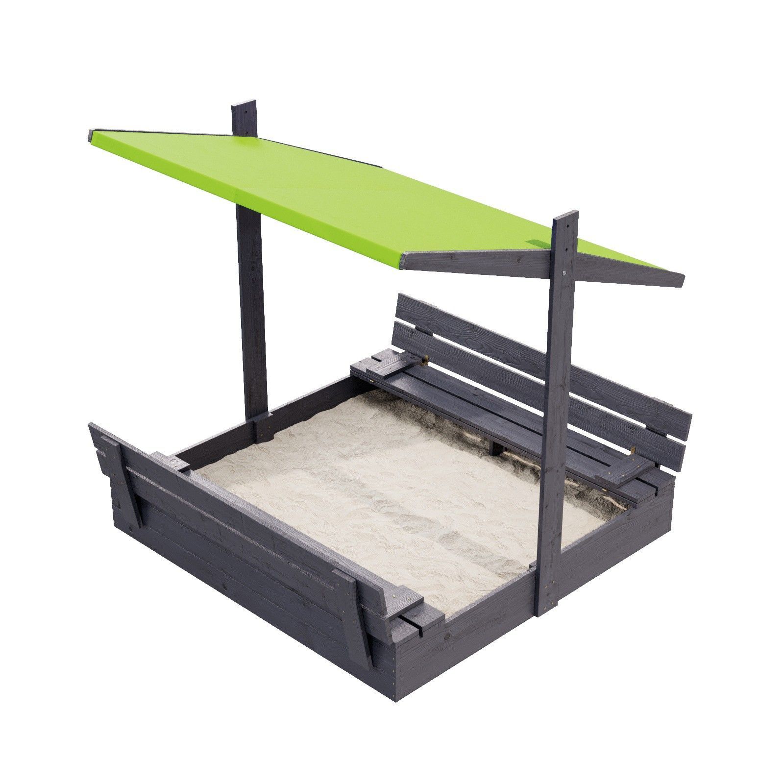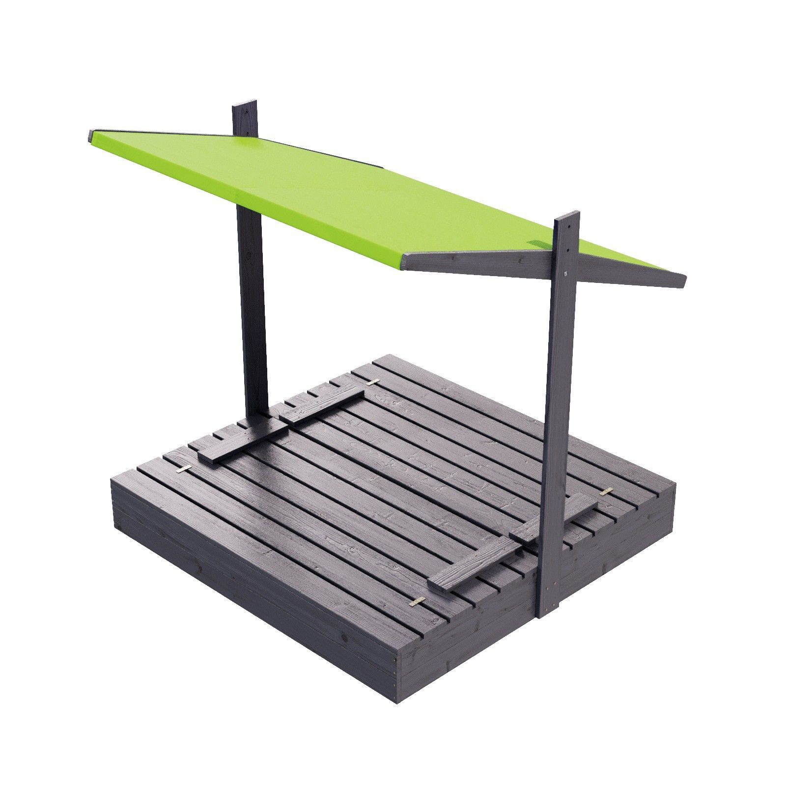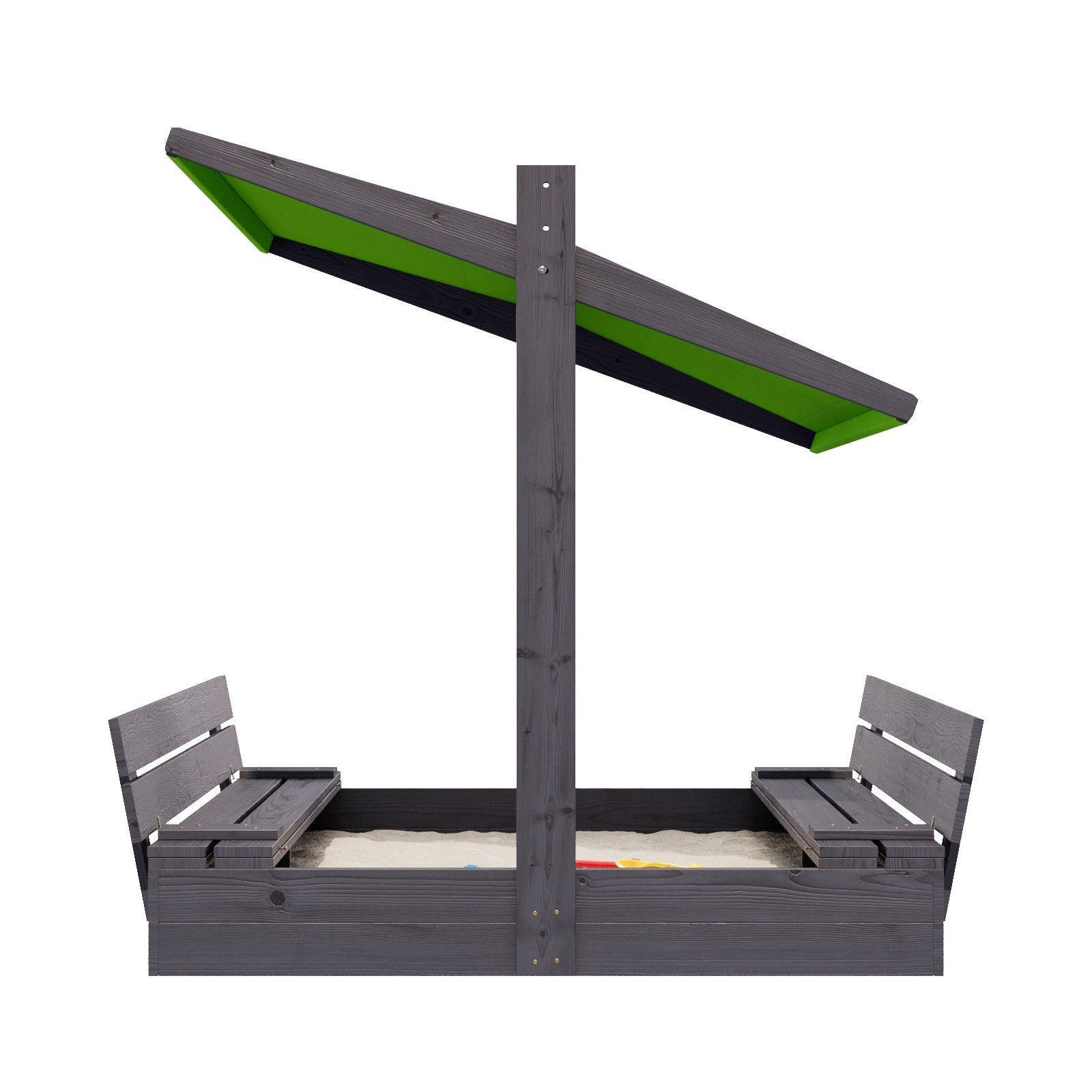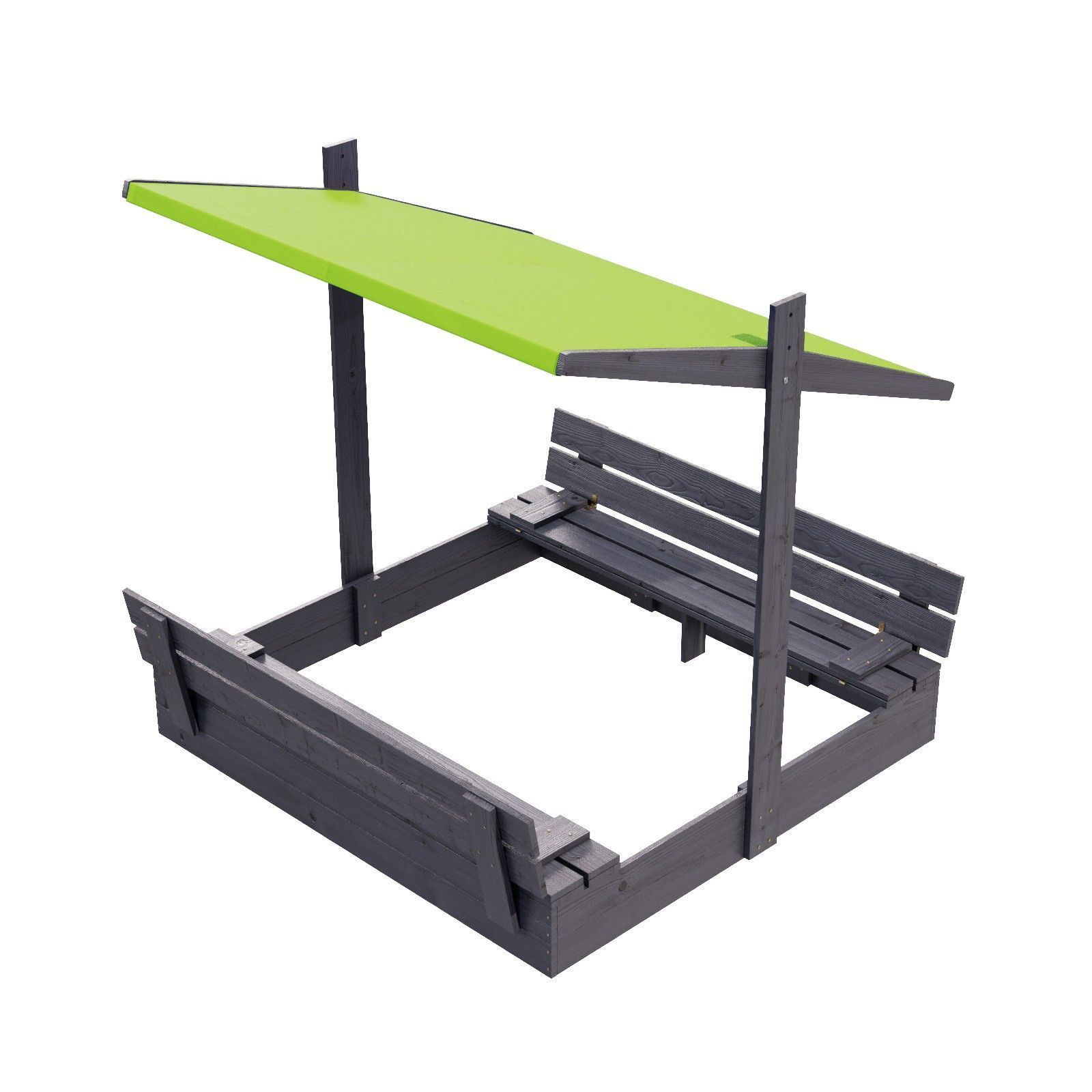 QLS QLS Holz-Sandkasten 120 cm mit Sitzbank und grünem Dach Abdeckung imprägniert 11292