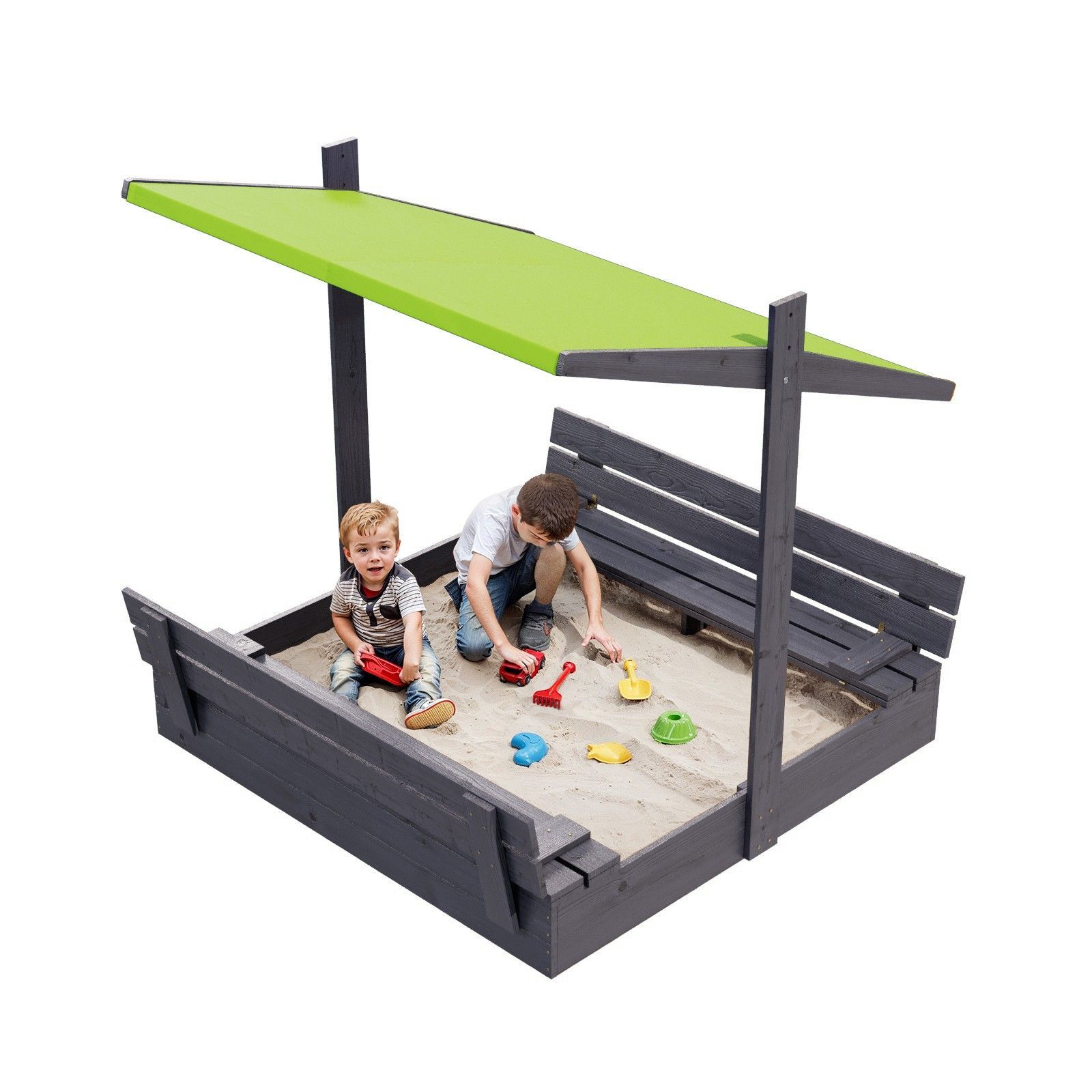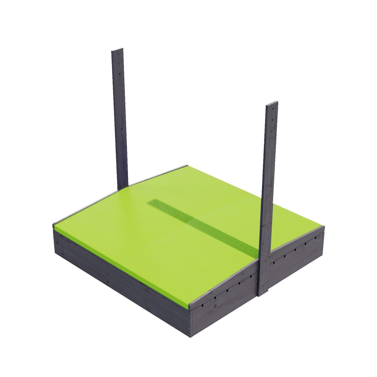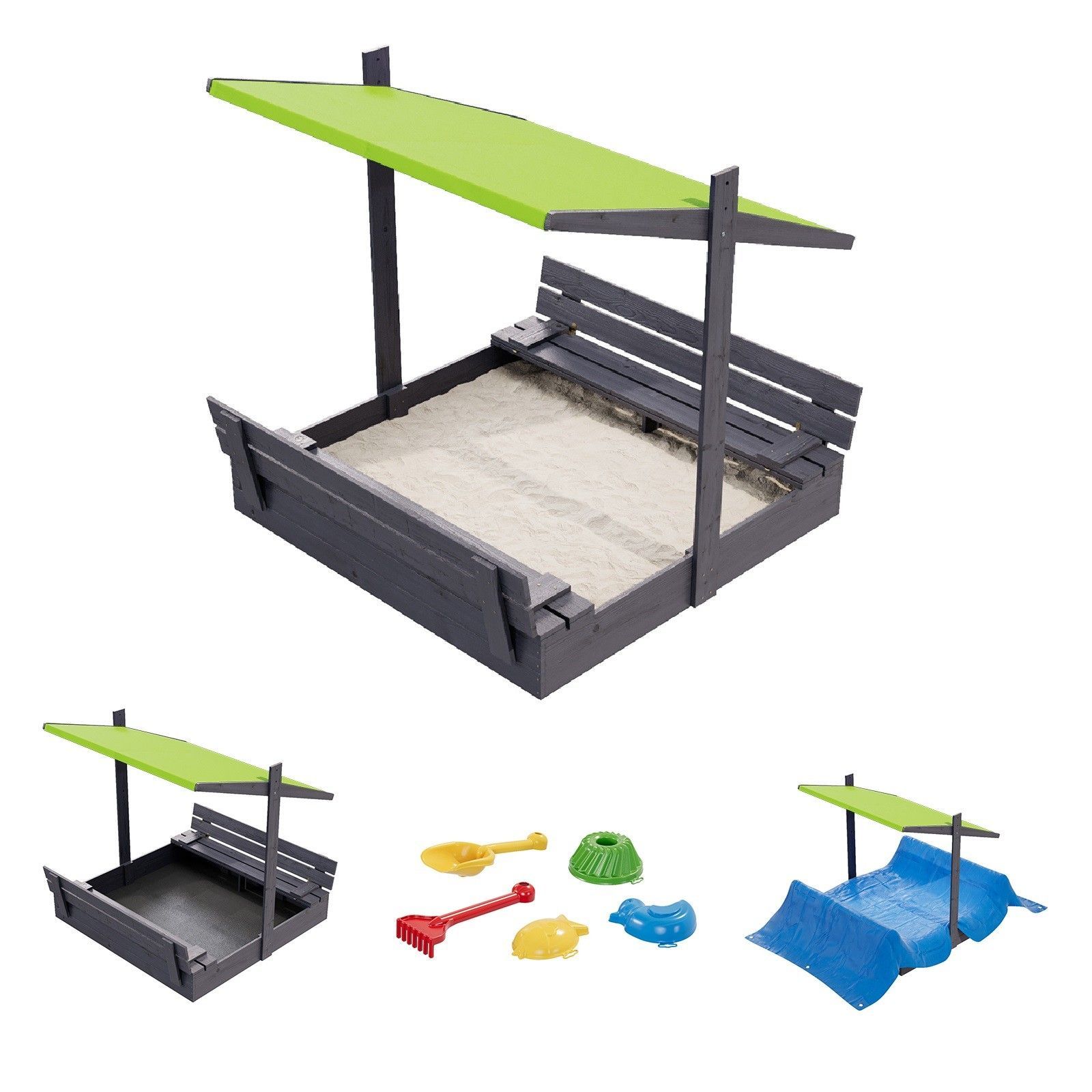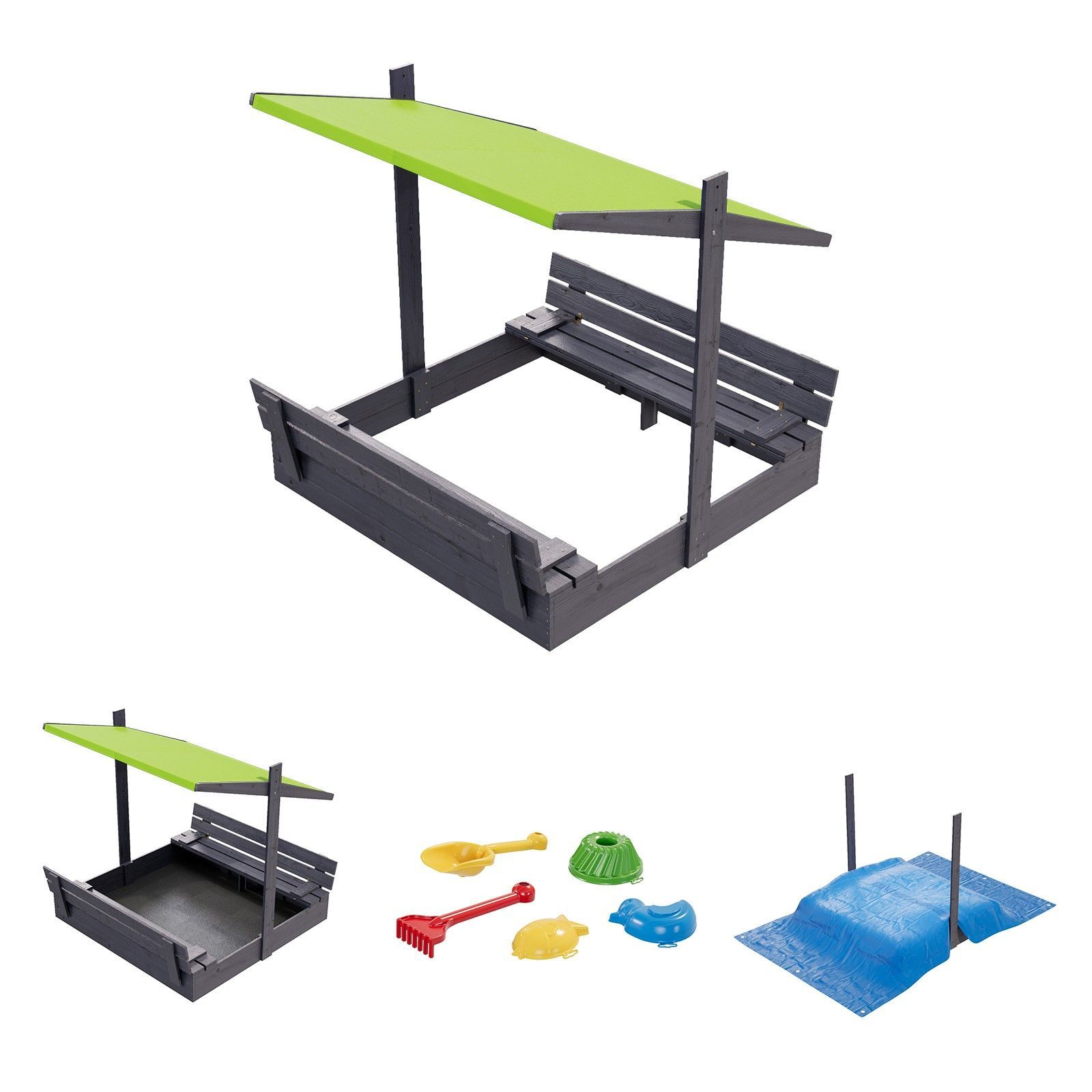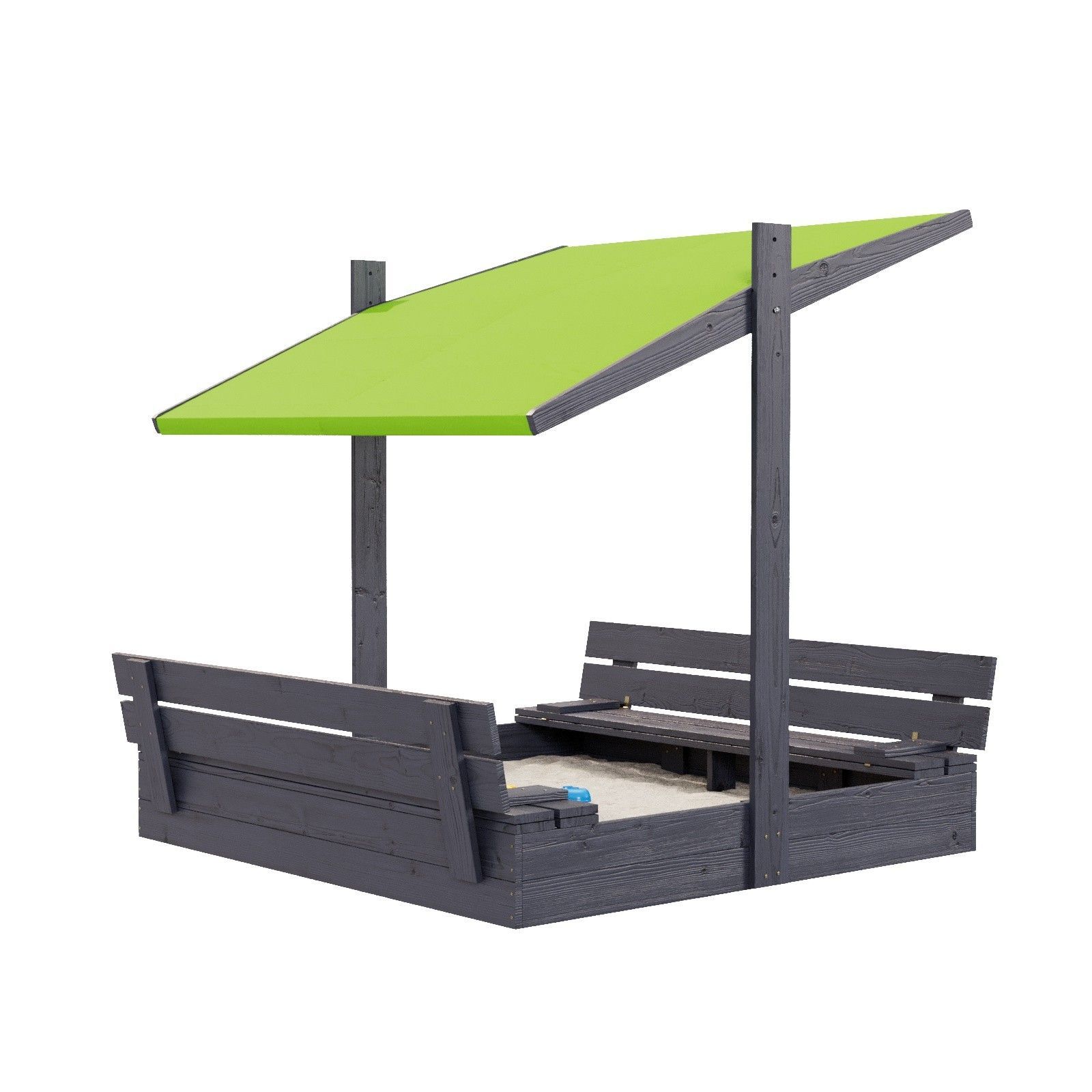 QLS QLS Holz-Sandkasten 120 cm mit Sitzbank und grünem Dach Abdeckung imprägniert 11292