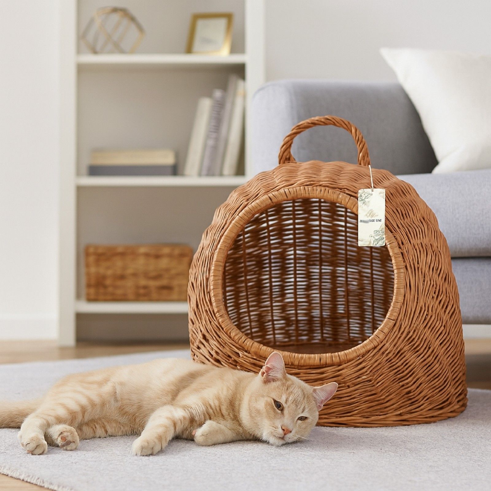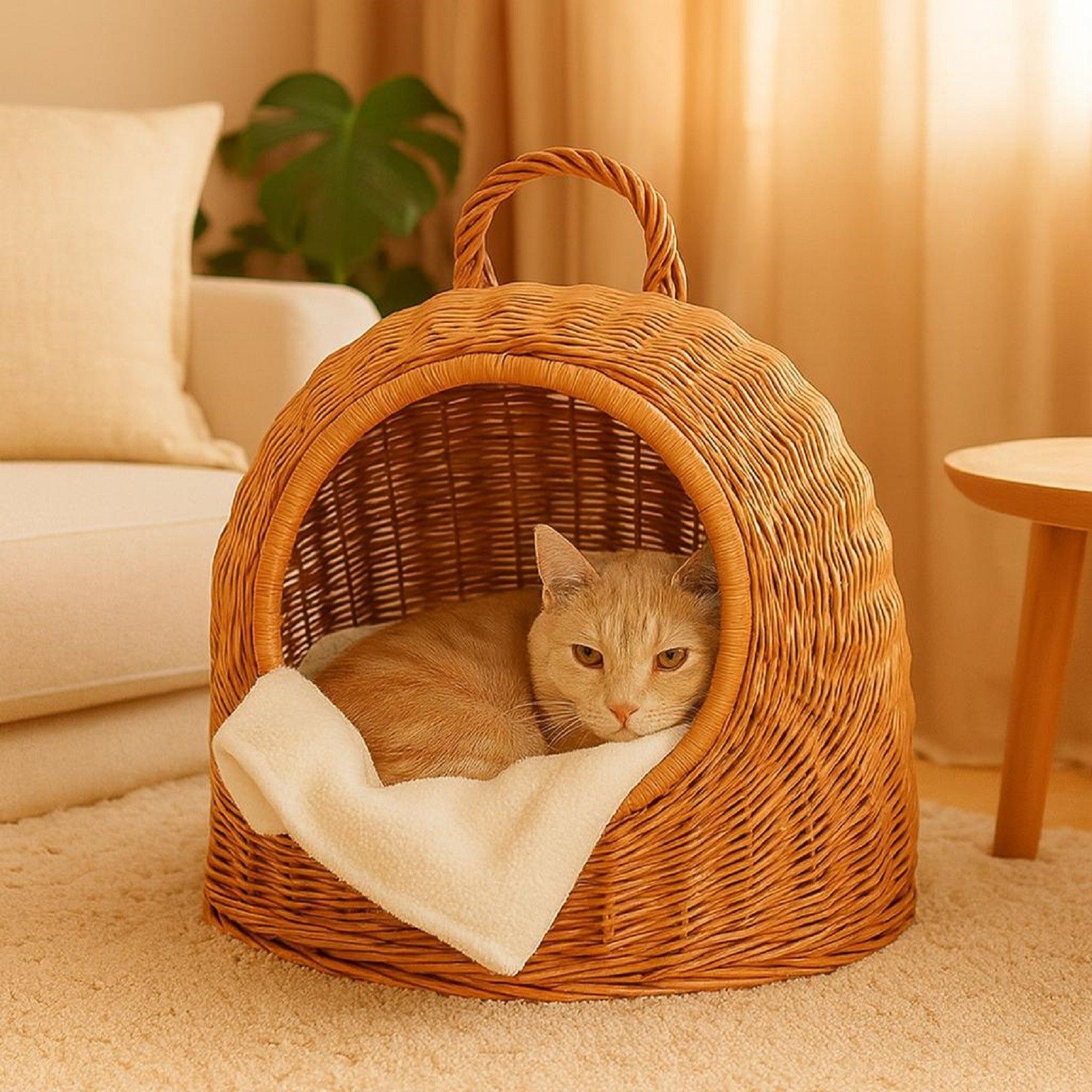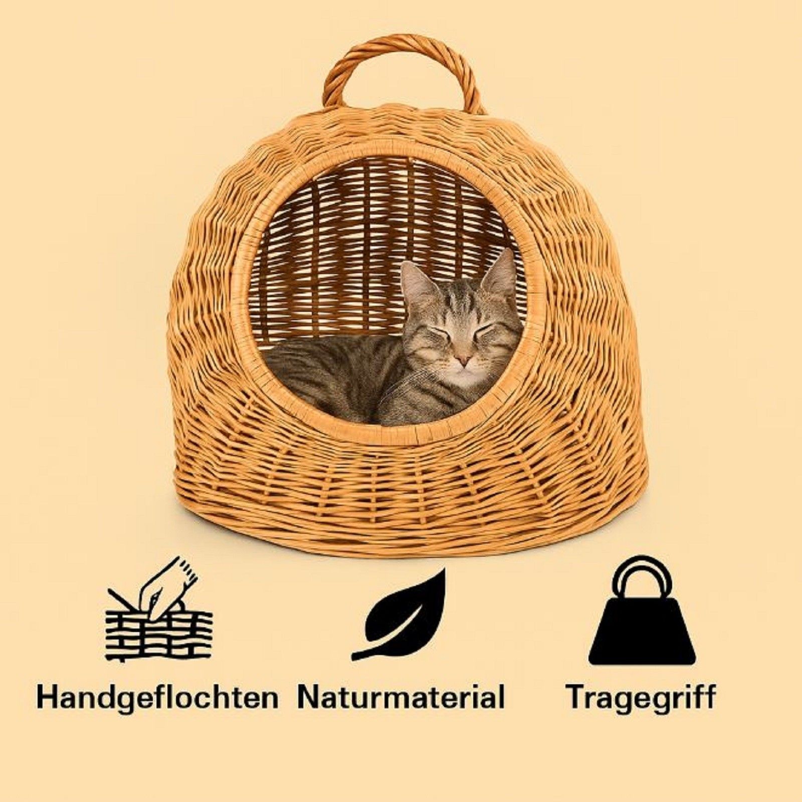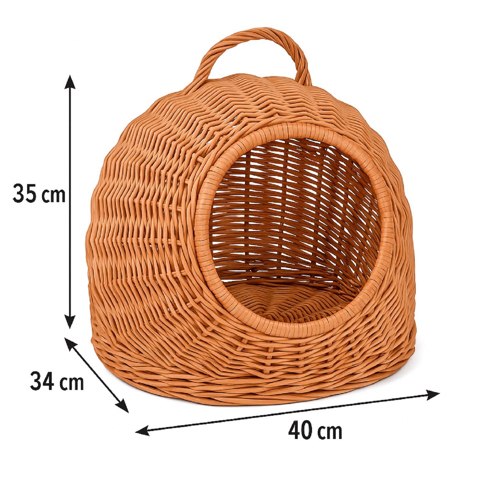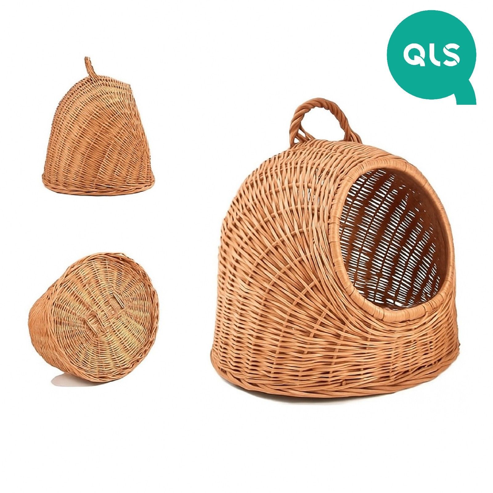 QLS QLS Hunde- Katzenbett aus Weide - 40x34x35 cm Körbchen mit Griff Handgeflochten 11360