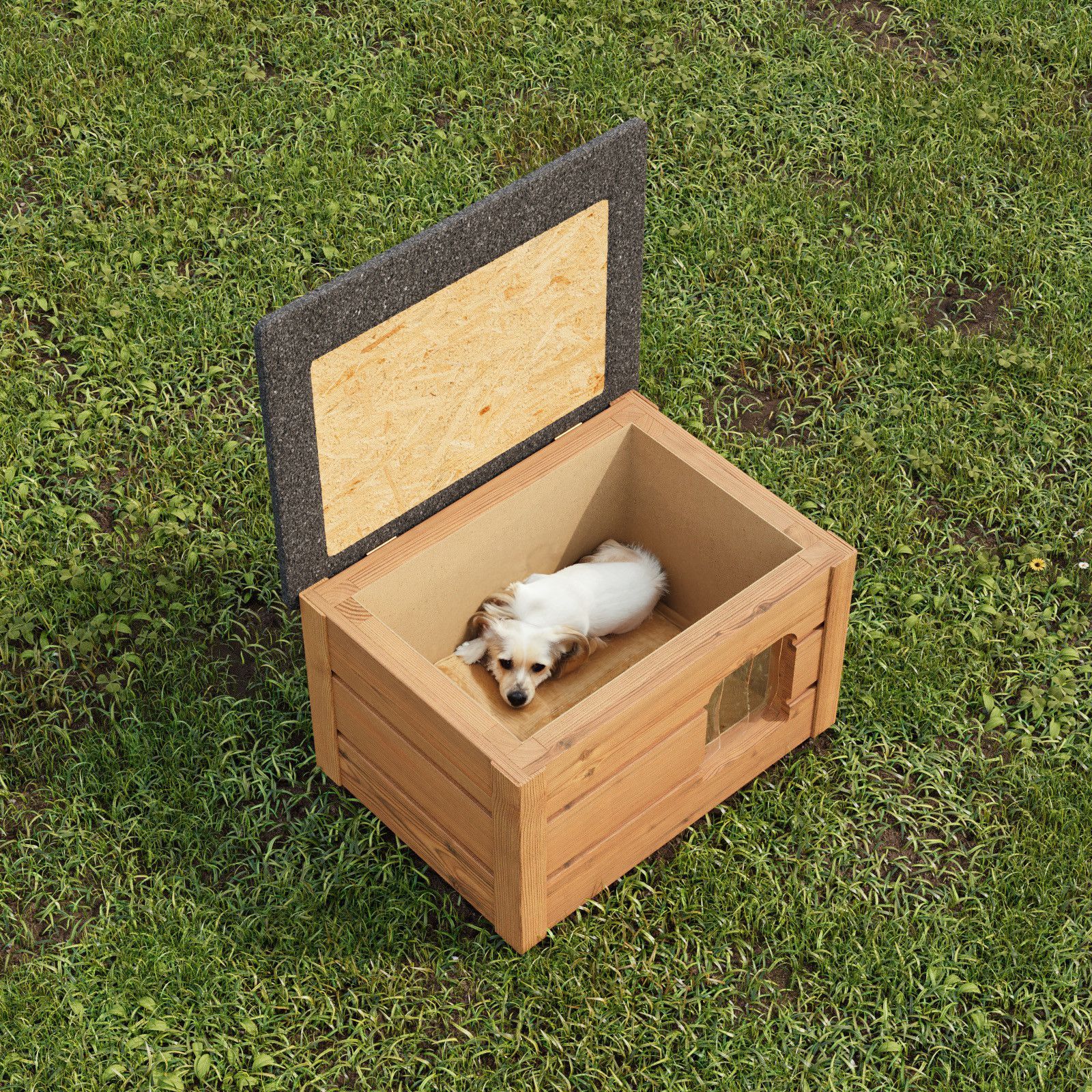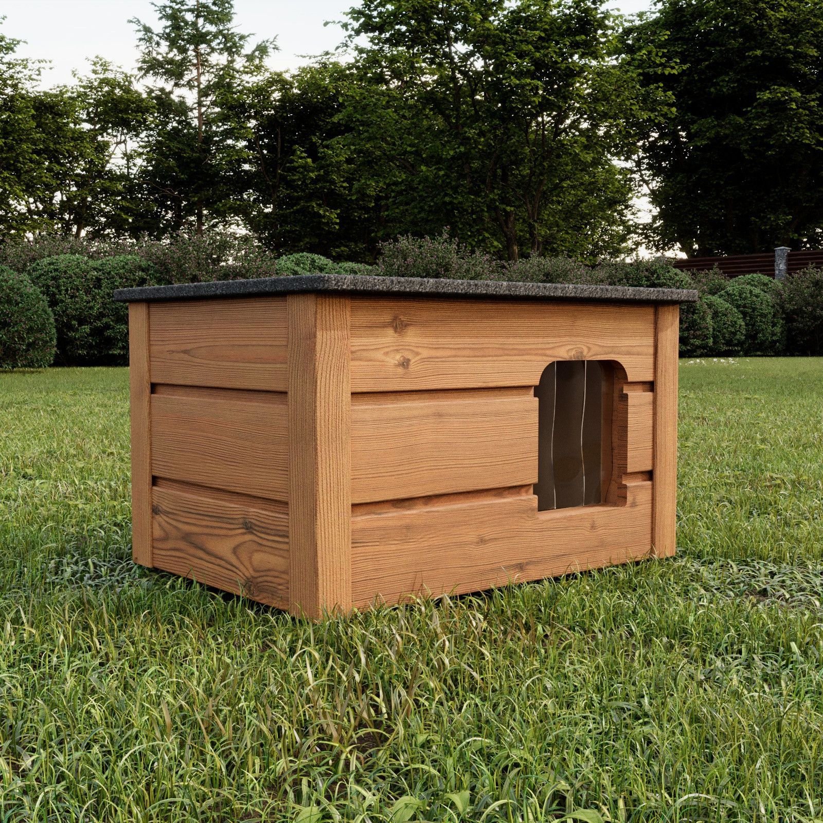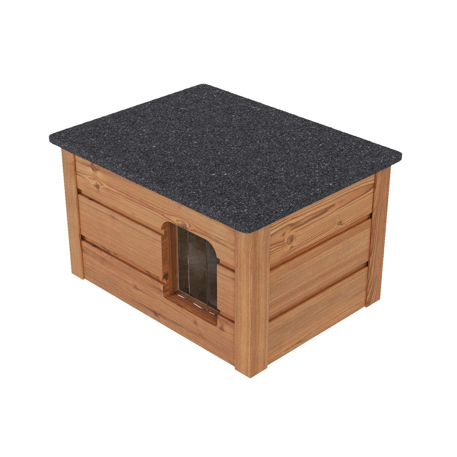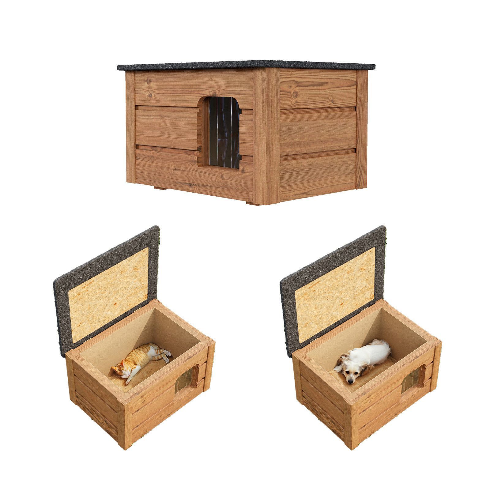 QLS QLS Hunde- Katzenhaus aus Holz 53x39 cm Isoliert Winterfest Montiert Outdoor 10980