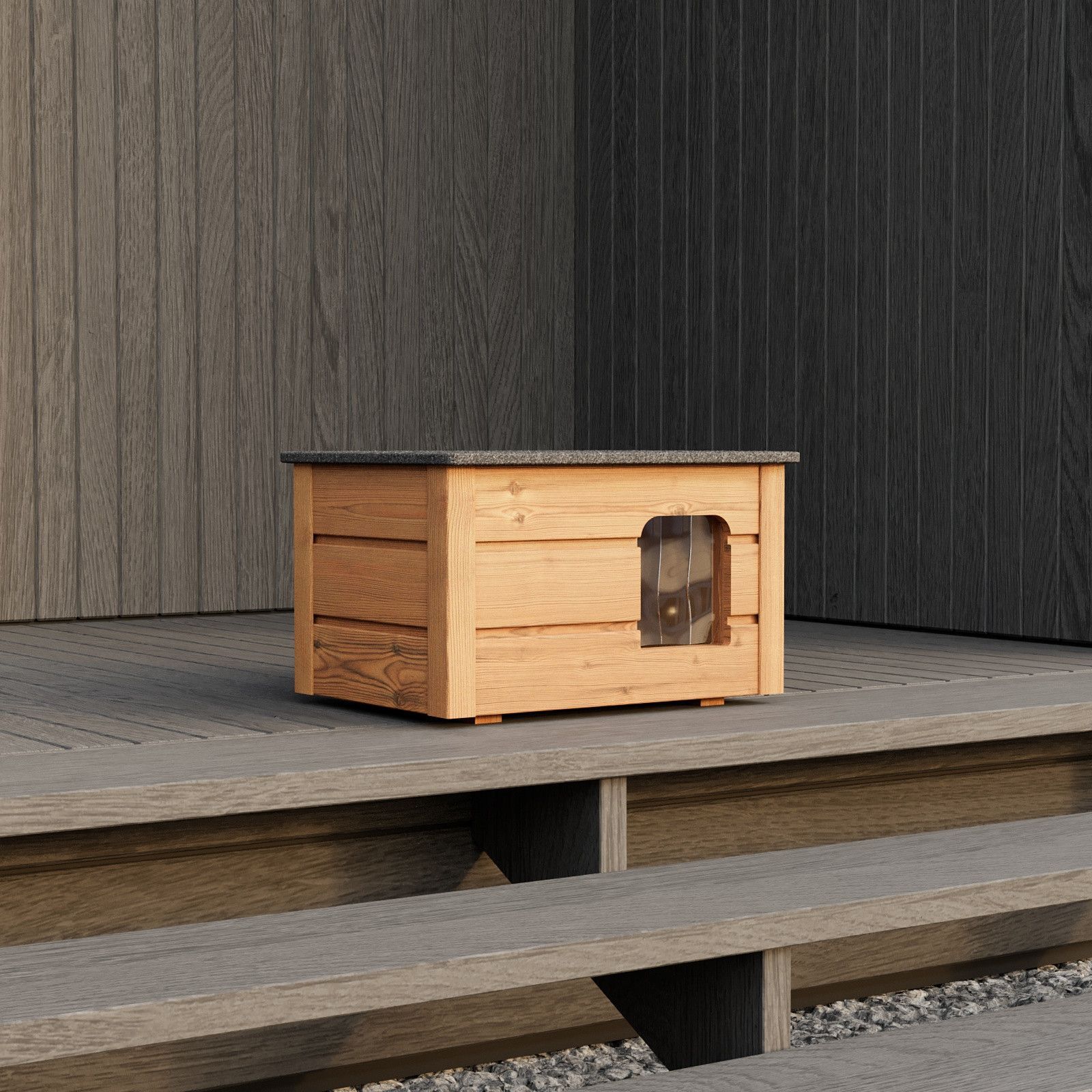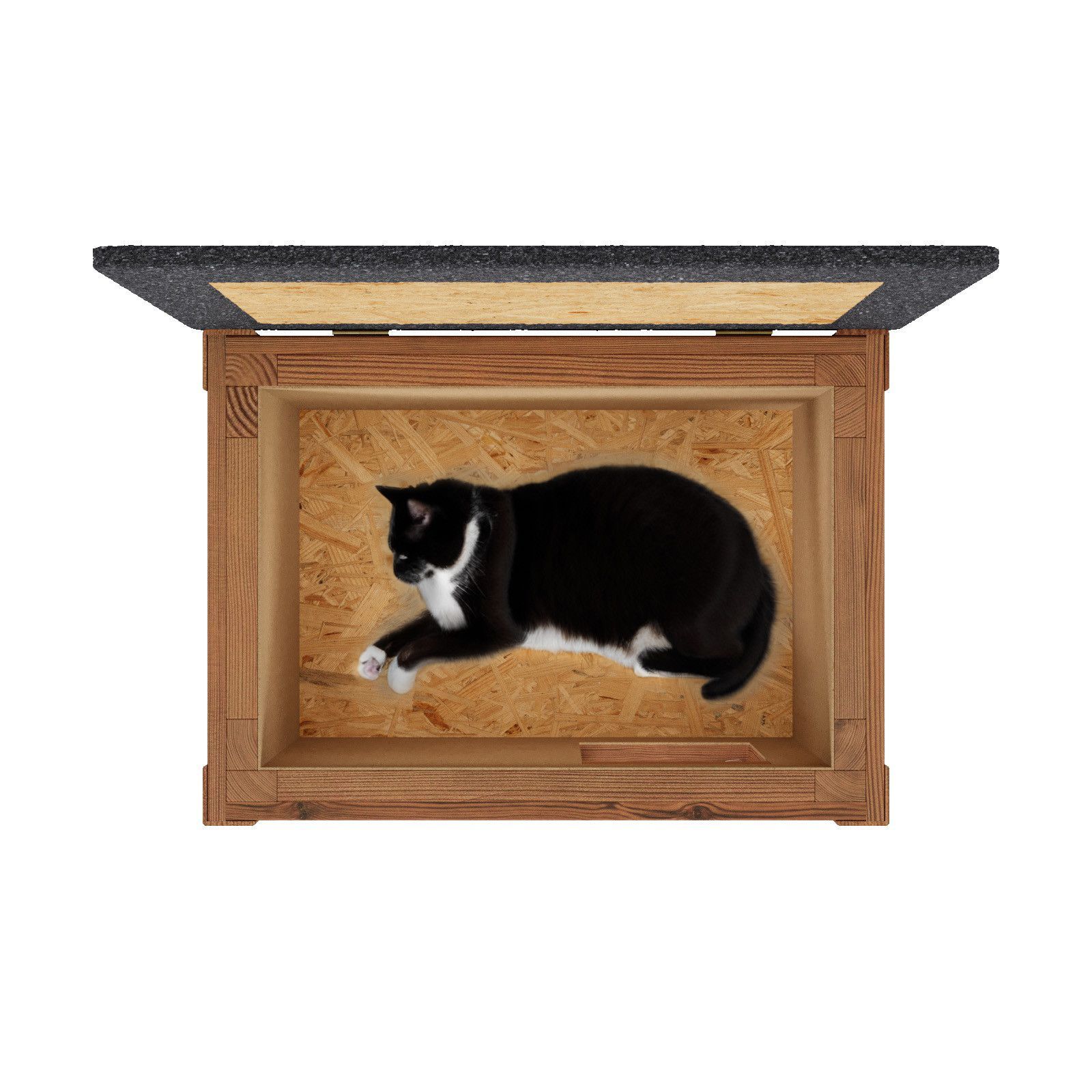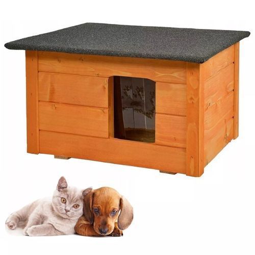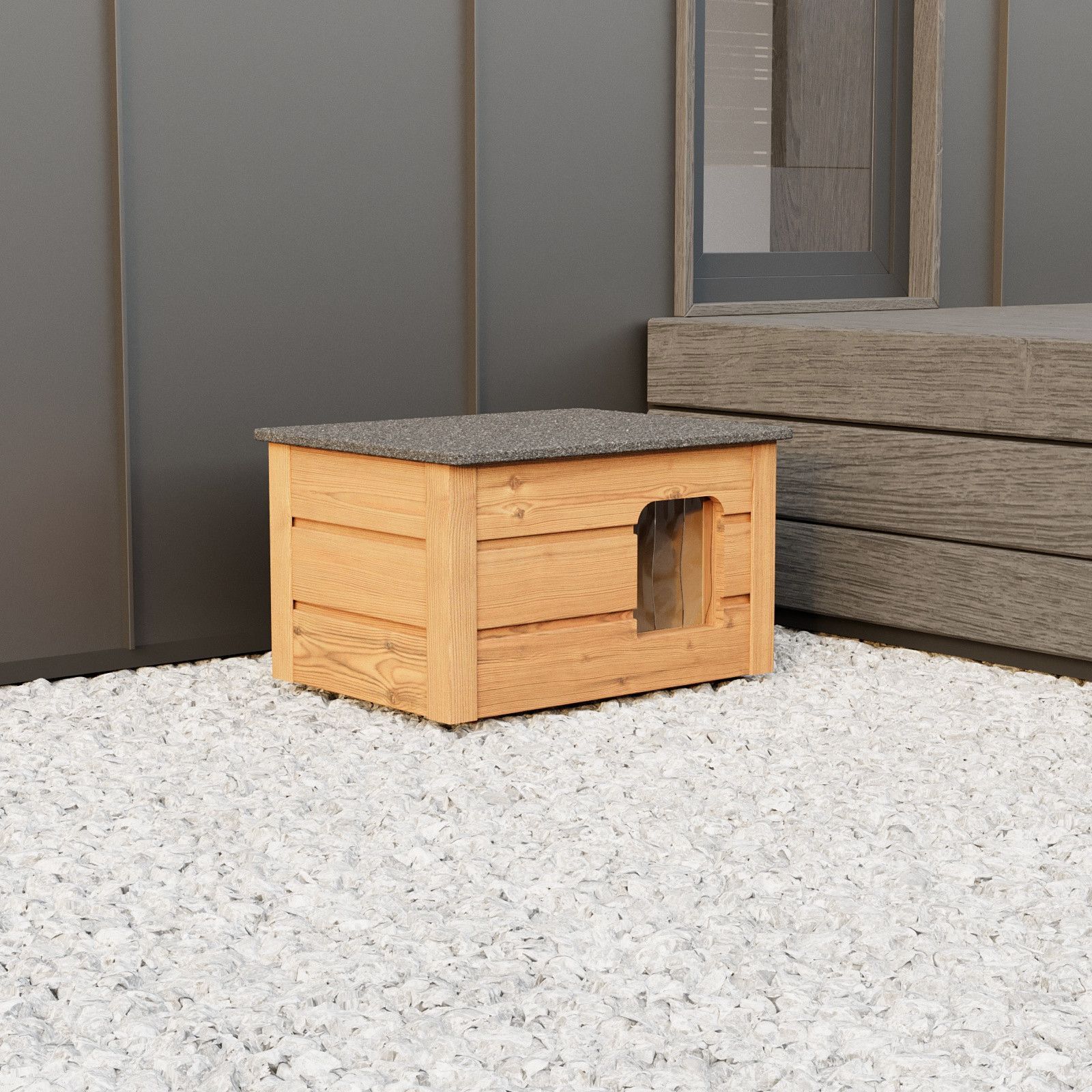 QLS QLS Hunde- Katzenhaus aus Holz 53x39 cm Isoliert Winterfest Montiert Outdoor 10980