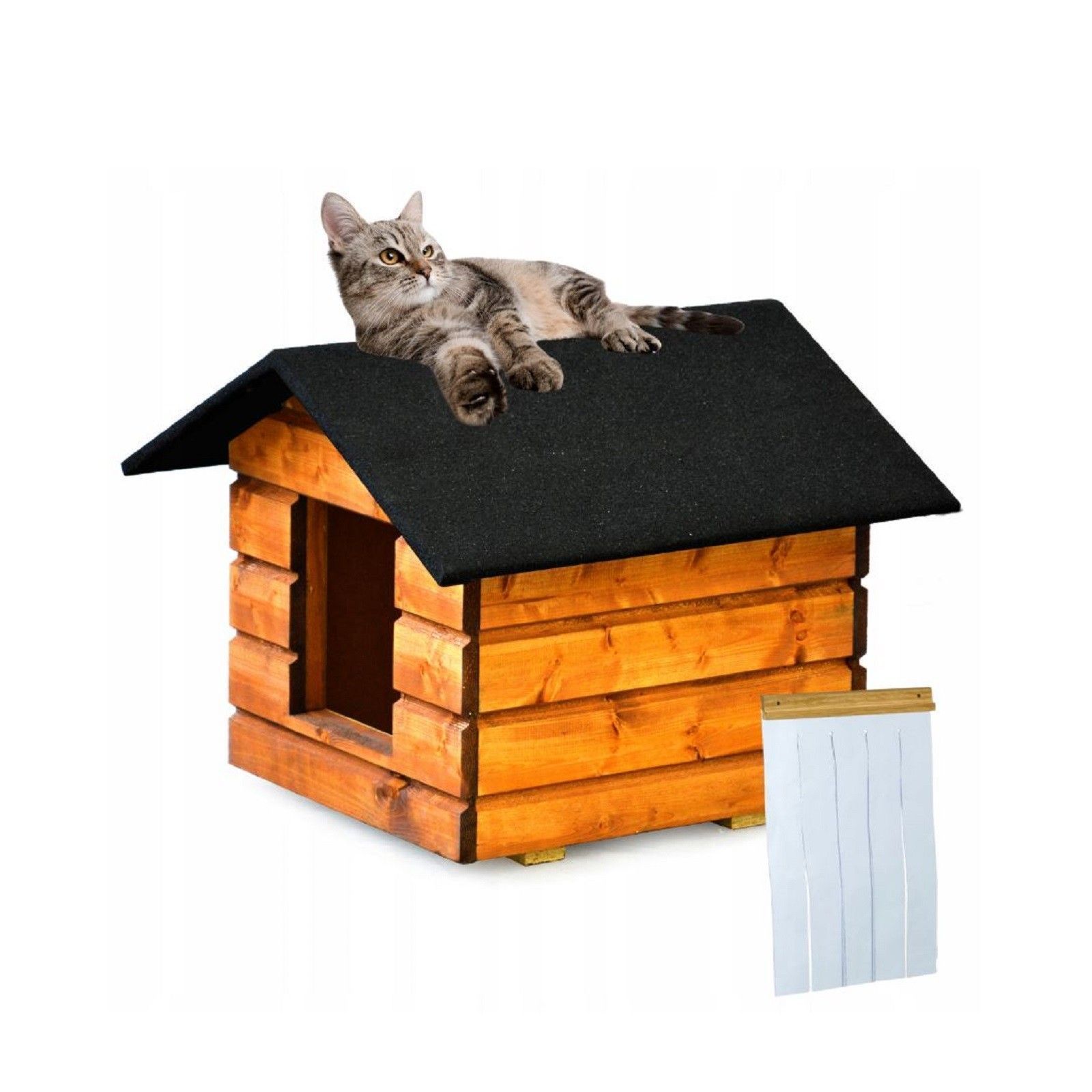 • Katzenhaus XL Outdoor 70x45 cm Katzenhütte Höhle draußen wetterfest Holz 8582