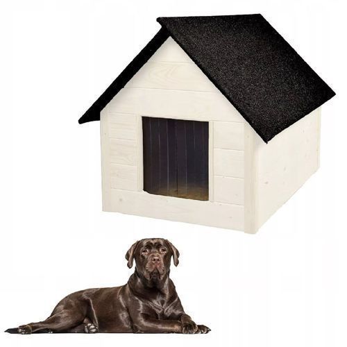 QLS QLS Hundehütte aus Holz 101x69 cm Isoliert Weiß Winterfest Outdoor 10987