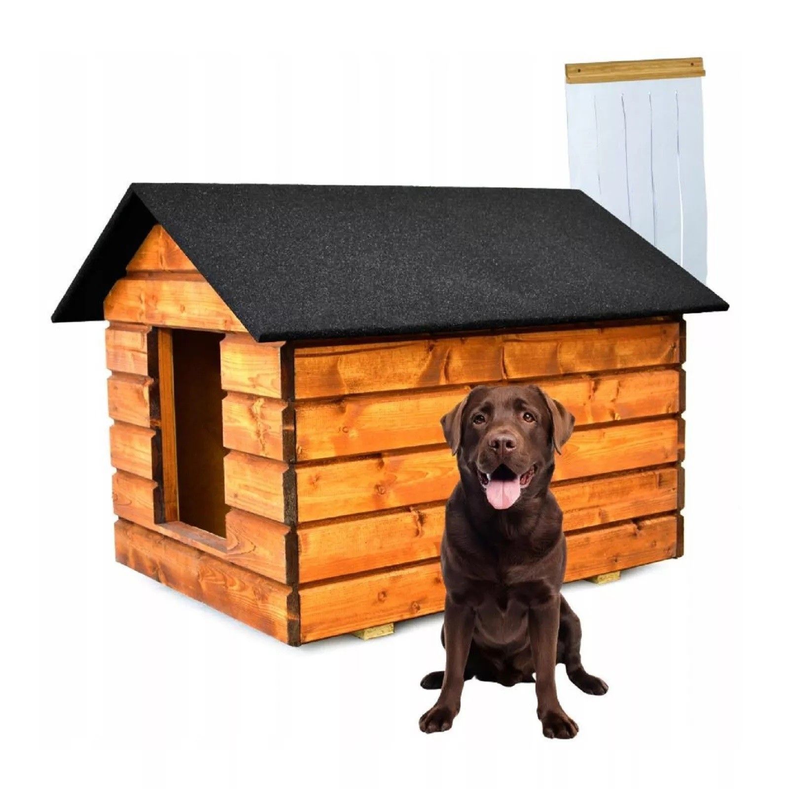 QLS QLS Hundehütte Größe L mit Vorhang Isoliert Winterfest Kiefer Outdoor 11002