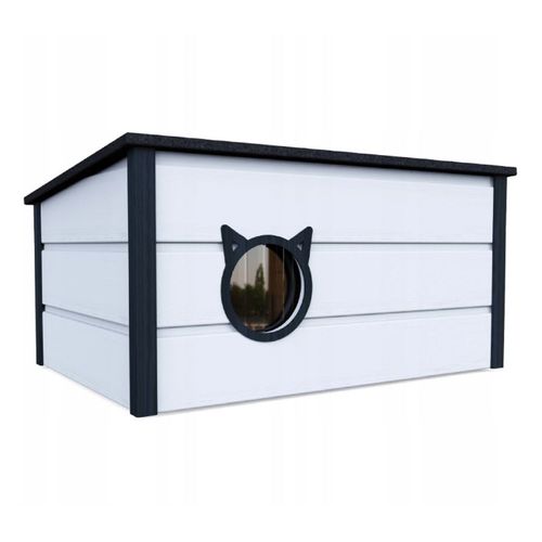 QLS QLS Isoliertes Katzenhaus aus Holz 73×52×38 cm mit Vorhang Wetterfest Weiß Grau 11387