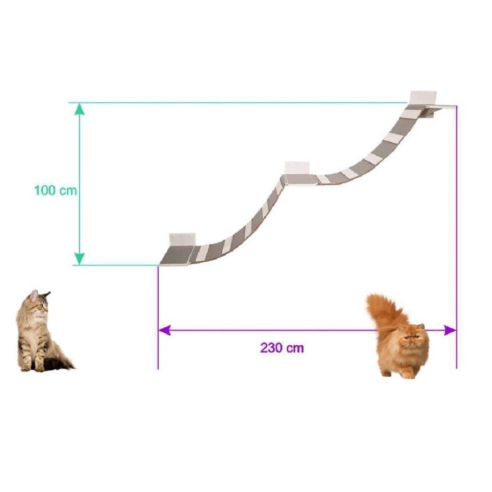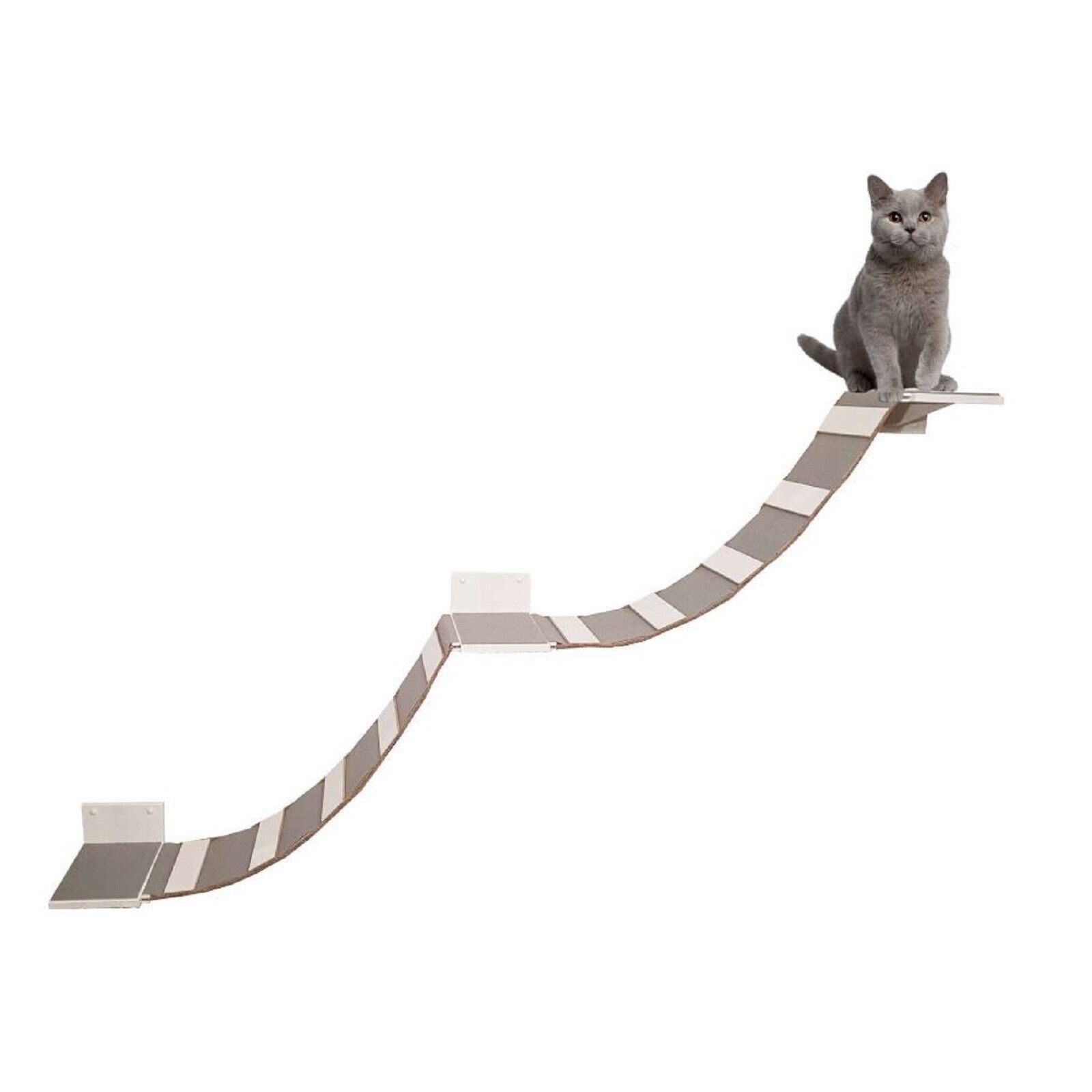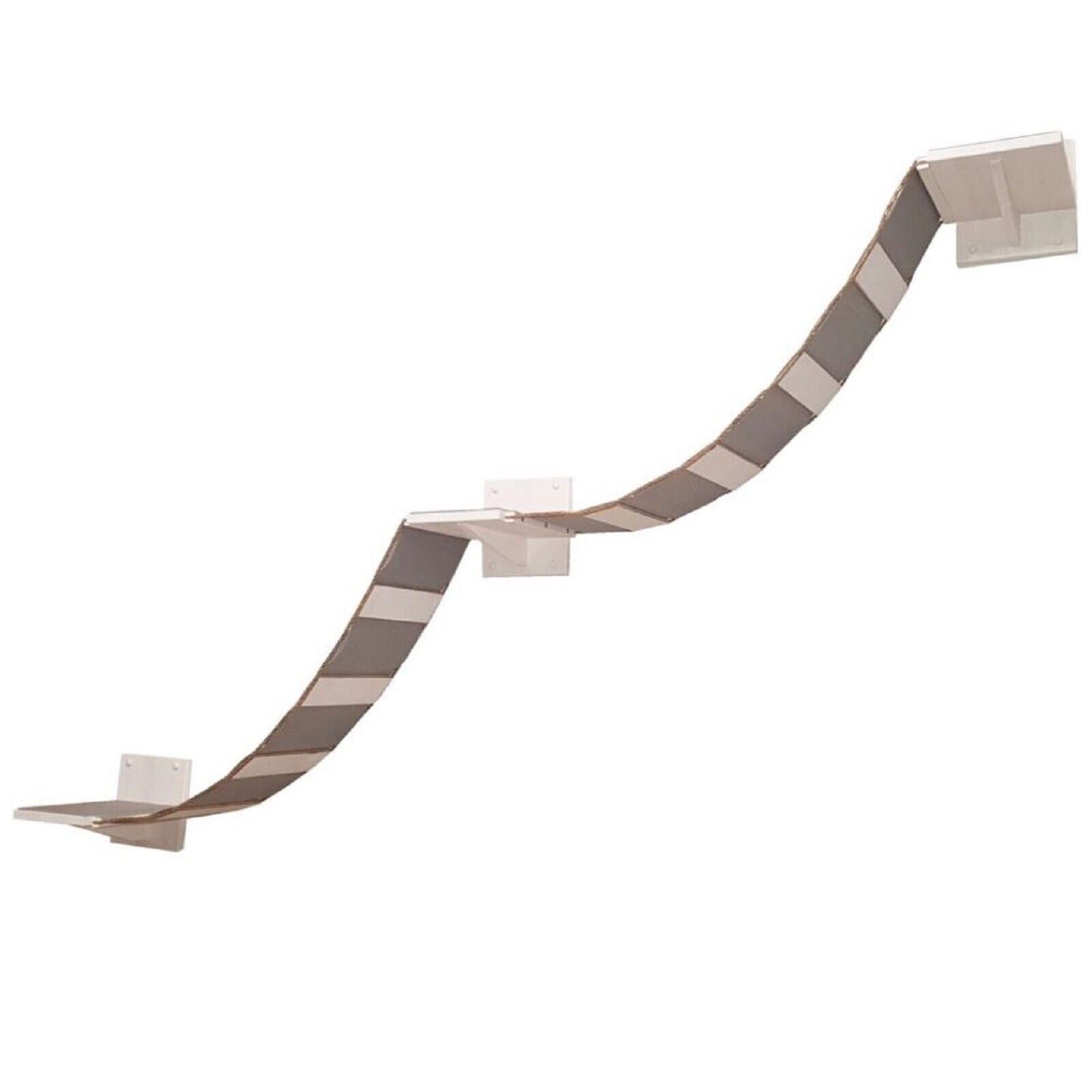 QLS QLS Katzen Hängebrücke Set 3 Wandregale 2 Brücken 230 cm Extra Breit XXL Holz 10963