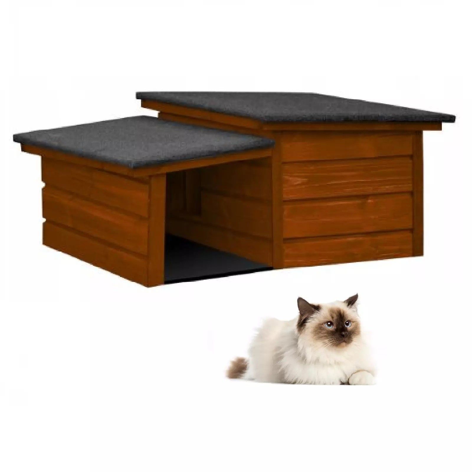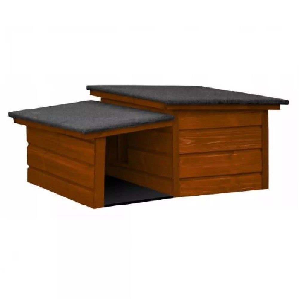 QLS QLS Katzen- Hundehütte Größe S mit Vordach Isoliert Winterfest Teak Outdoor 10995