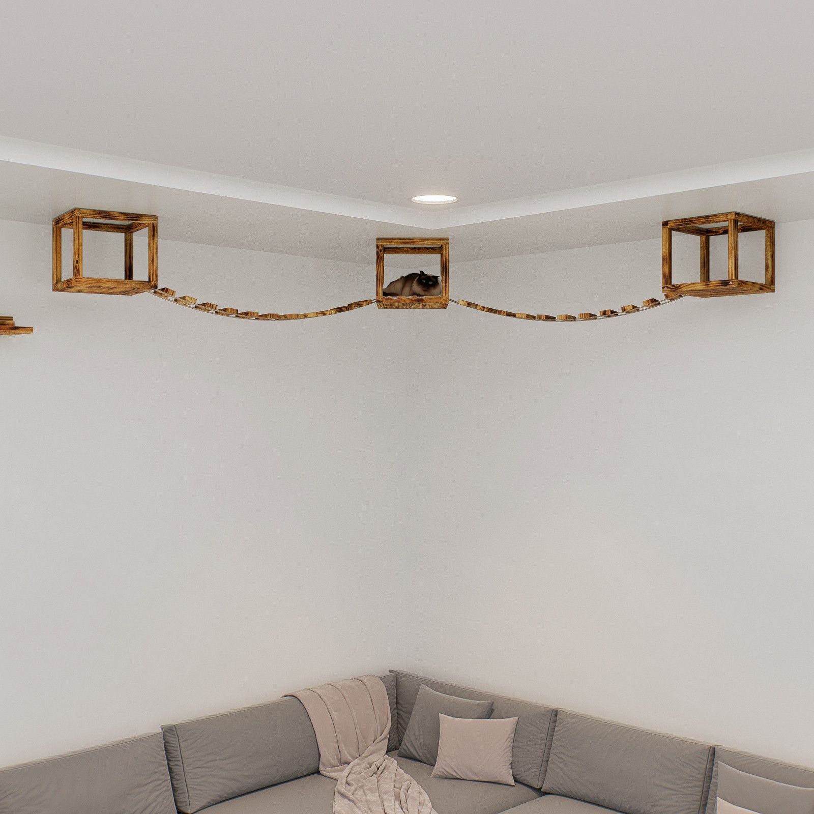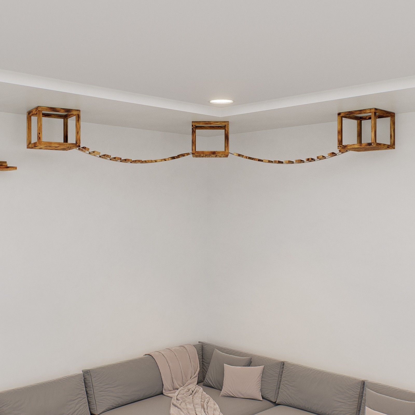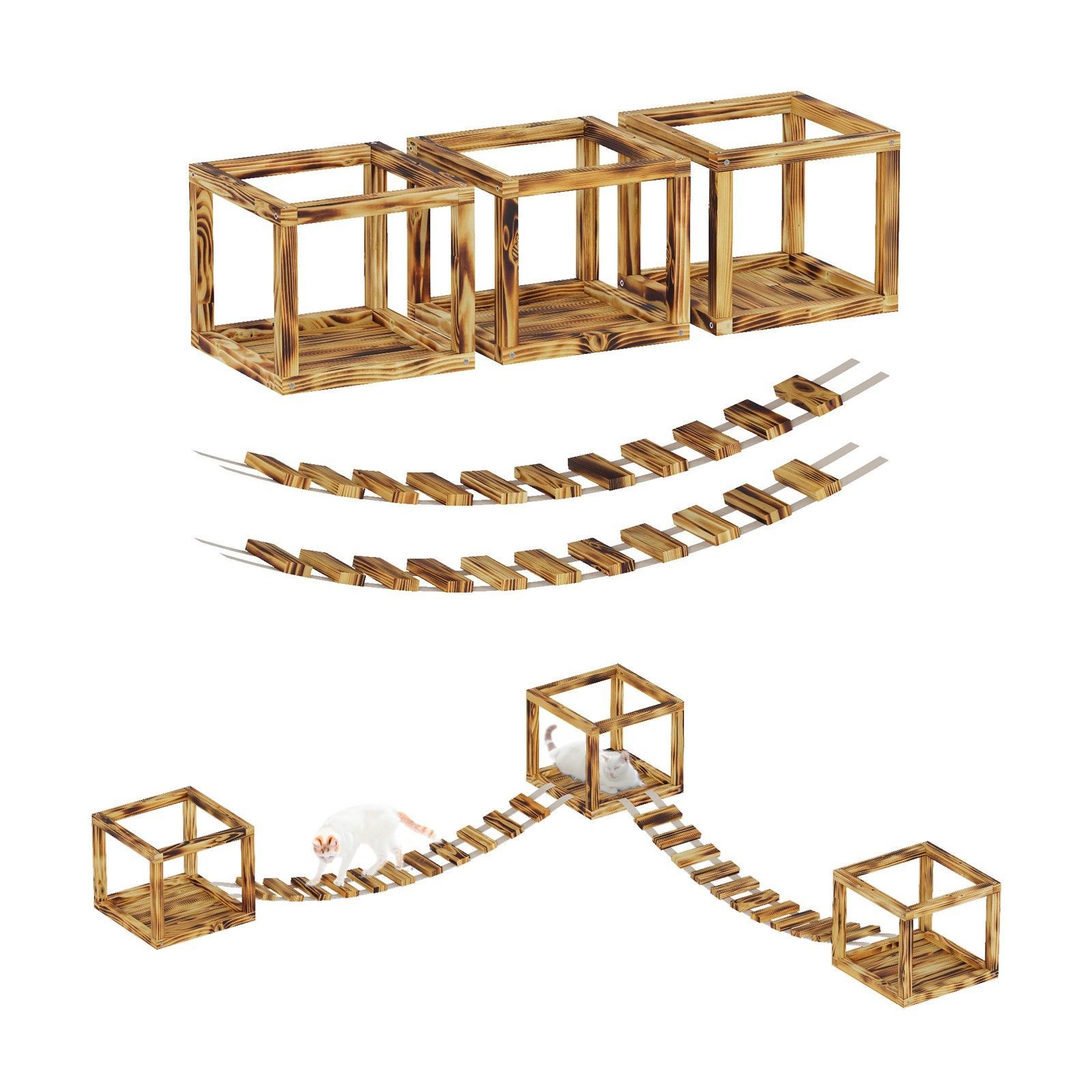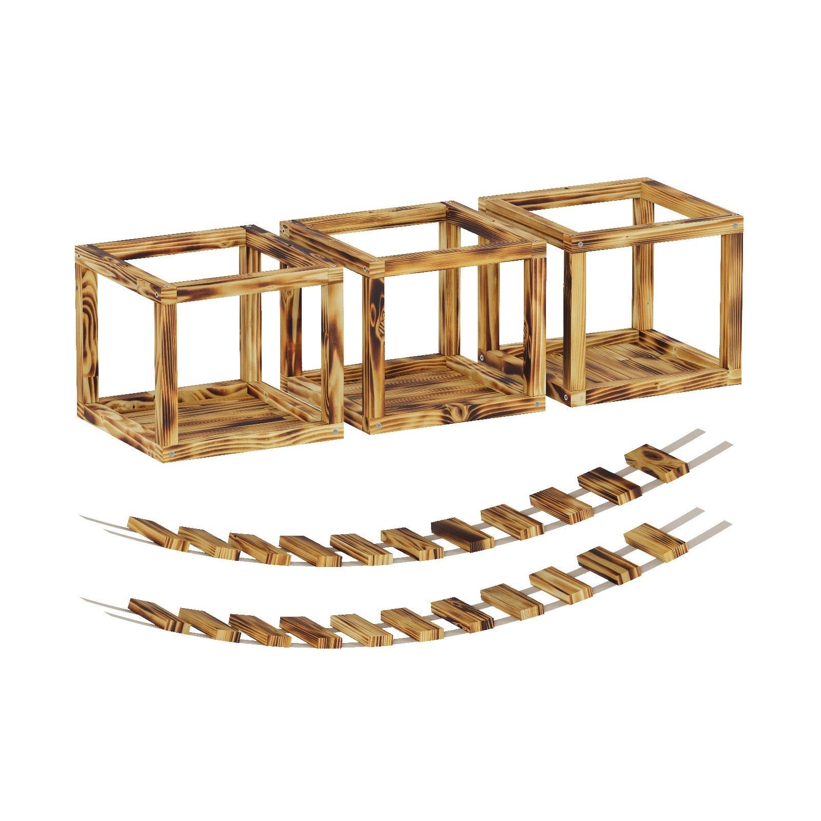 QLS QLS Katzen Kletterwand 2 Brücken und 3 Liegen Deckenmontage Holz geflammt 11235