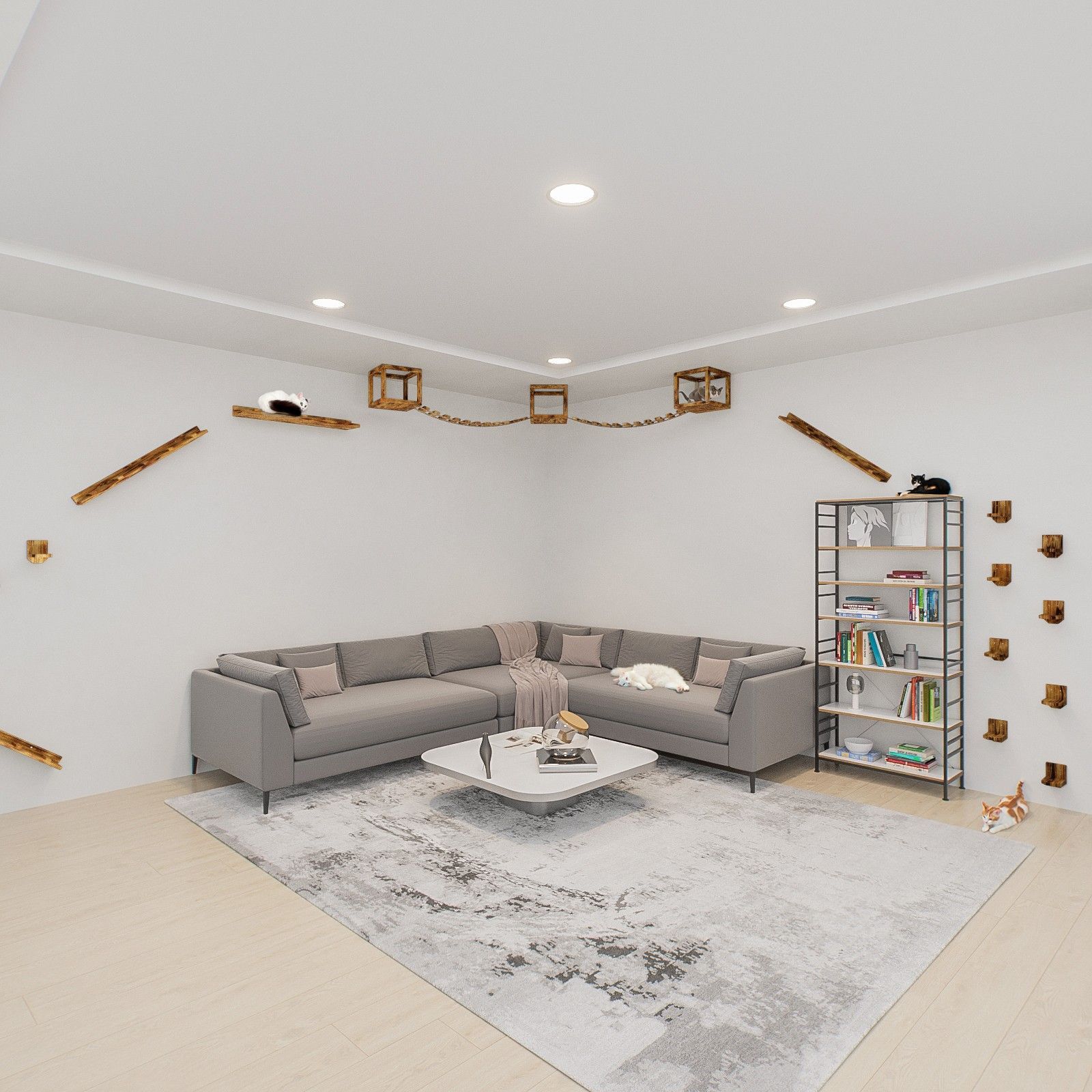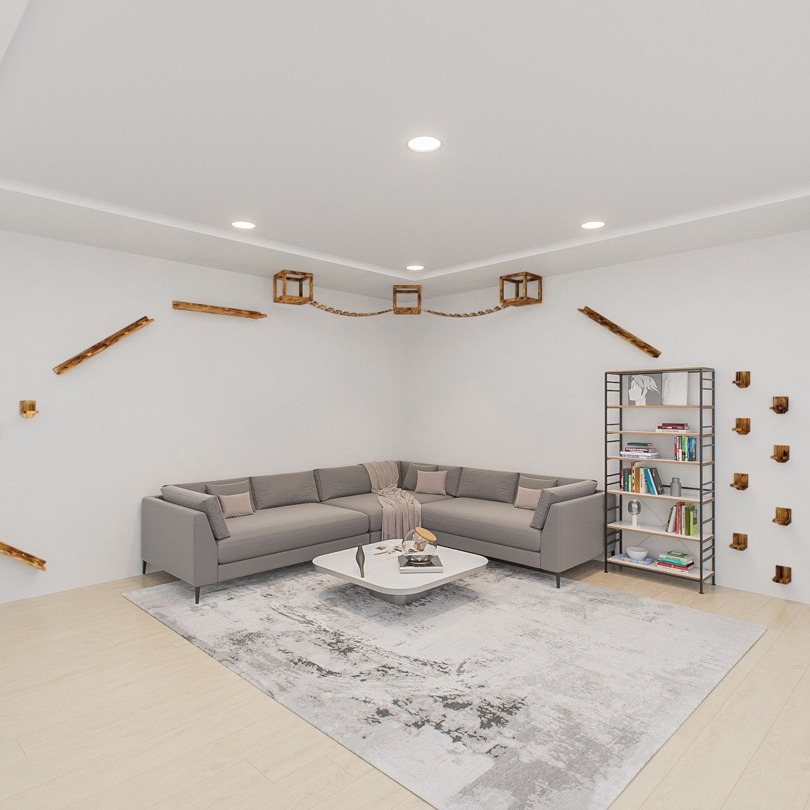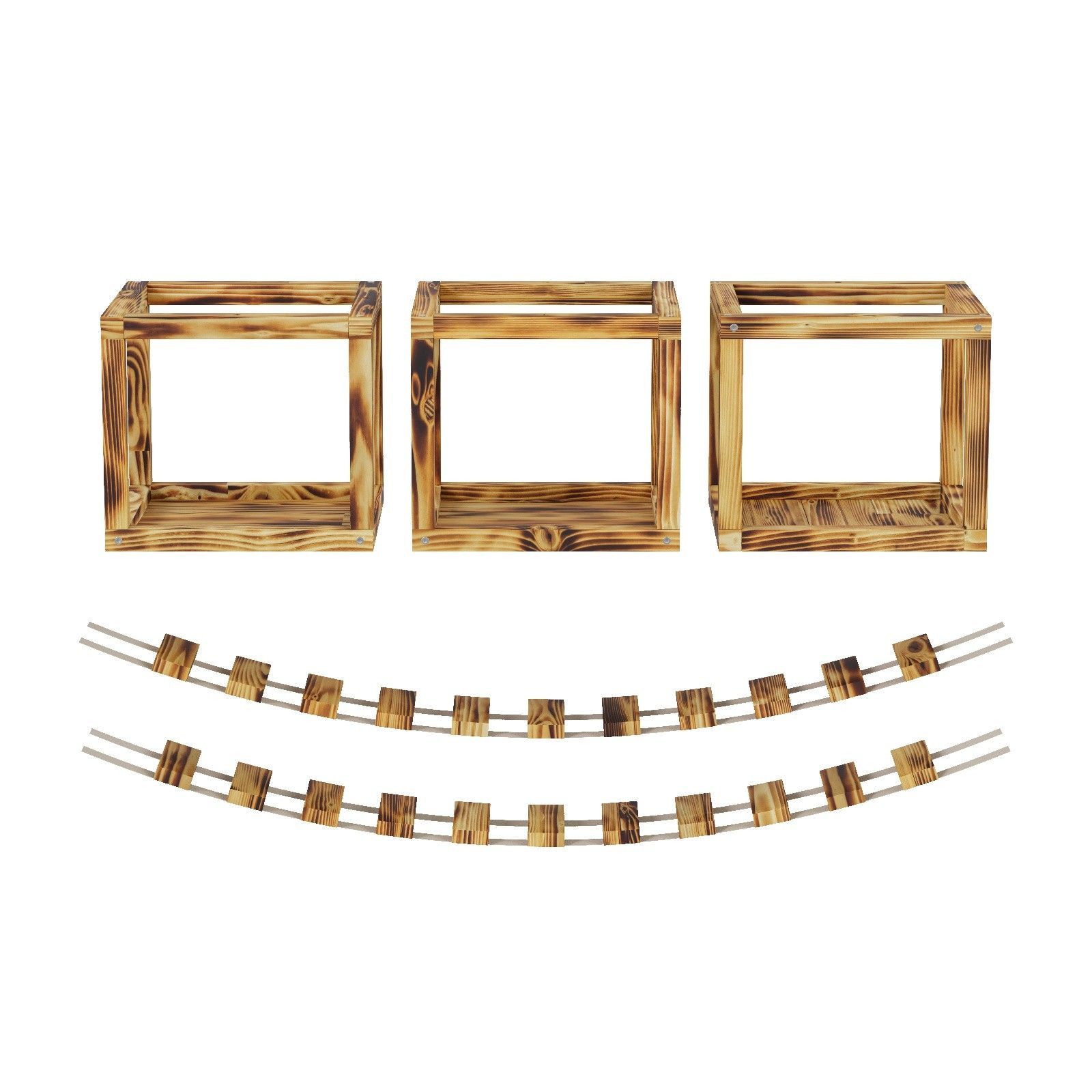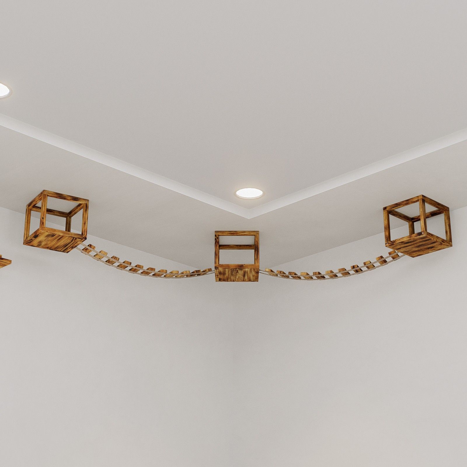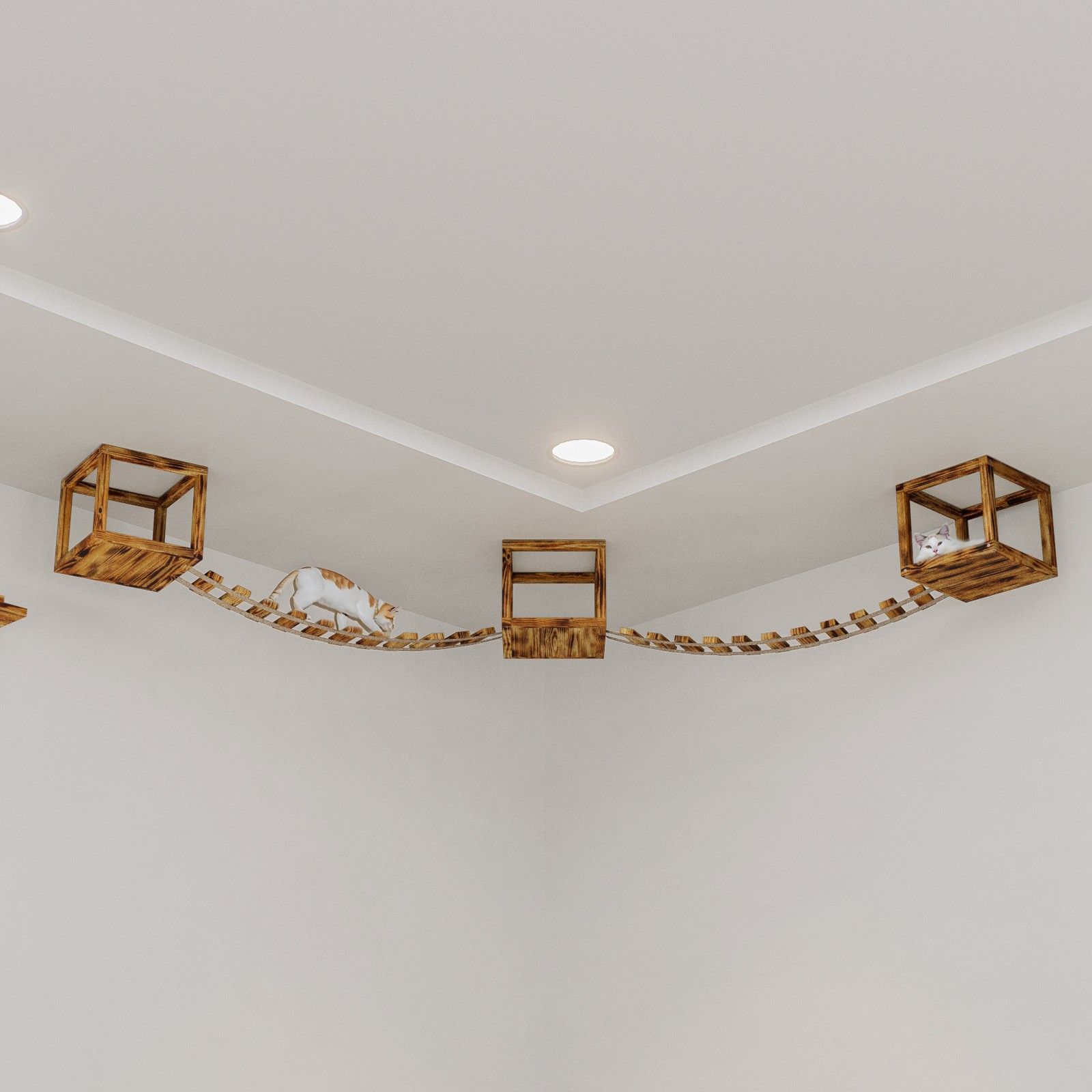 QLS QLS Katzen Kletterwand 2 Brücken und 3 Liegen Deckenmontage Holz geflammt 11235