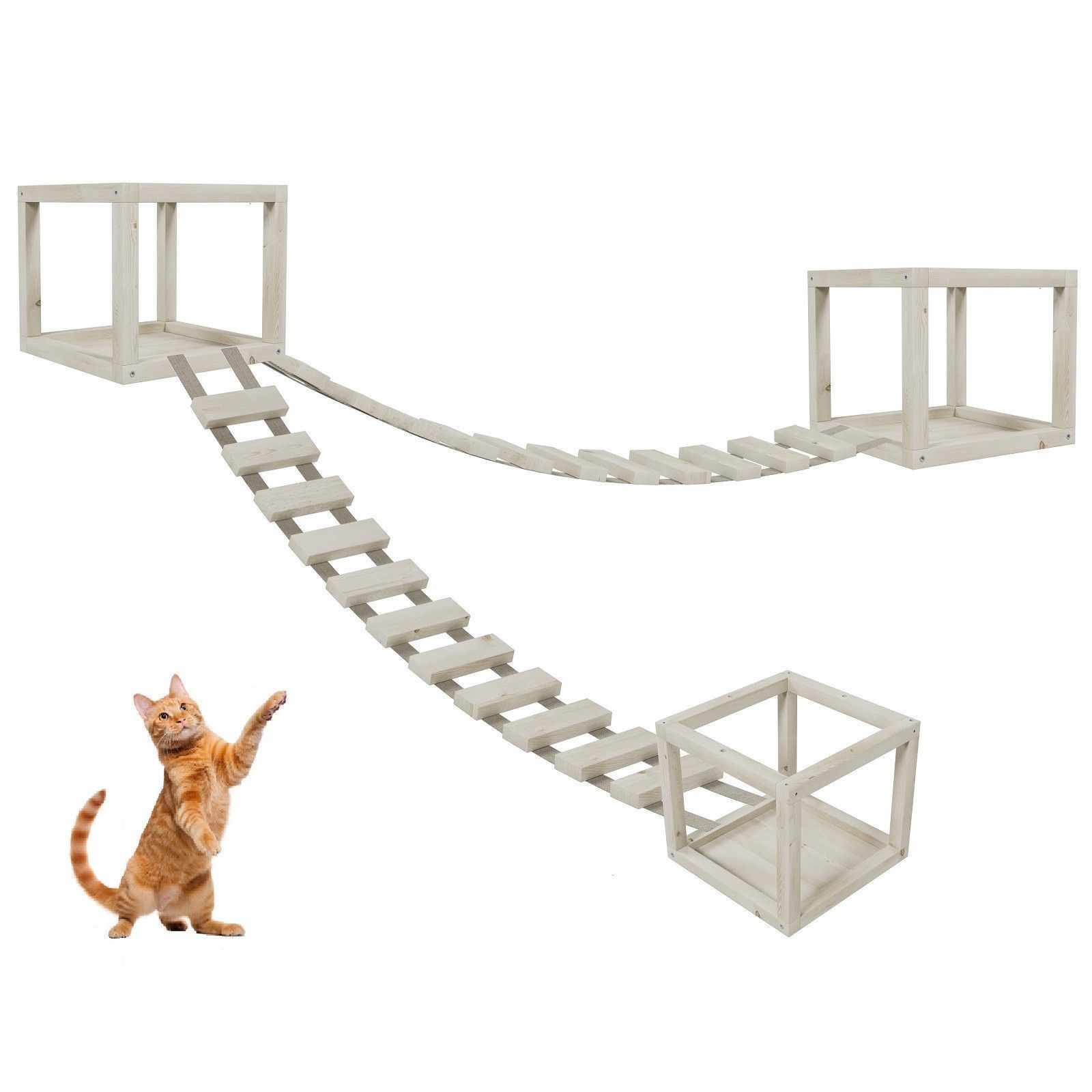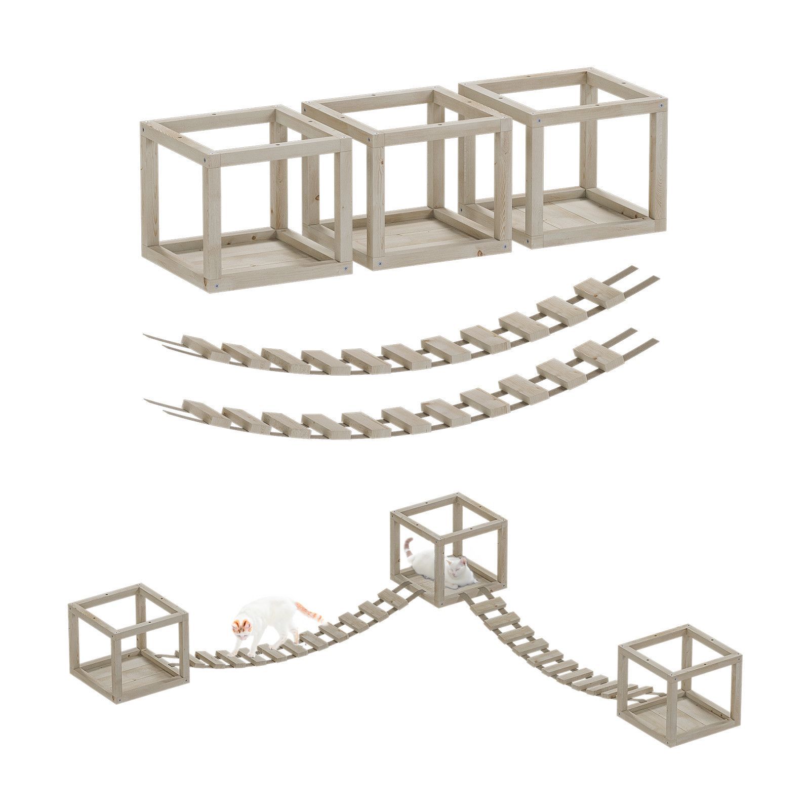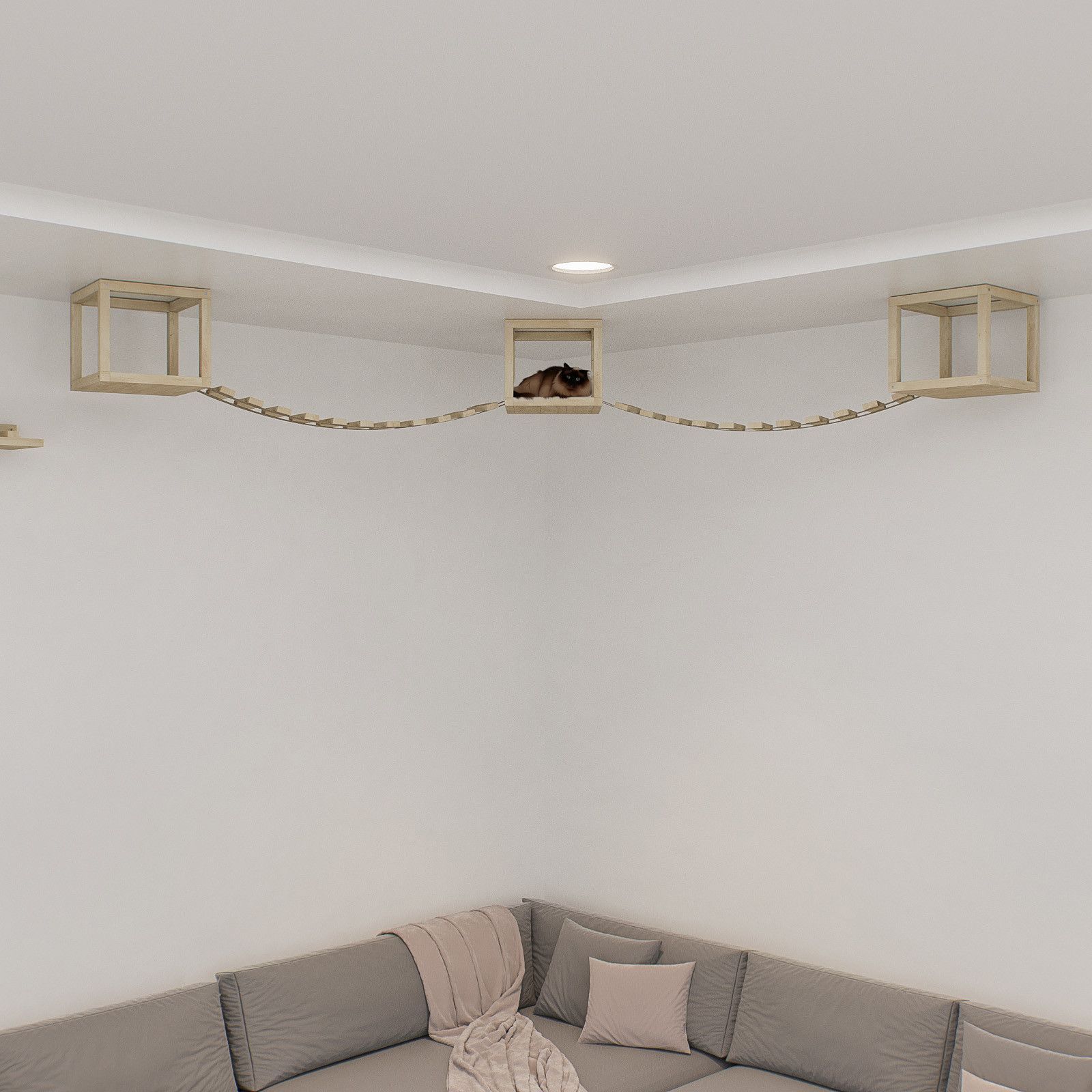 QLS QLS Katzen Kletterwand Set mit 2 Brücken und 3 Liegen aus Holz Deckenmontage 11018