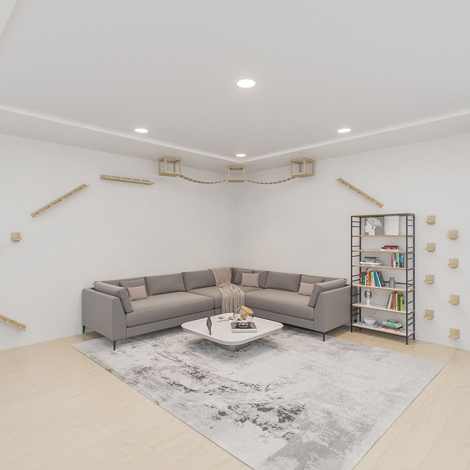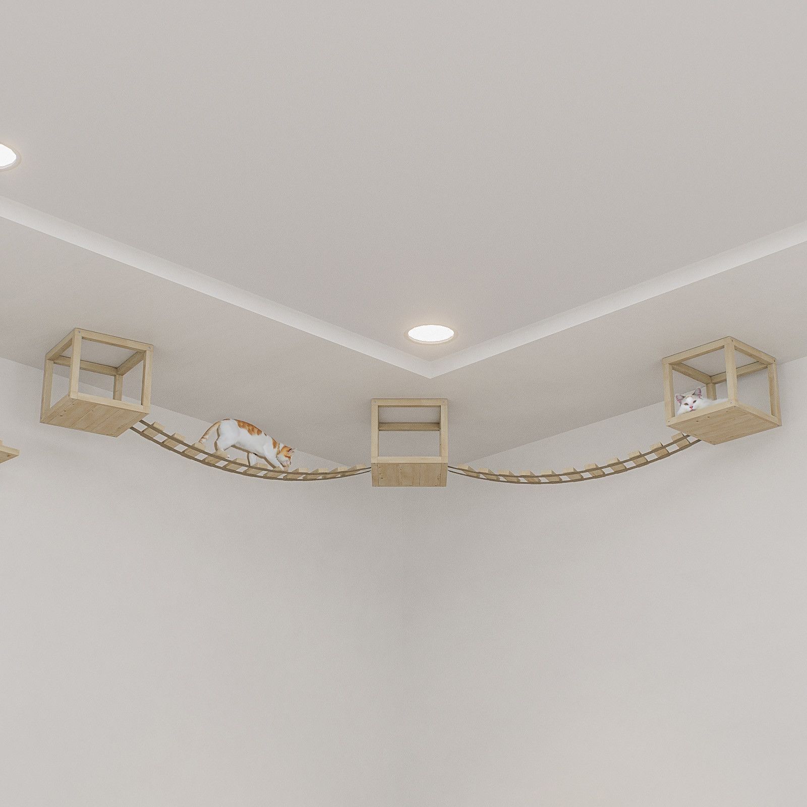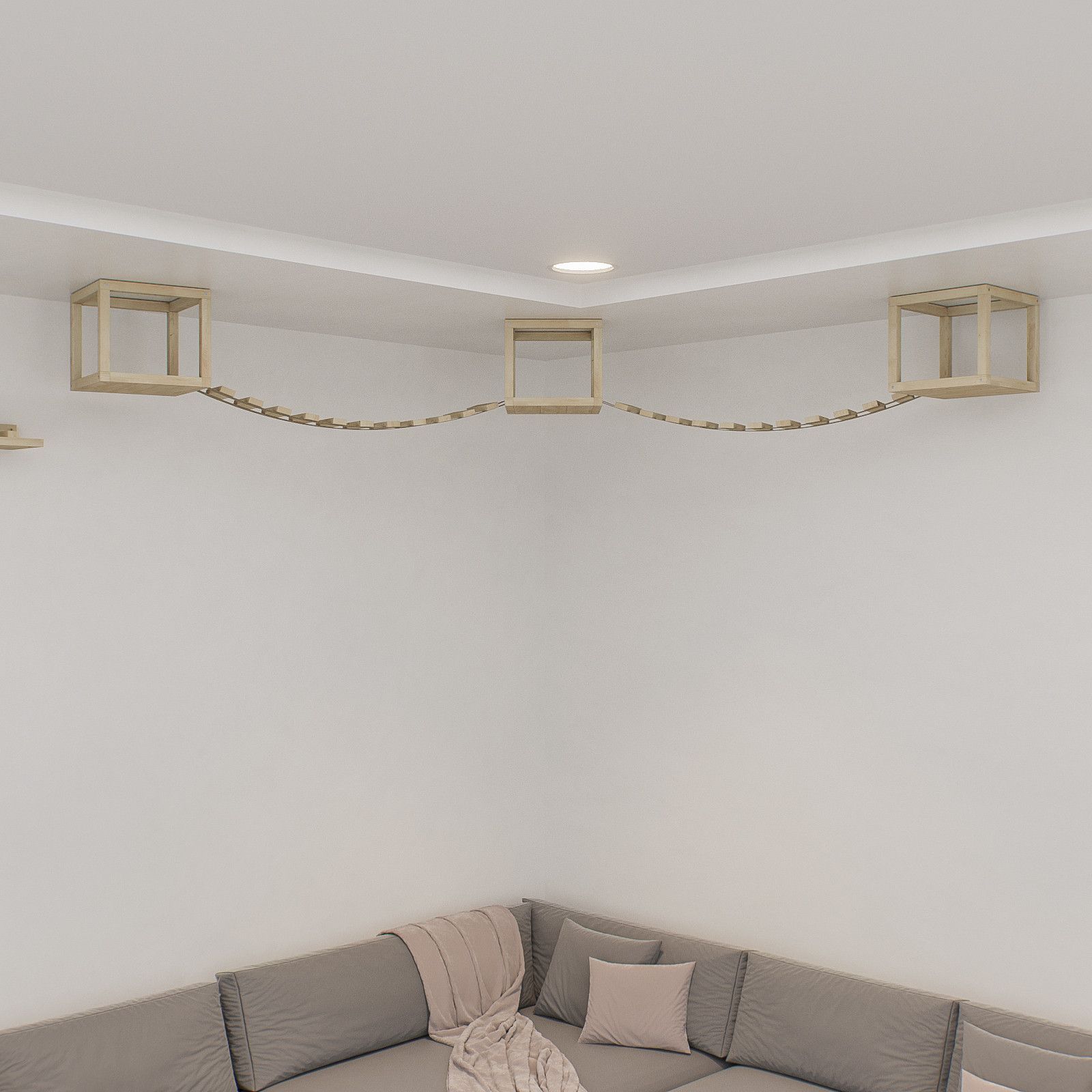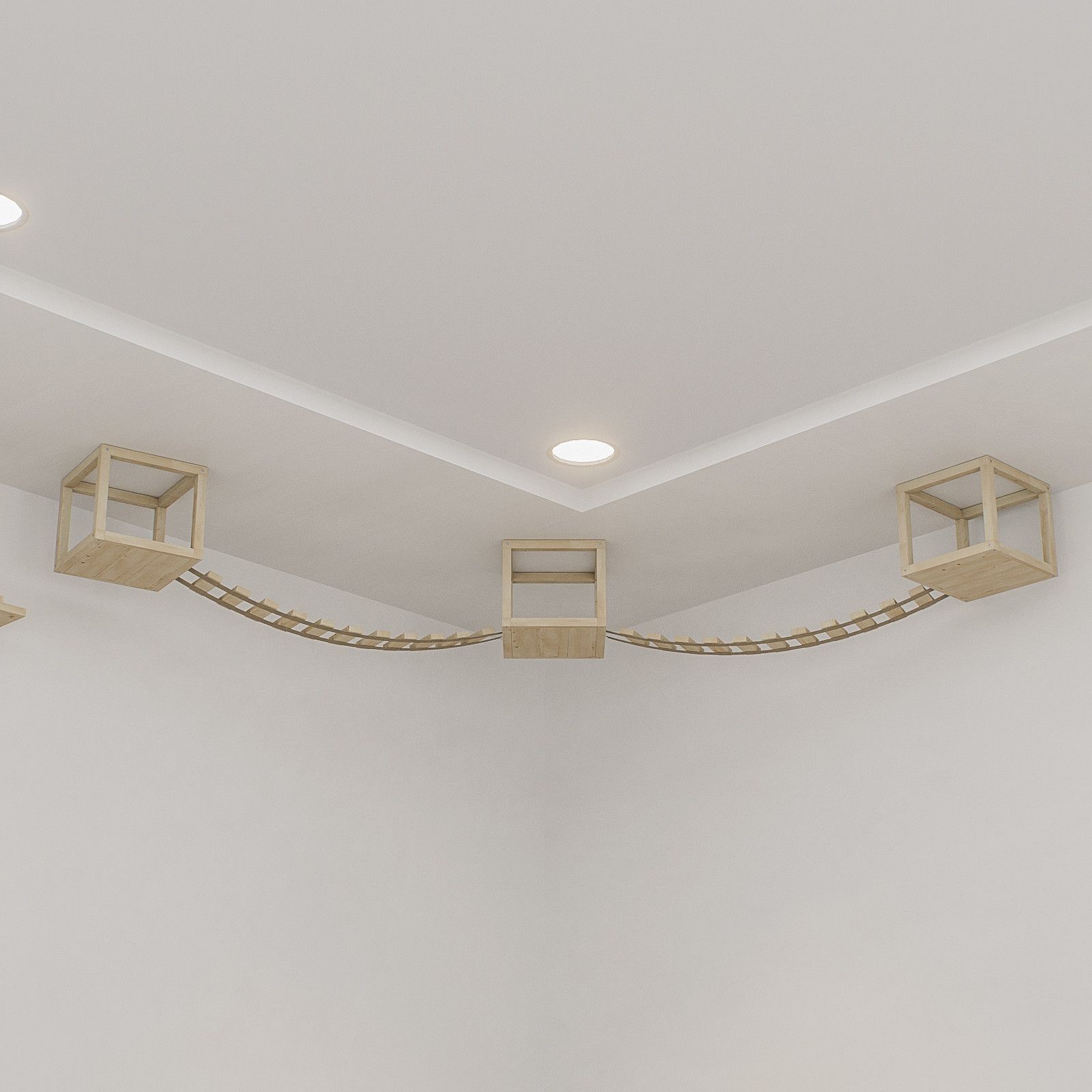QLS QLS Katzen Kletterwand Set mit 2 Brücken und 3 Liegen aus Holz Deckenmontage 11018