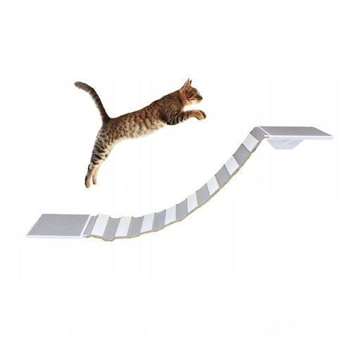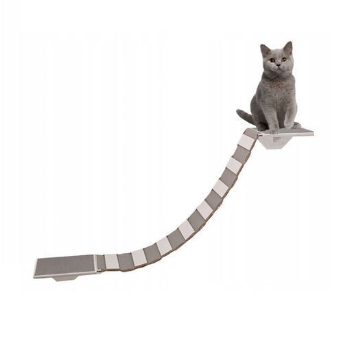 QLS QLS Katzenbrücke mit 2 Katzenliegen Set 130 cm Wandbefestigung aus Holz Grau 10953