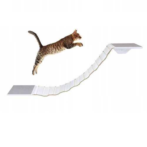 QLS QLS Katzenbrücke mit 2 Katzenliegen Set 130 cm Wandbefestigung Holz Weiß Grau 10954