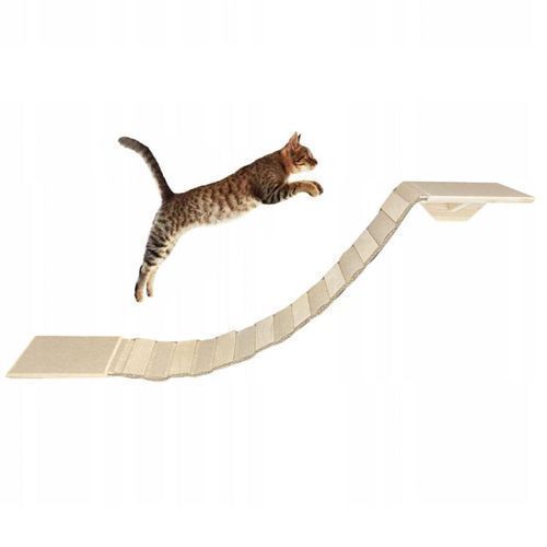 QLS QLS Katzenbrücke mit 2 Katzenliegen Set 130 cm Wandbefestigung Naturholz Beige 10958