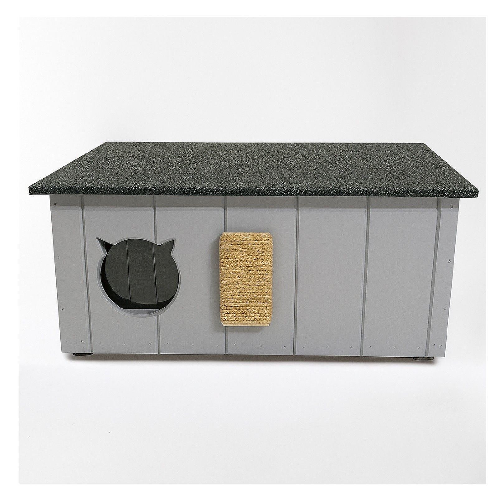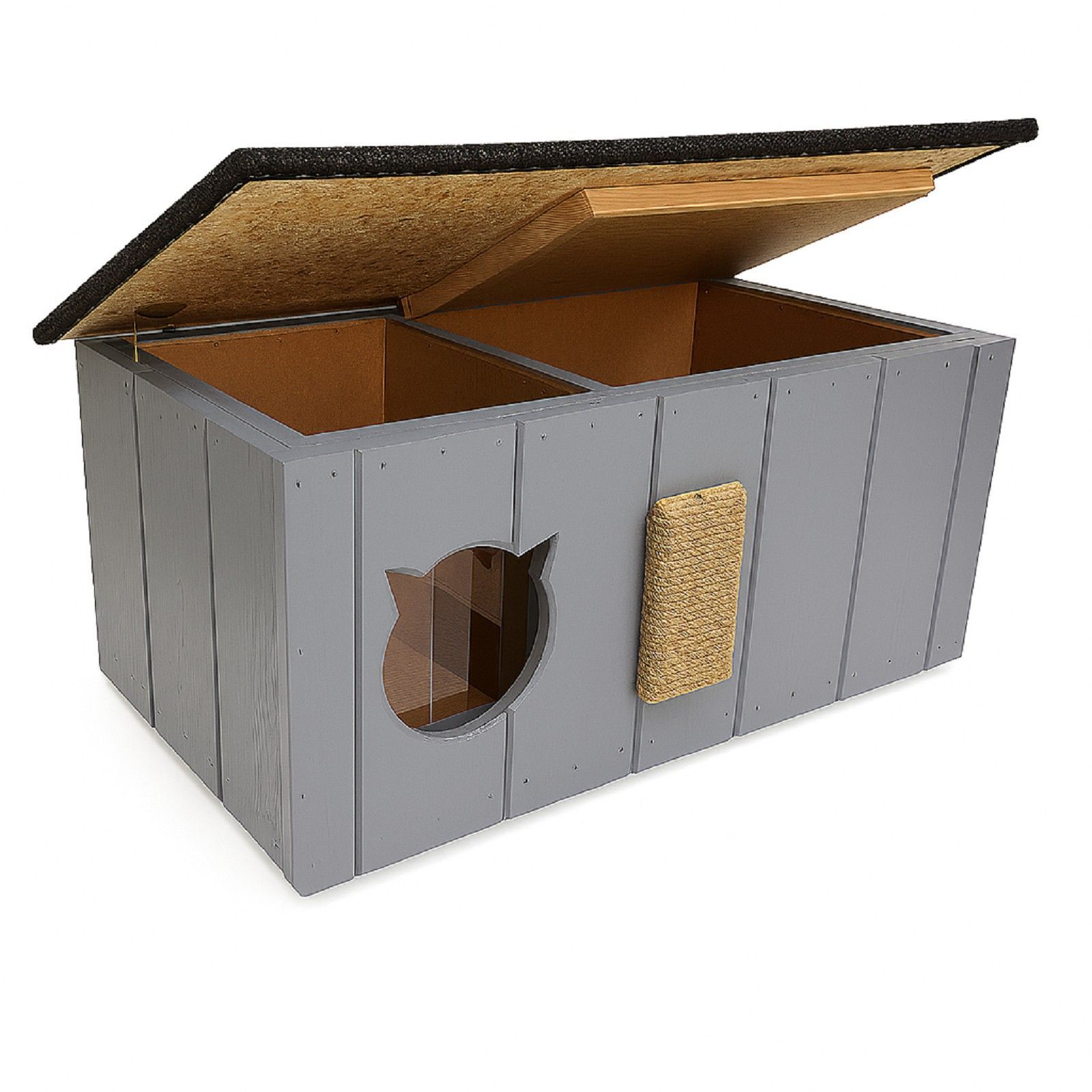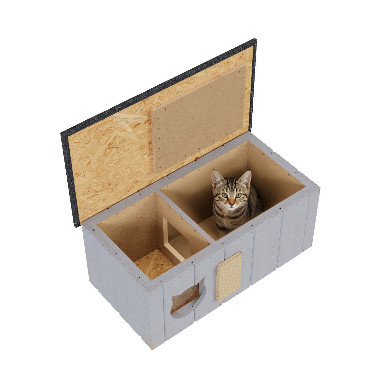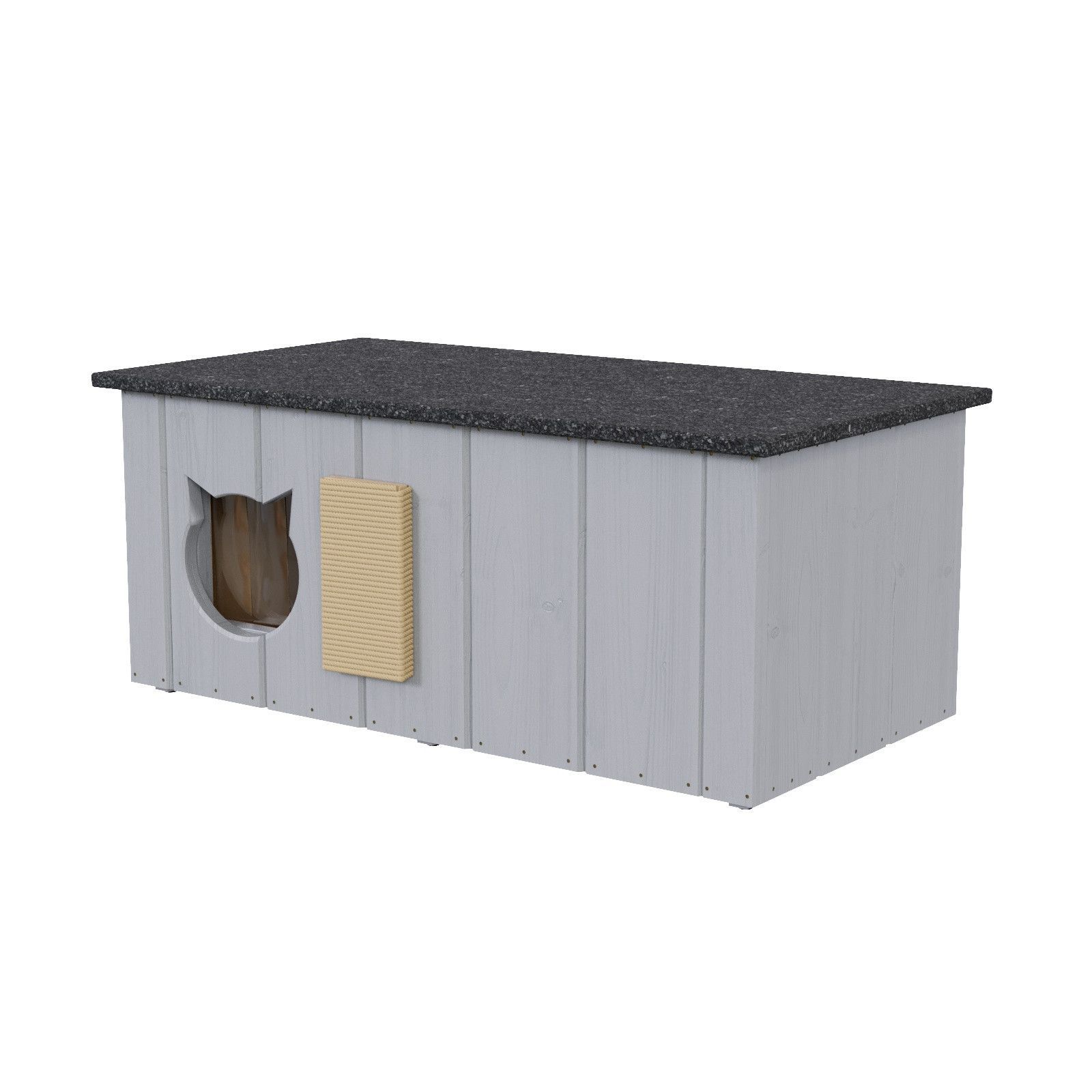 QLS QLS Katzenhaus aus Holz 86x47x37cm mit Vorraum Isoliert Outdoor Grau 11363
