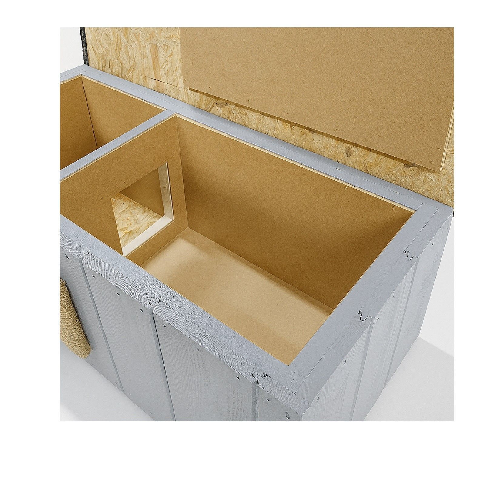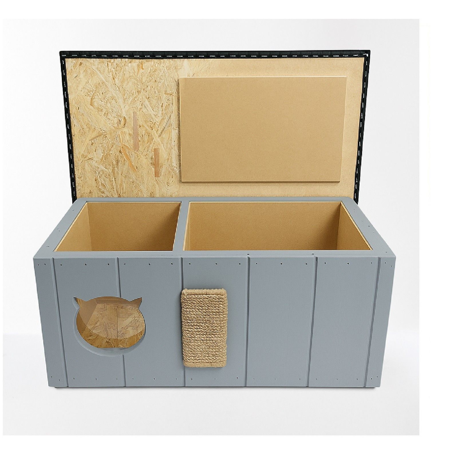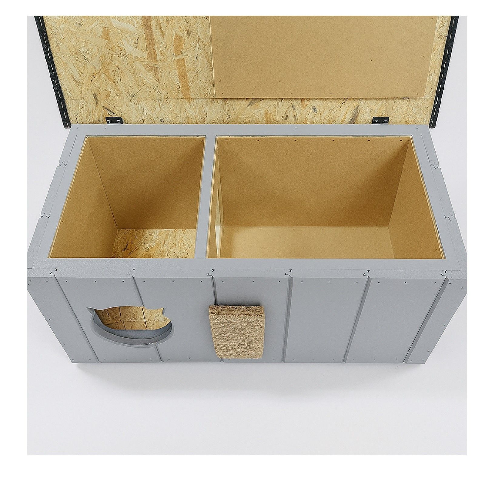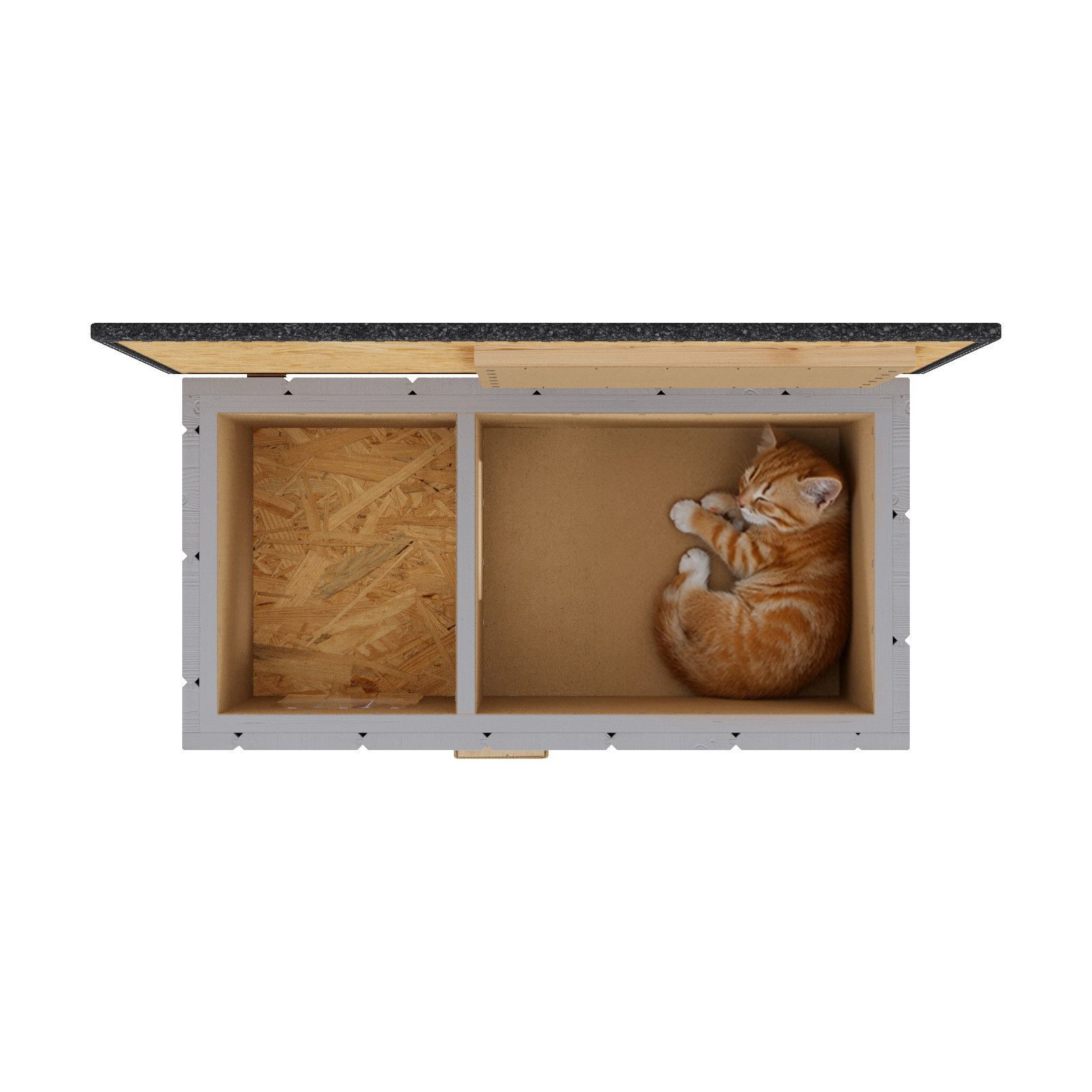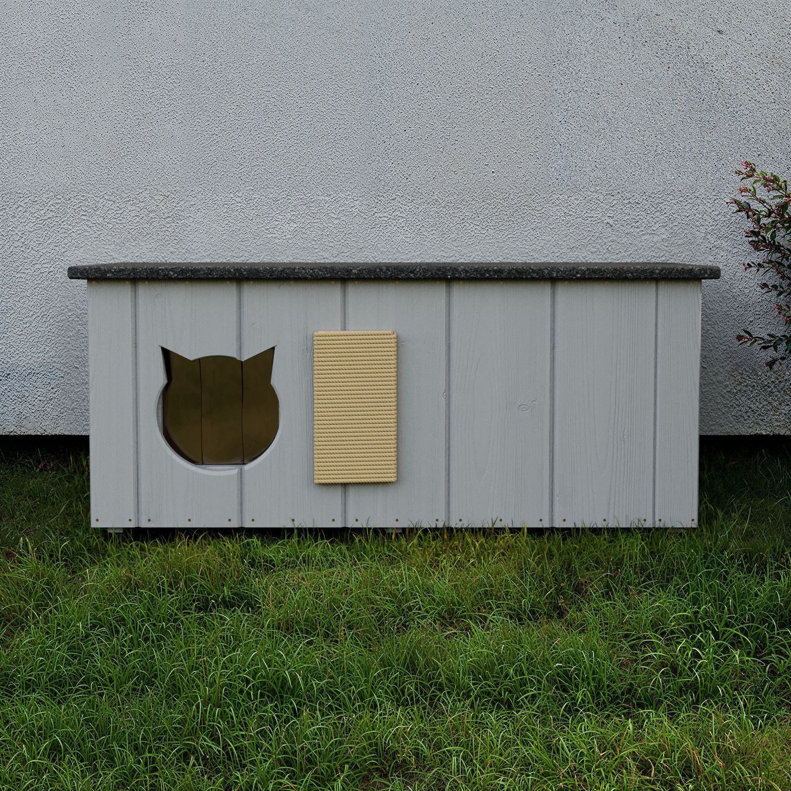QLS QLS Katzenhaus aus Holz 86x47x37cm mit Vorraum Isoliert Outdoor Grau 11363