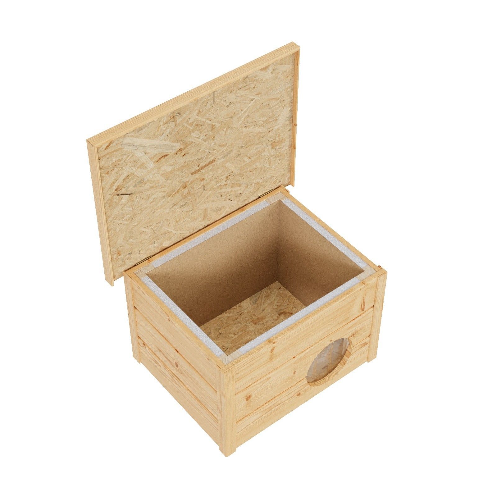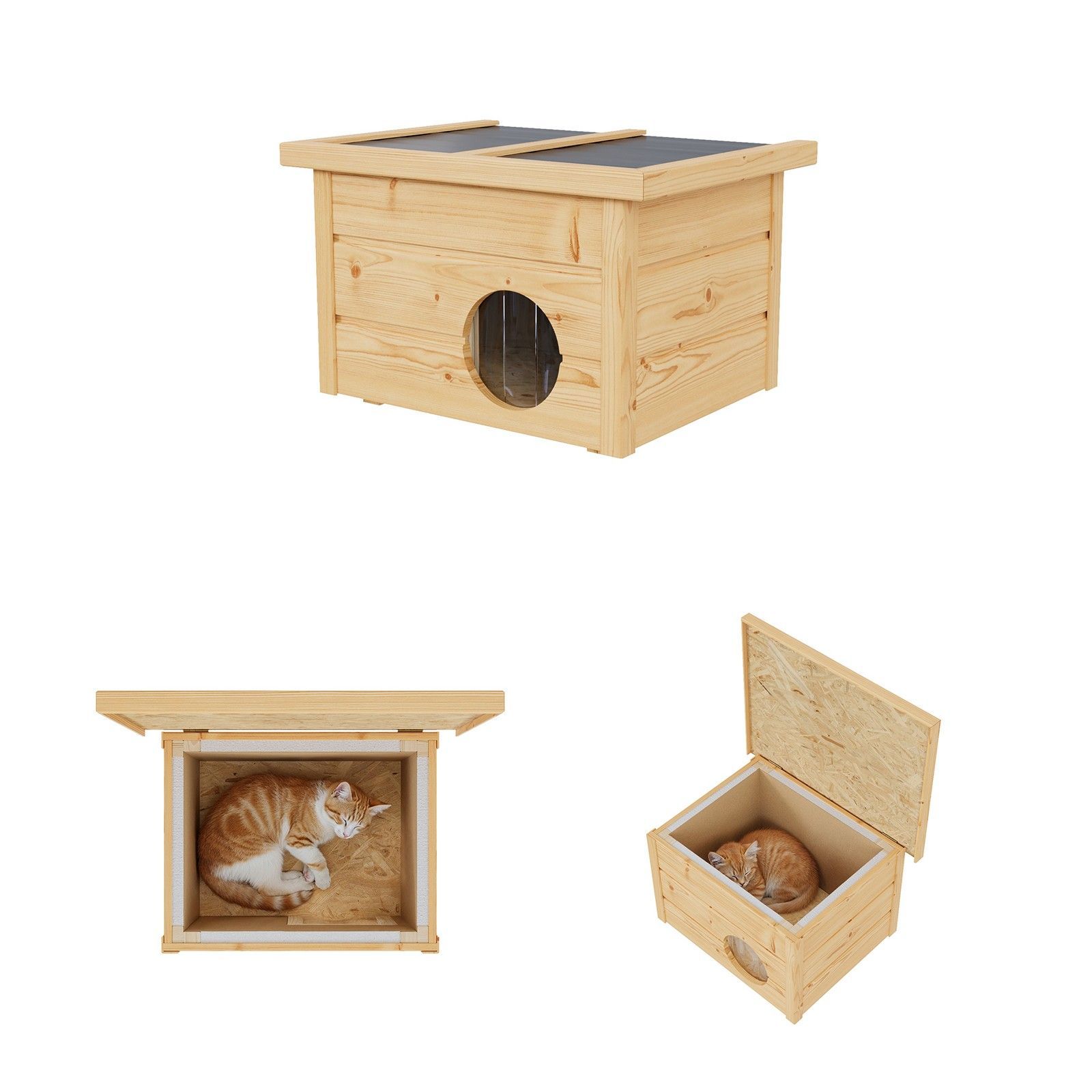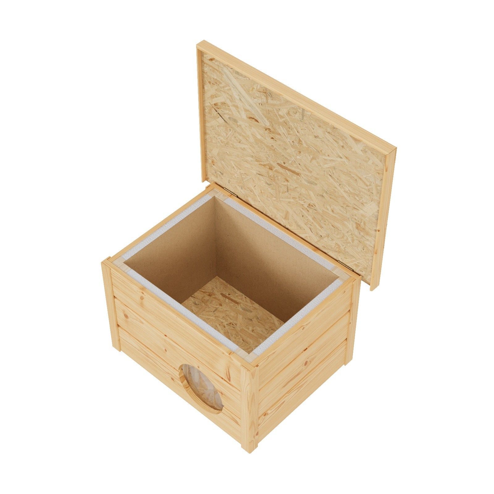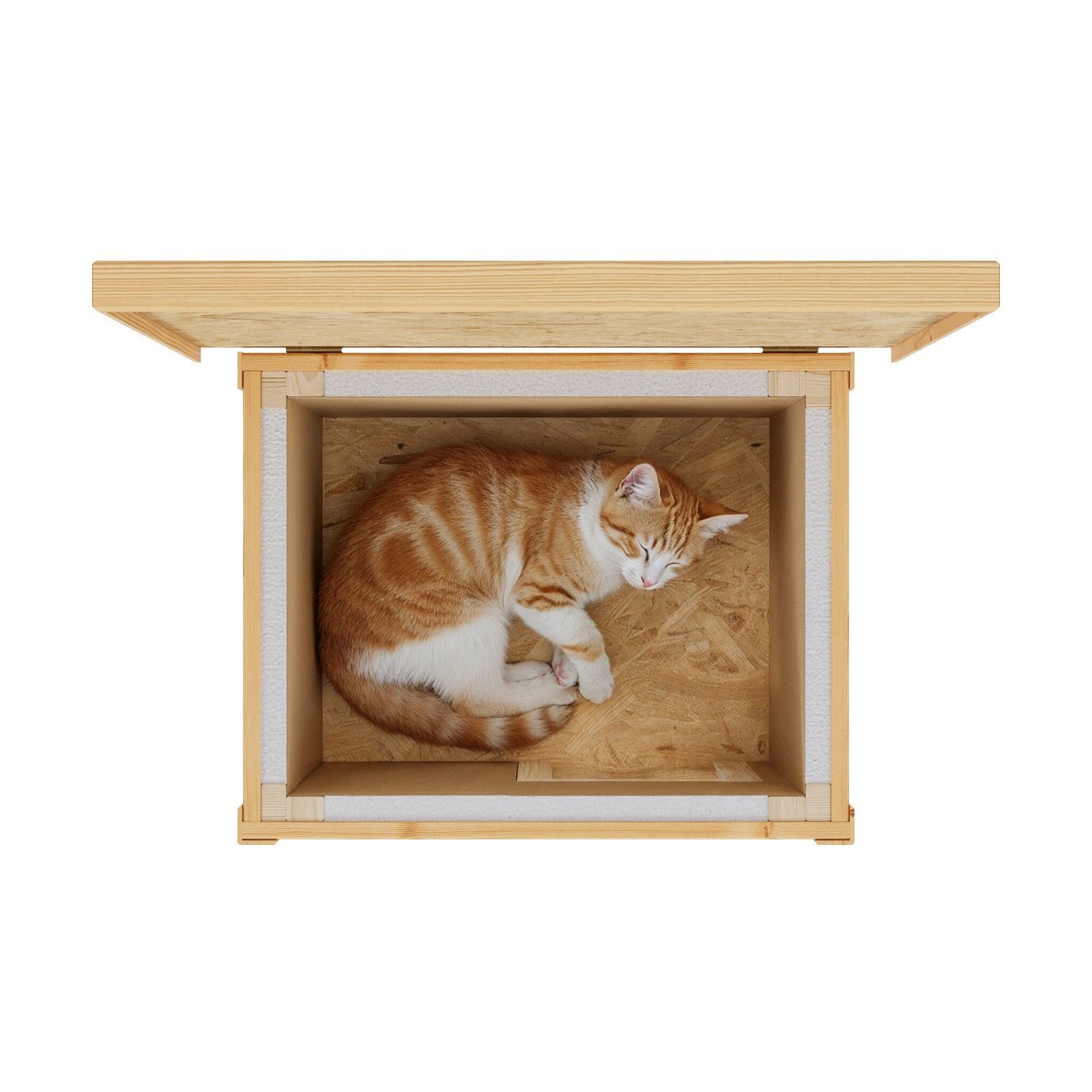 QLS QLS Katzenhaus Outdoor Holz 40x50x37cm klappbares Dach isoliert Styropor Eiche 11422