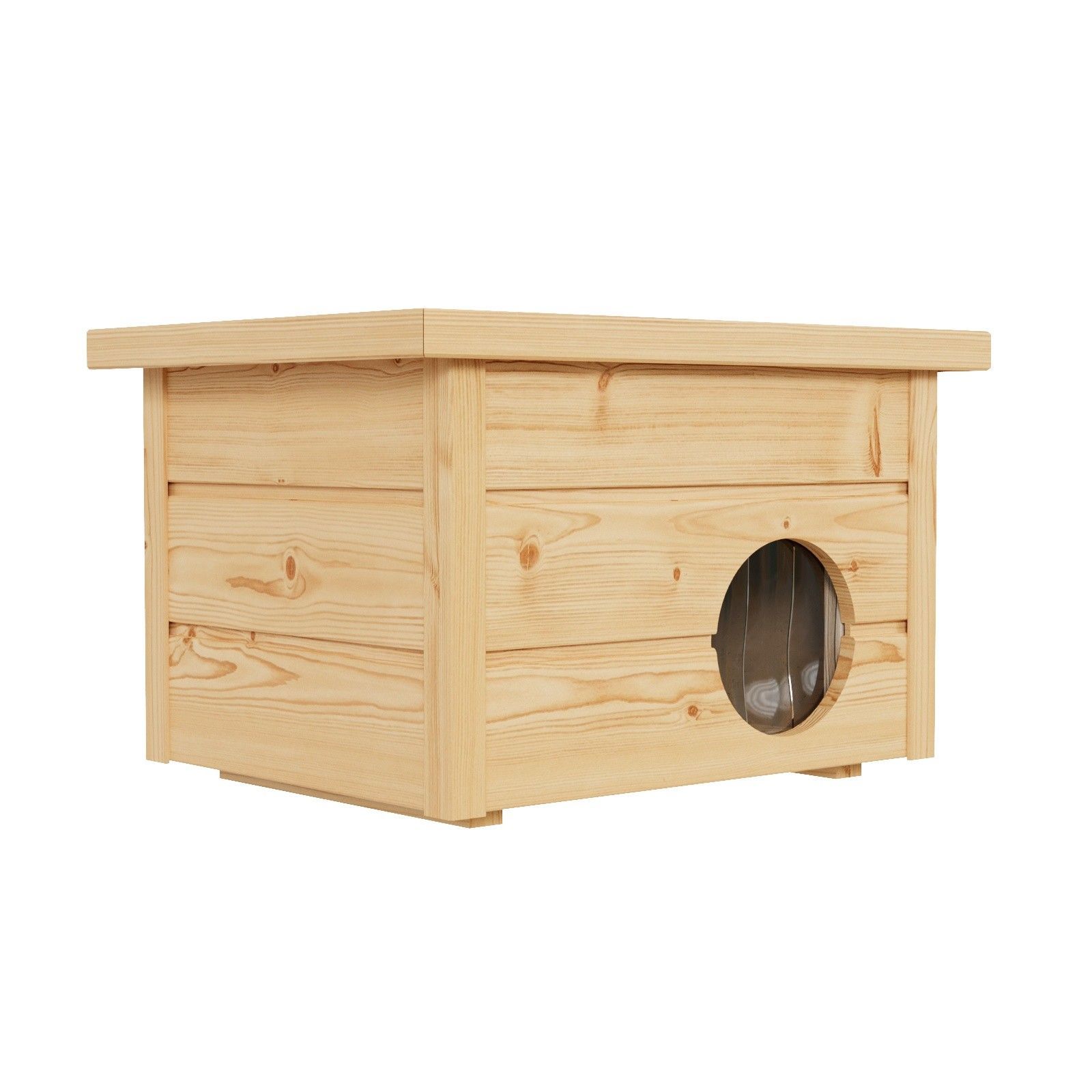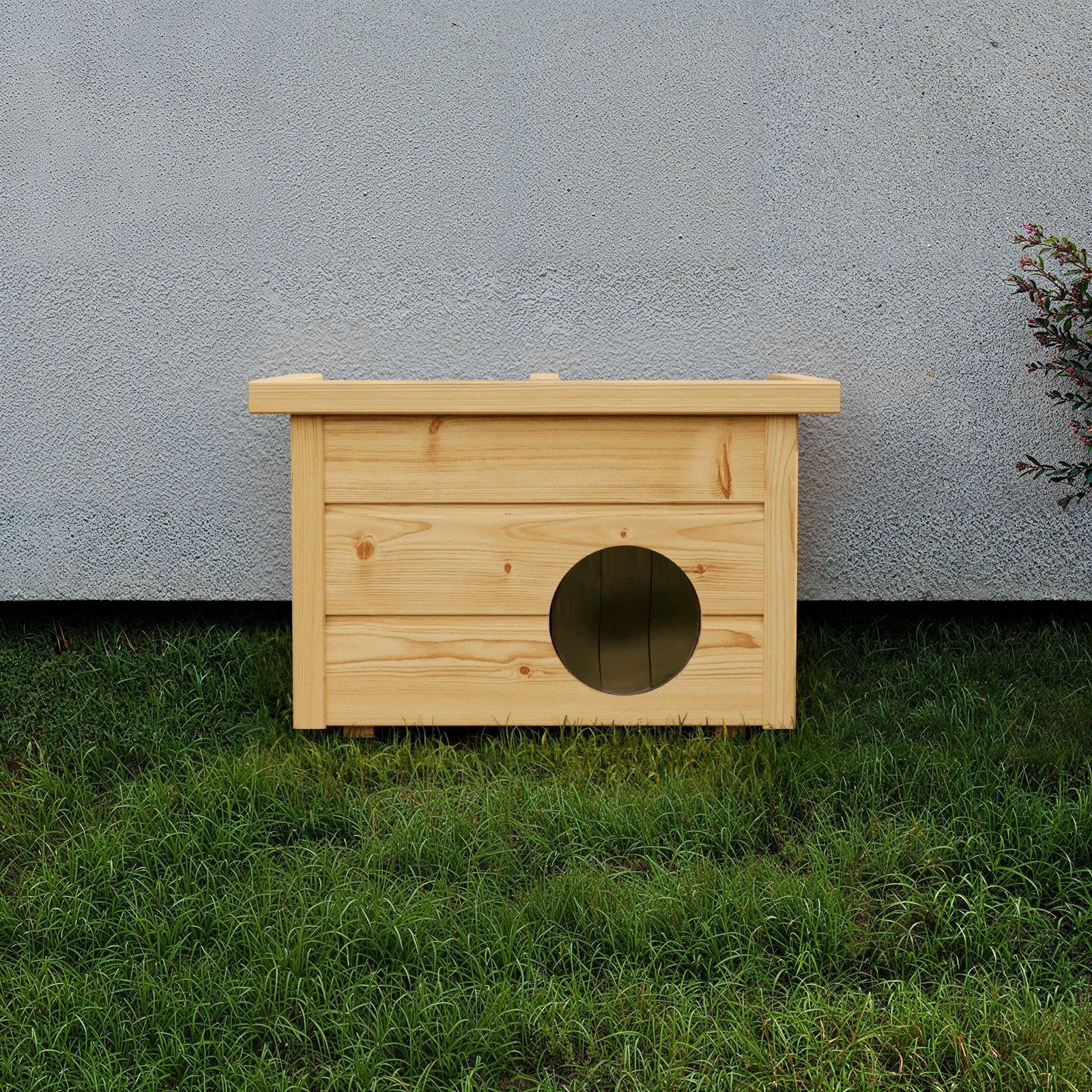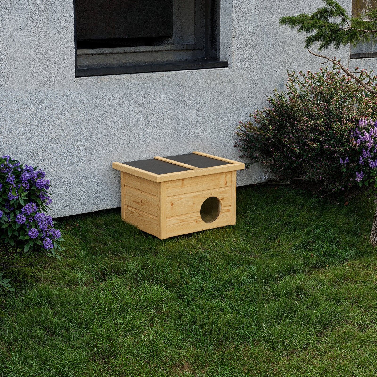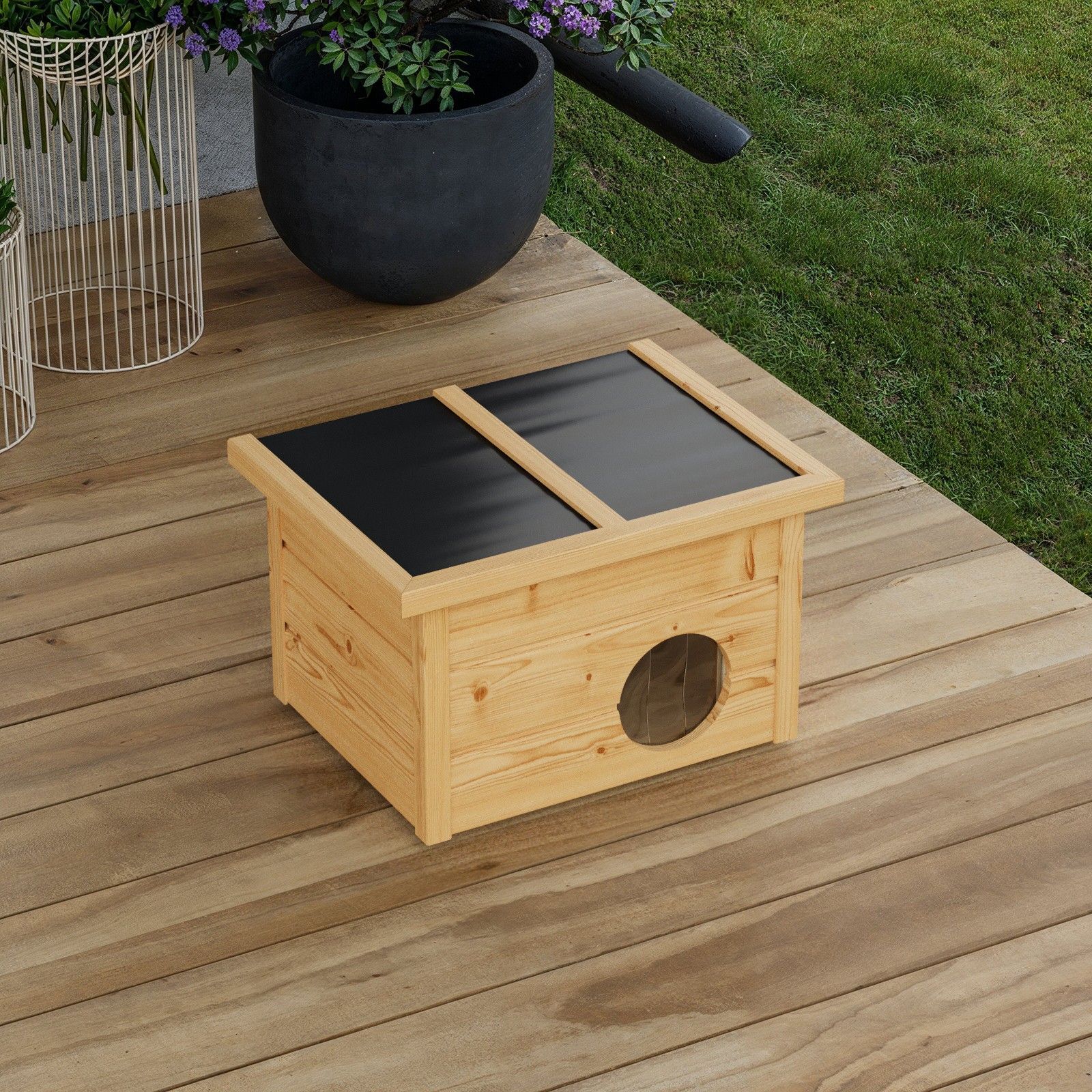 QLS QLS Katzenhaus Outdoor Holz 40x50x37cm klappbares Dach isoliert Styropor Eiche 11422