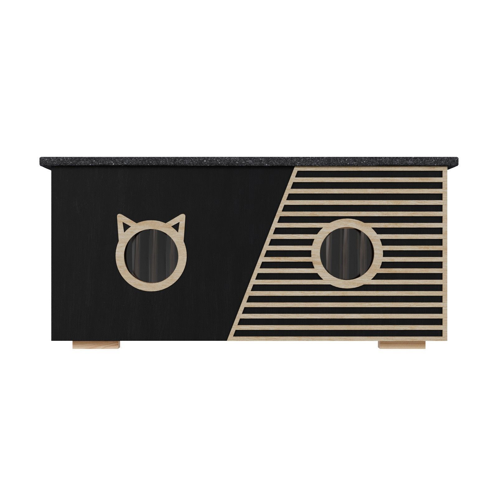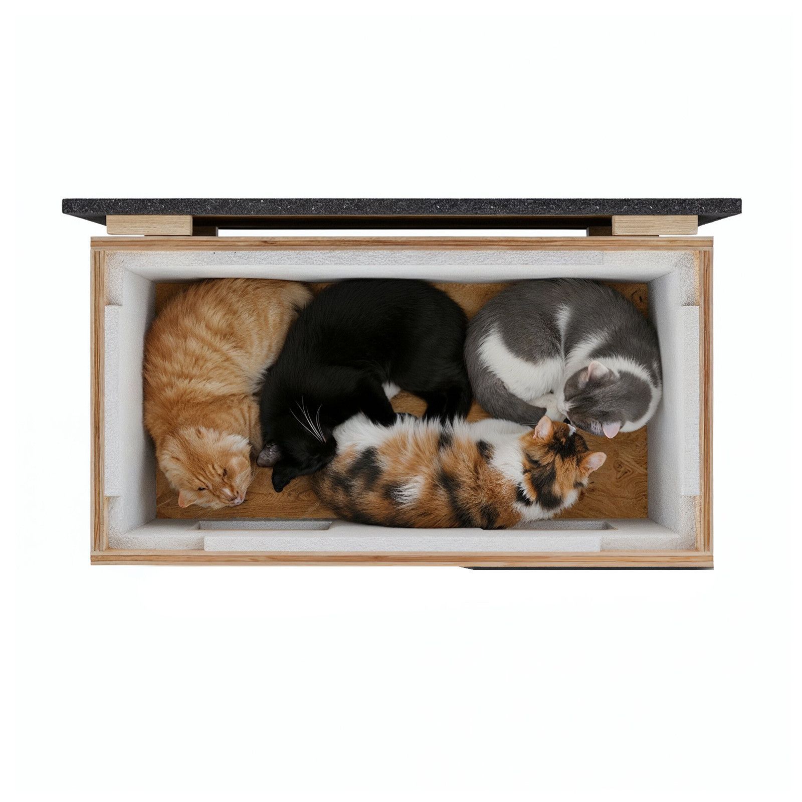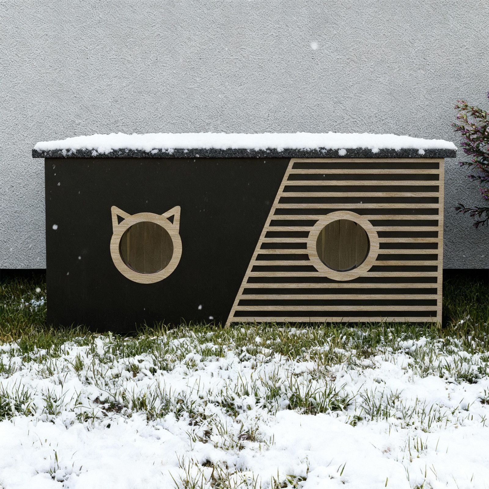 QLS QLS Katzenhaus Outdoor XXL 85x45x37,5cm isoliert wetterfest mit Vorhang Schwarz 11398