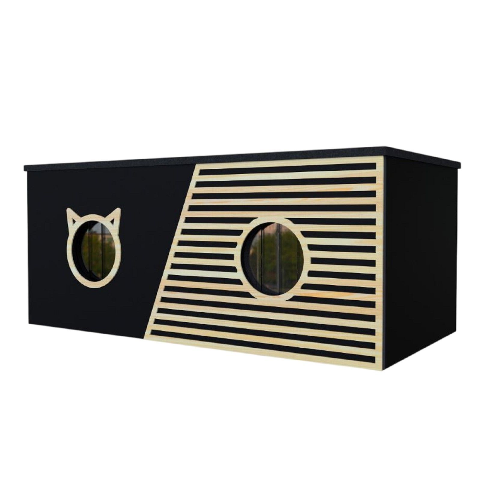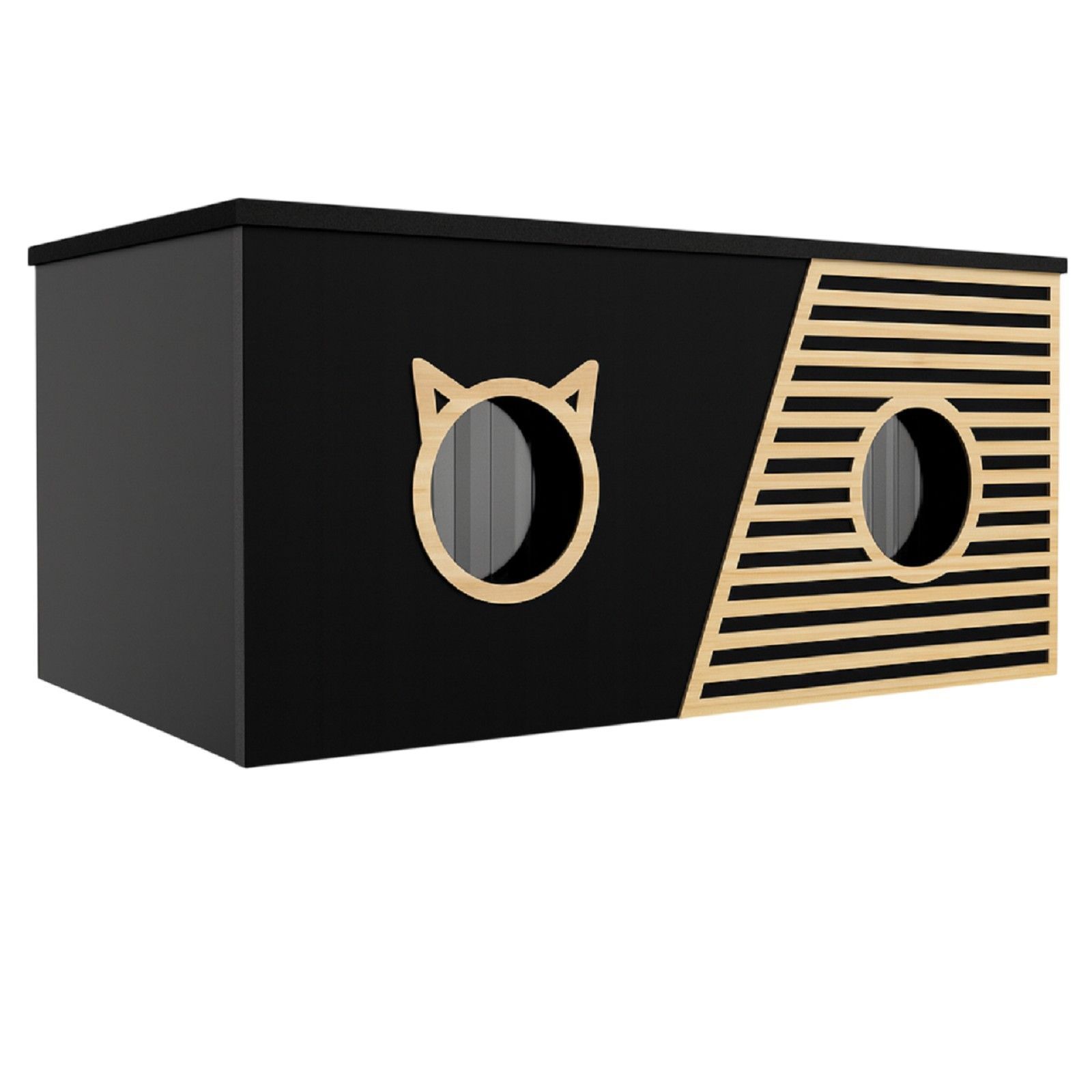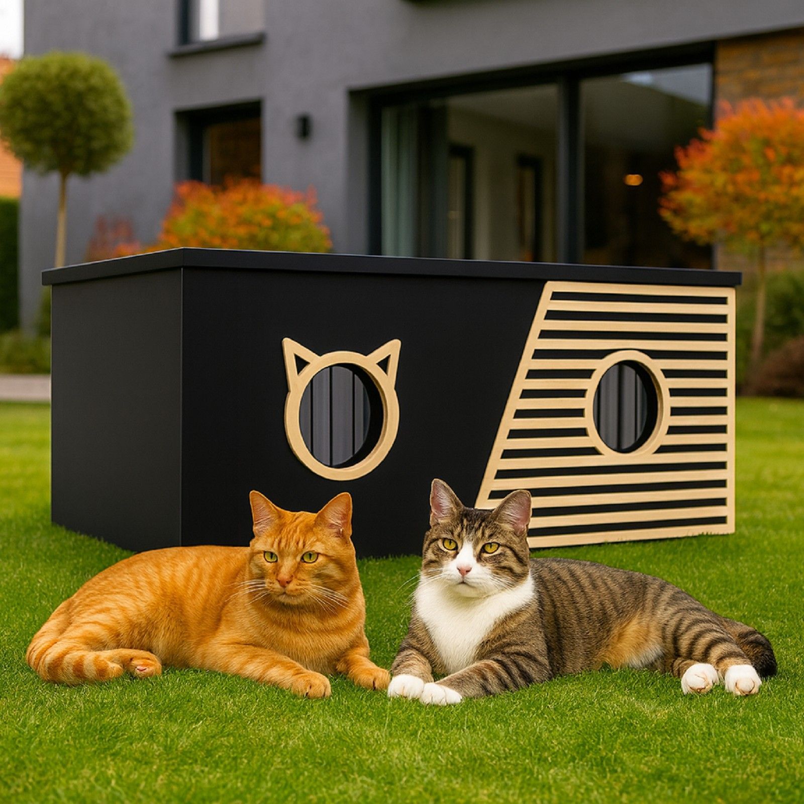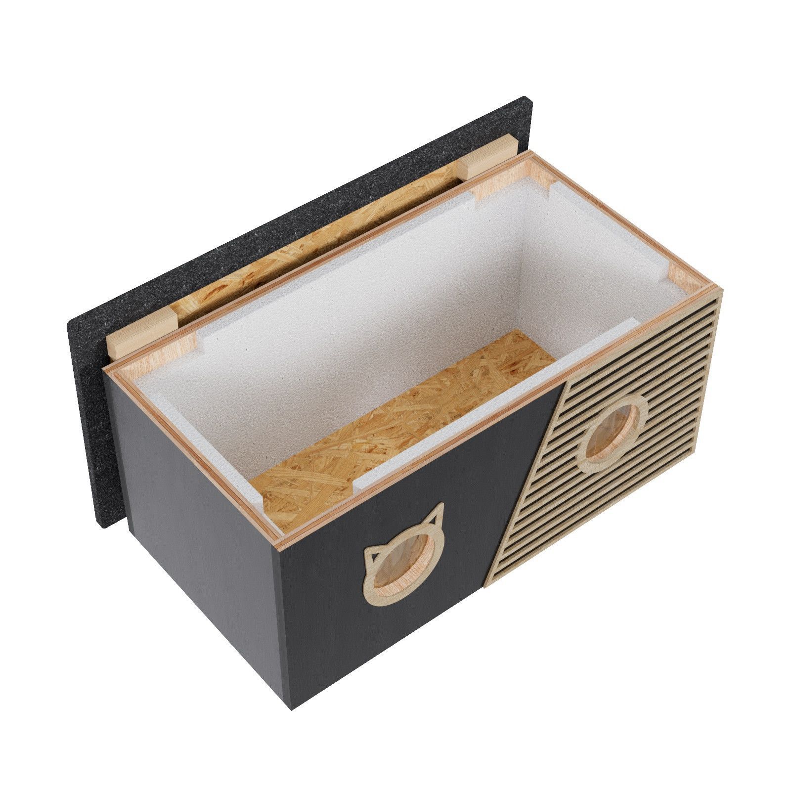 QLS QLS Katzenhaus Outdoor XXL 85x45x37,5cm isoliert wetterfest mit Vorhang Schwarz 11398