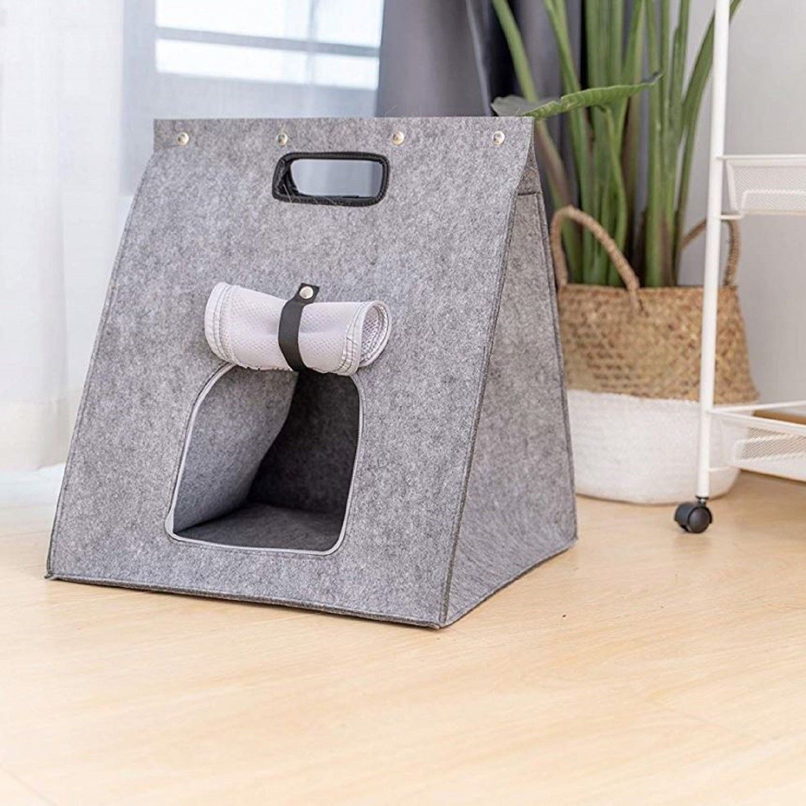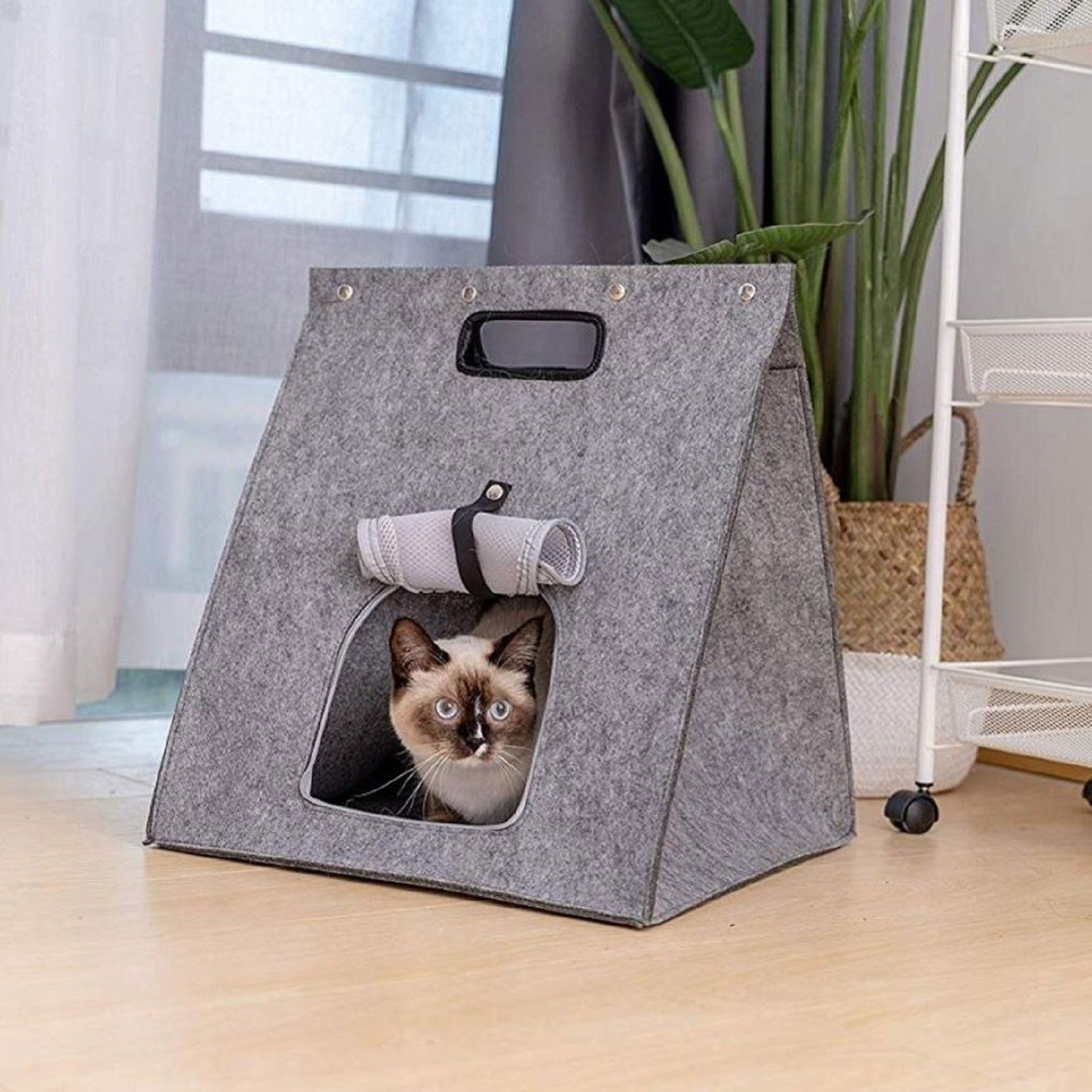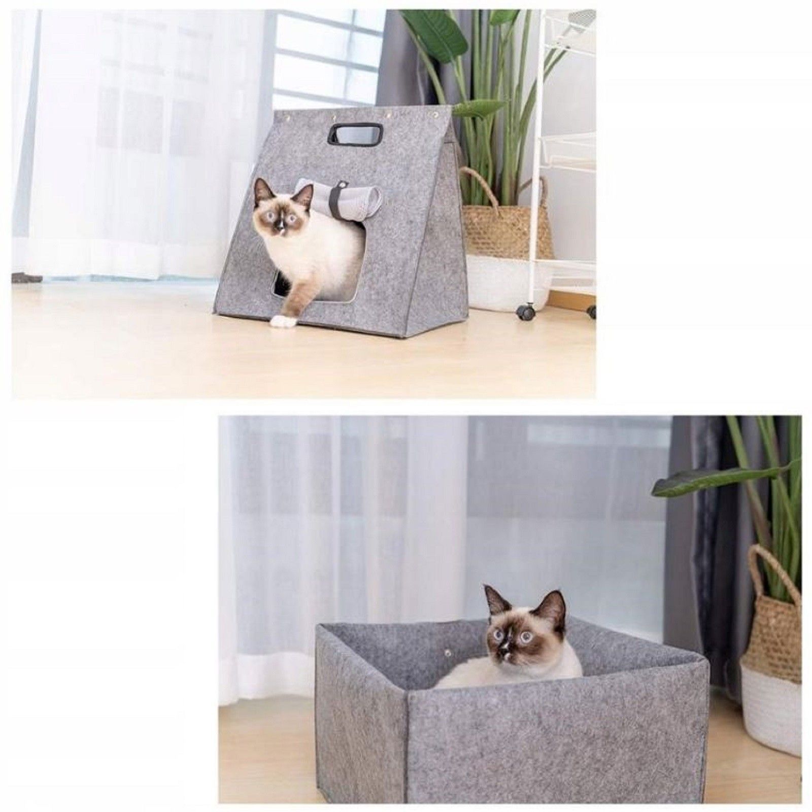 QLS QLS Katzenhöhle Bett Liege 41x40 cm aus robustem Filz Grau Pflegeleicht Indoor 11149
