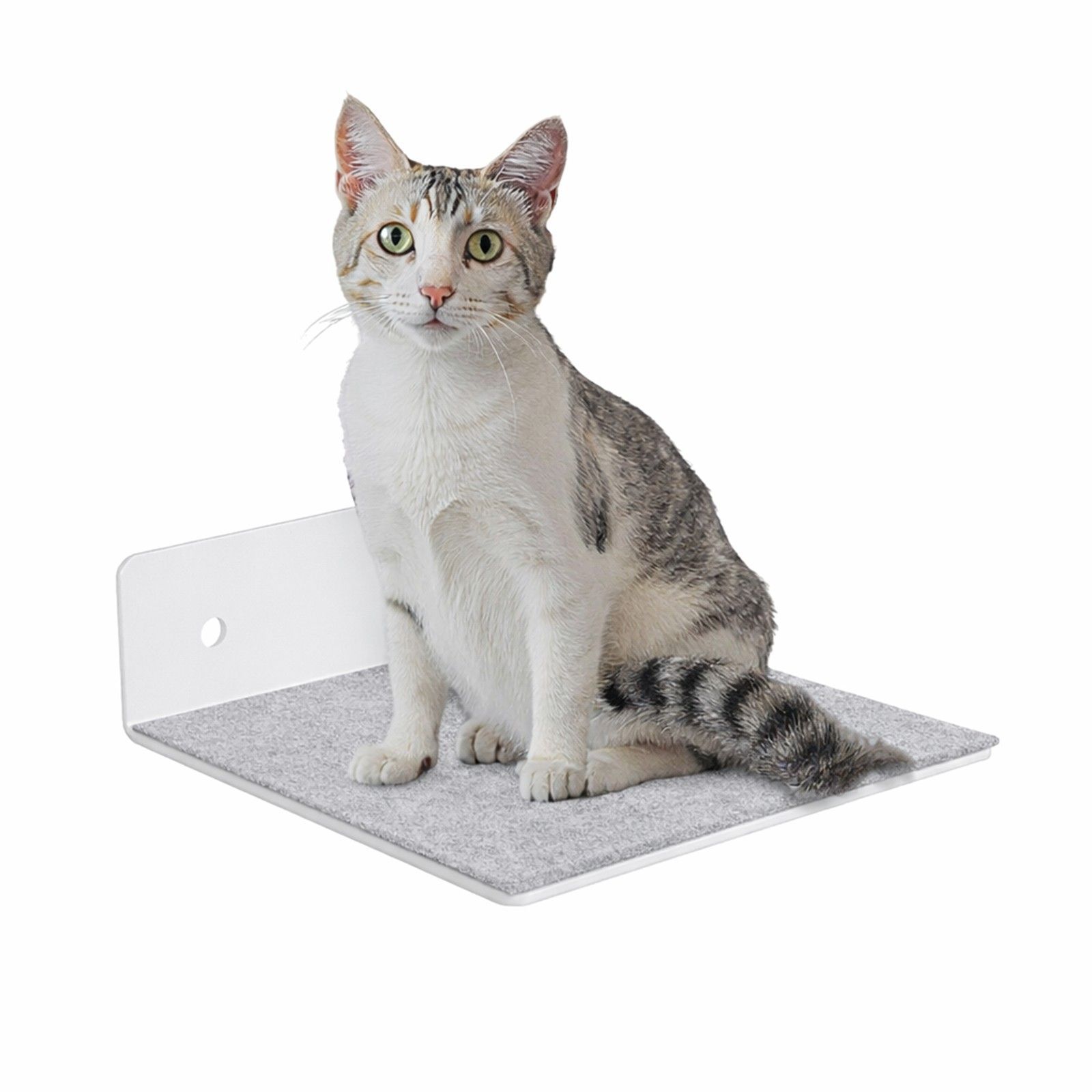 QLS QLS Katzenregal 20x20 cm Wandregal Katze Kletterwand Weiß mit Filz 11446