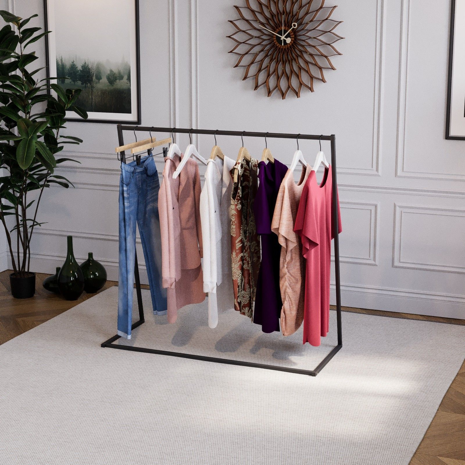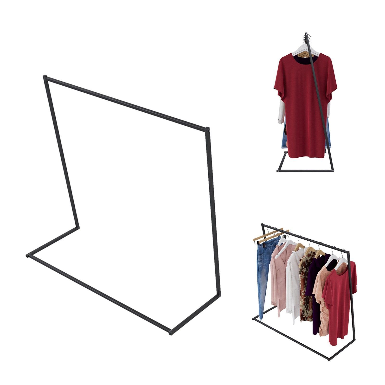 QLS QLS Kleiderständer aus Stahl 124 x 126 cm Stabil Freistehend Schwarz 11104