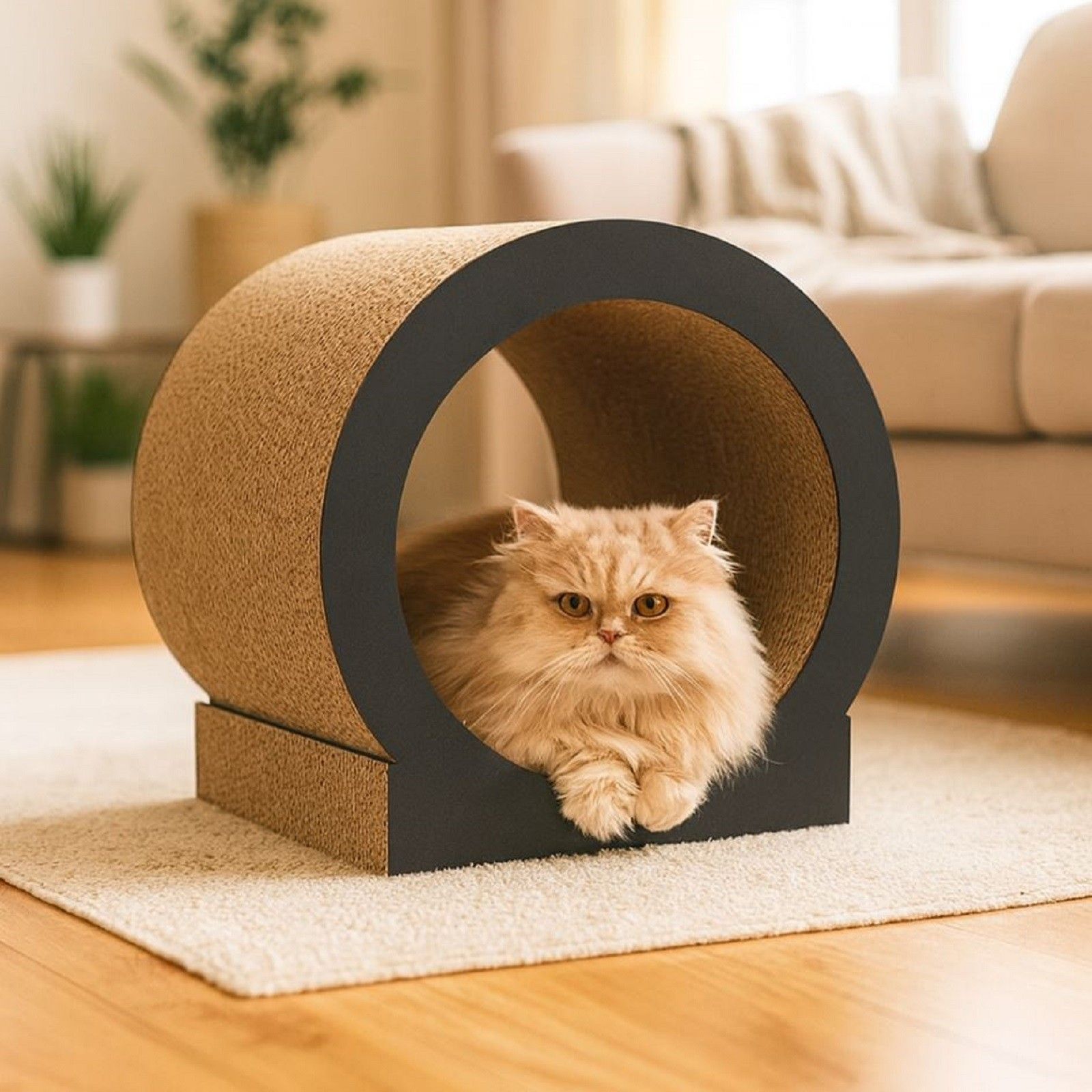QLS QLS Kratzbrett 3in1 für Katzen Wellpappe 39×38×39 cm Graphit Liege Höhle 11385