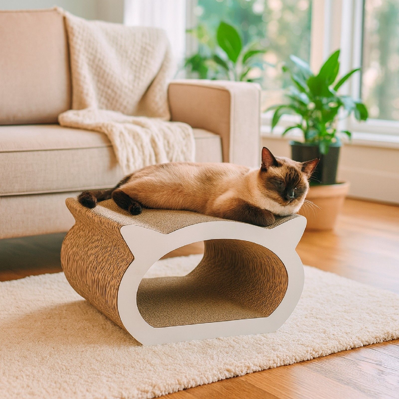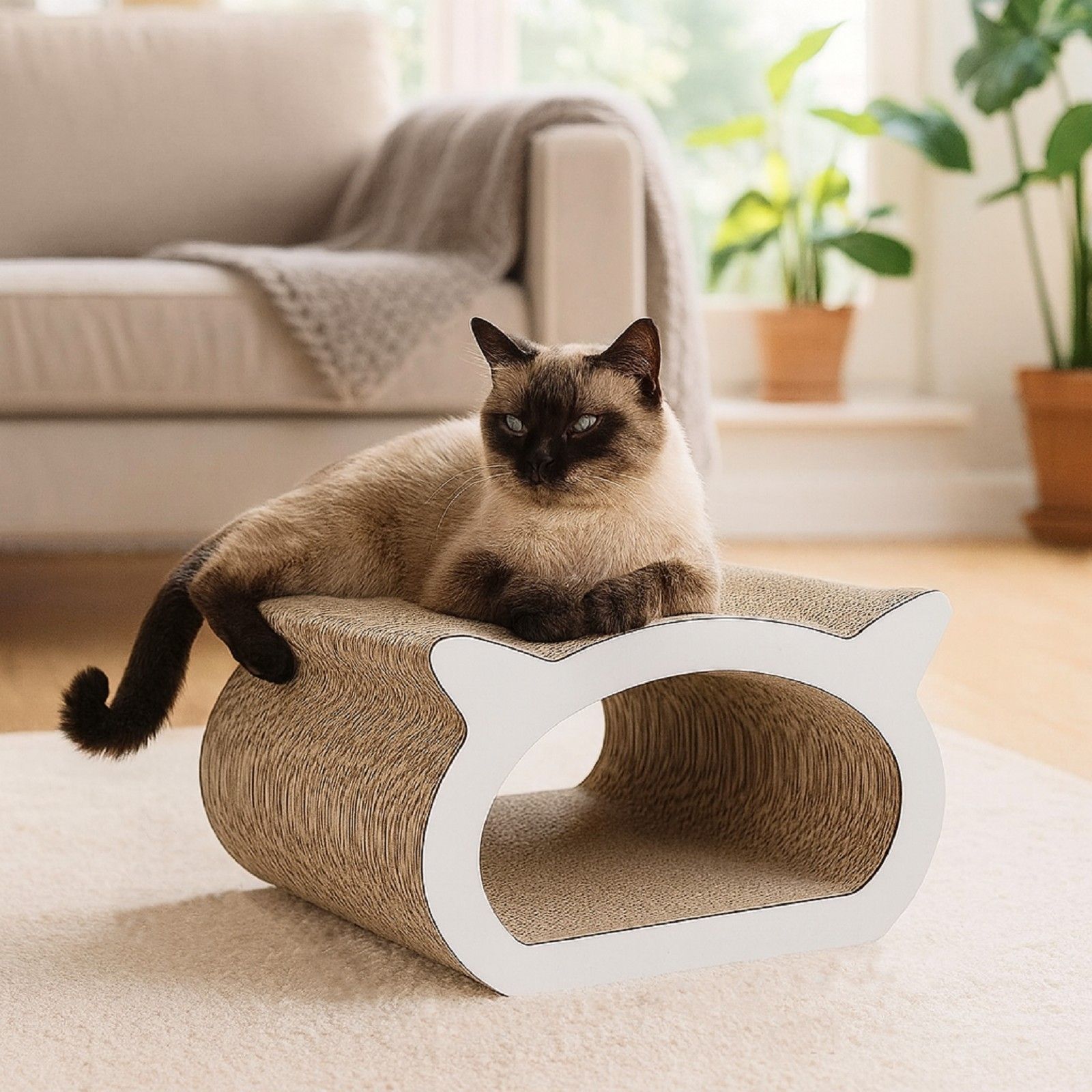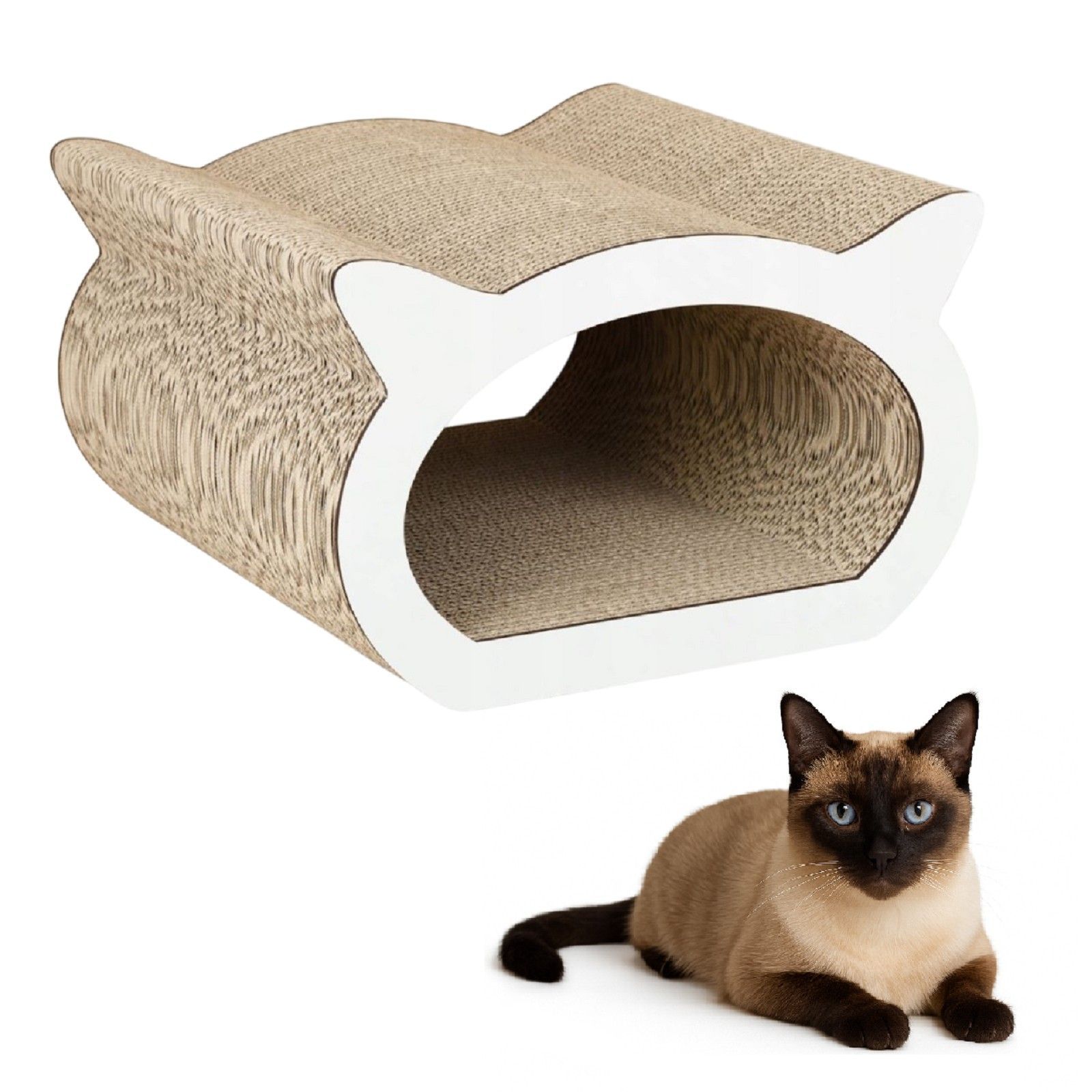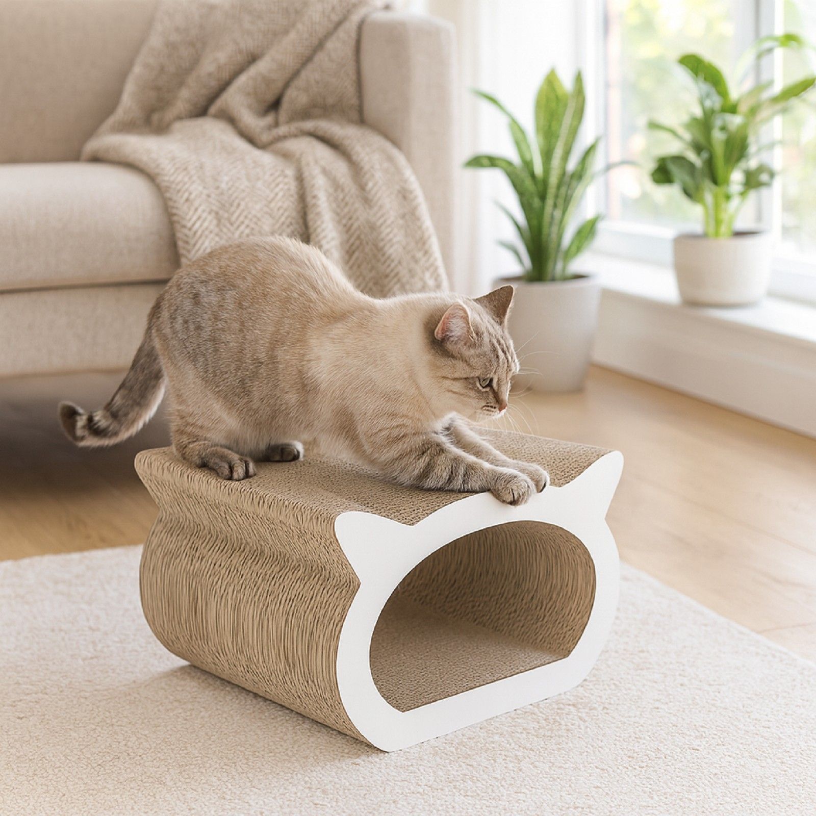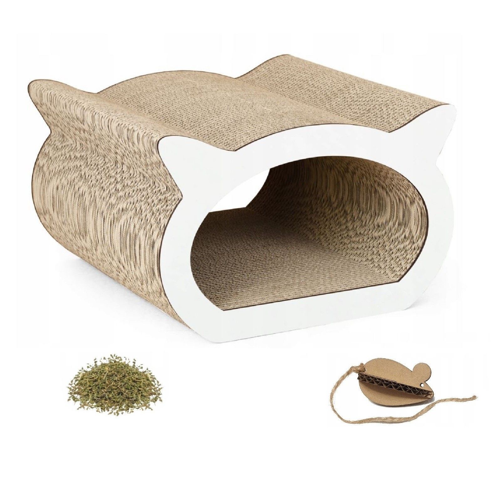 QLS QLS Kratzmöbel 3in1 für Katzen Wellpappe 37×36×23cm Weiß Kratzbrett Liege Höhle 11371
