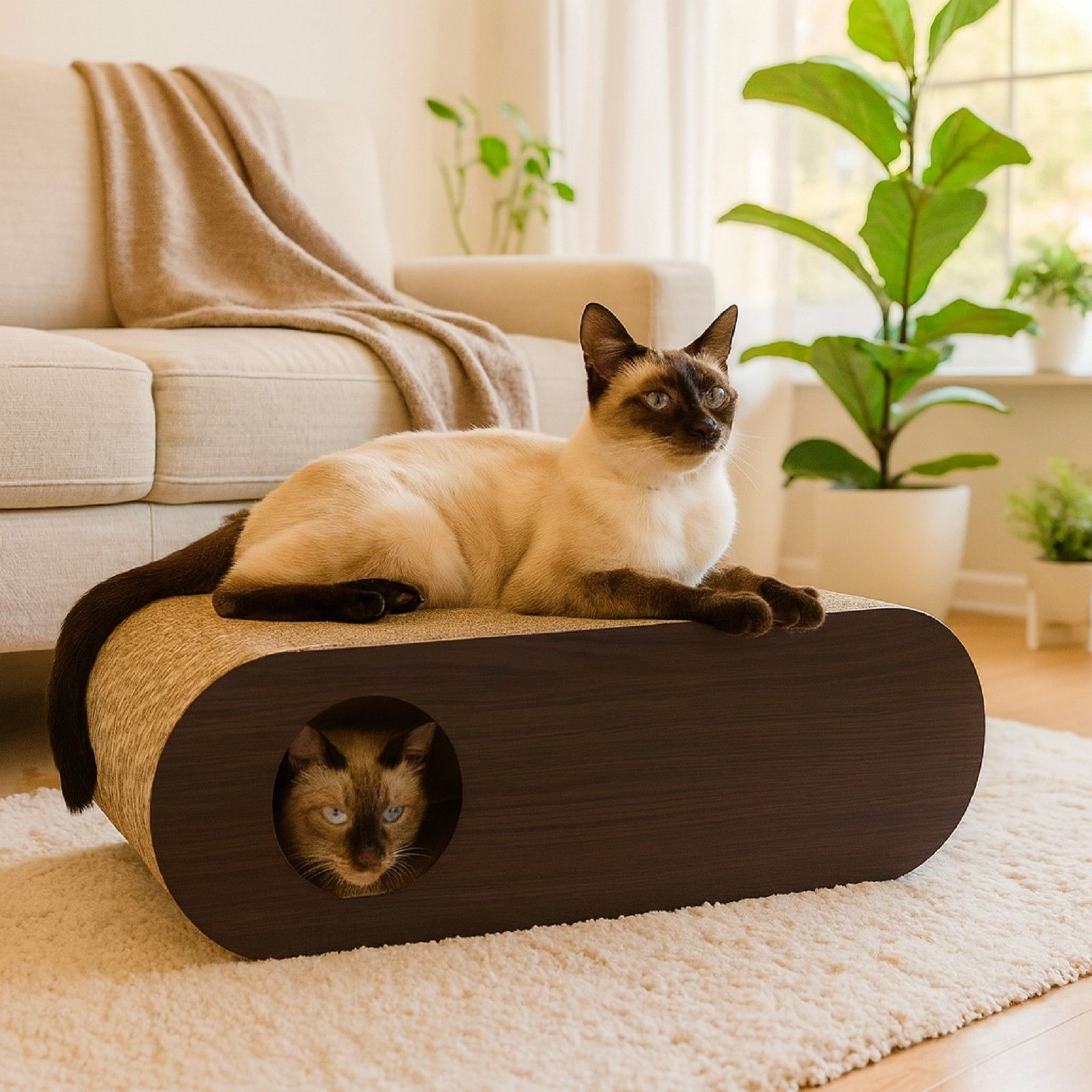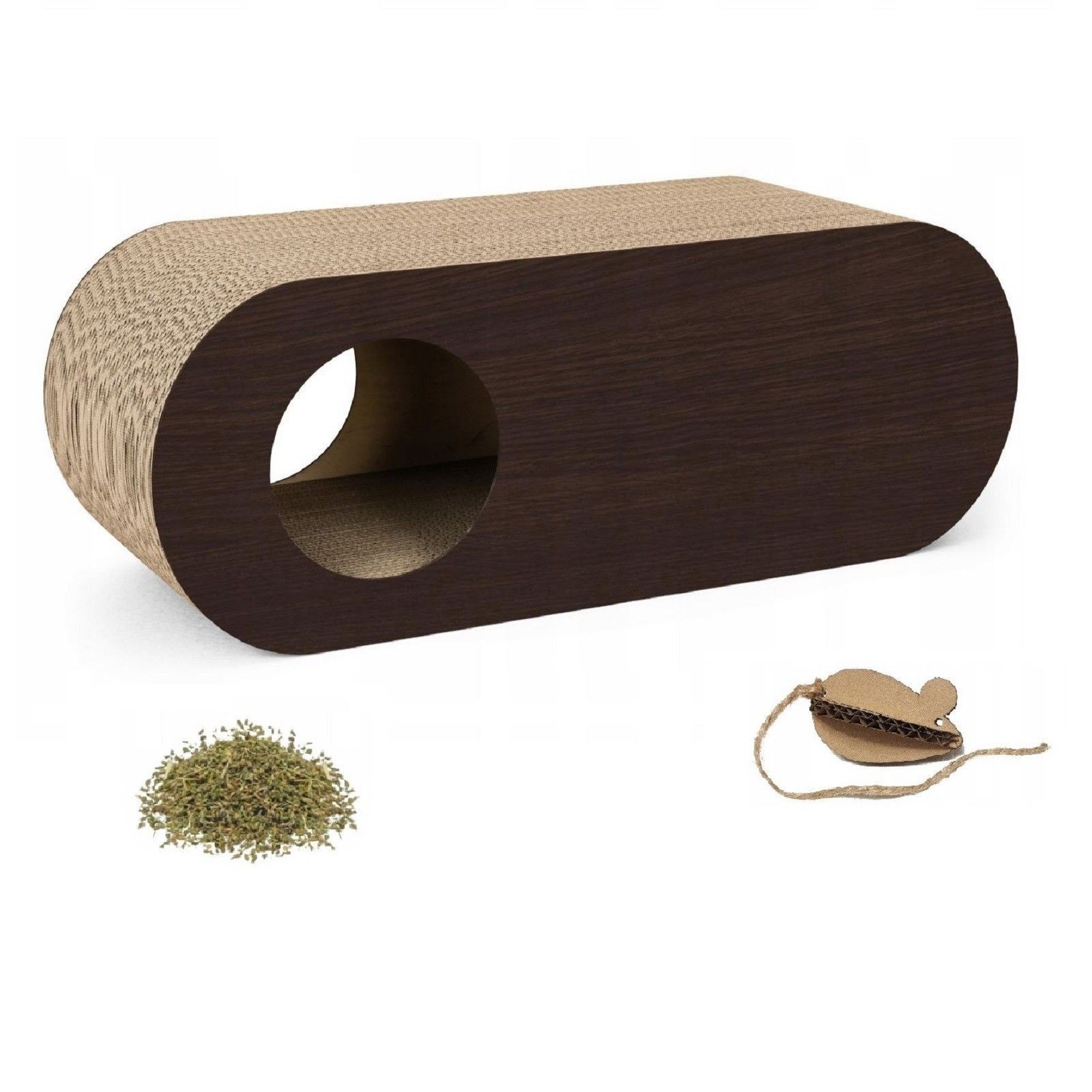 QLS QLS Kratzmöbel 3in1 für Katzen Wellpappe 75×27×29 cm Braun Kratzbrett Höhle 11369