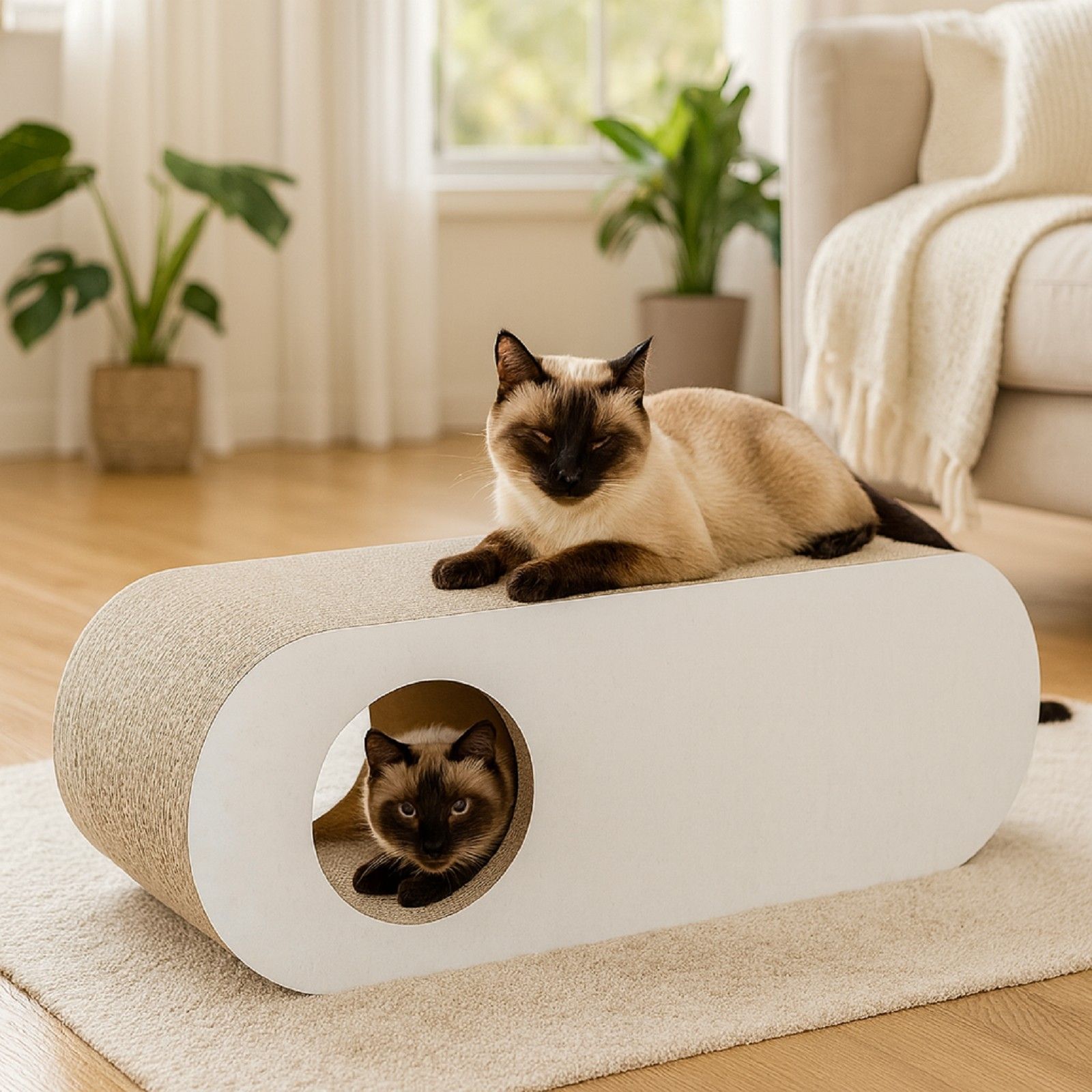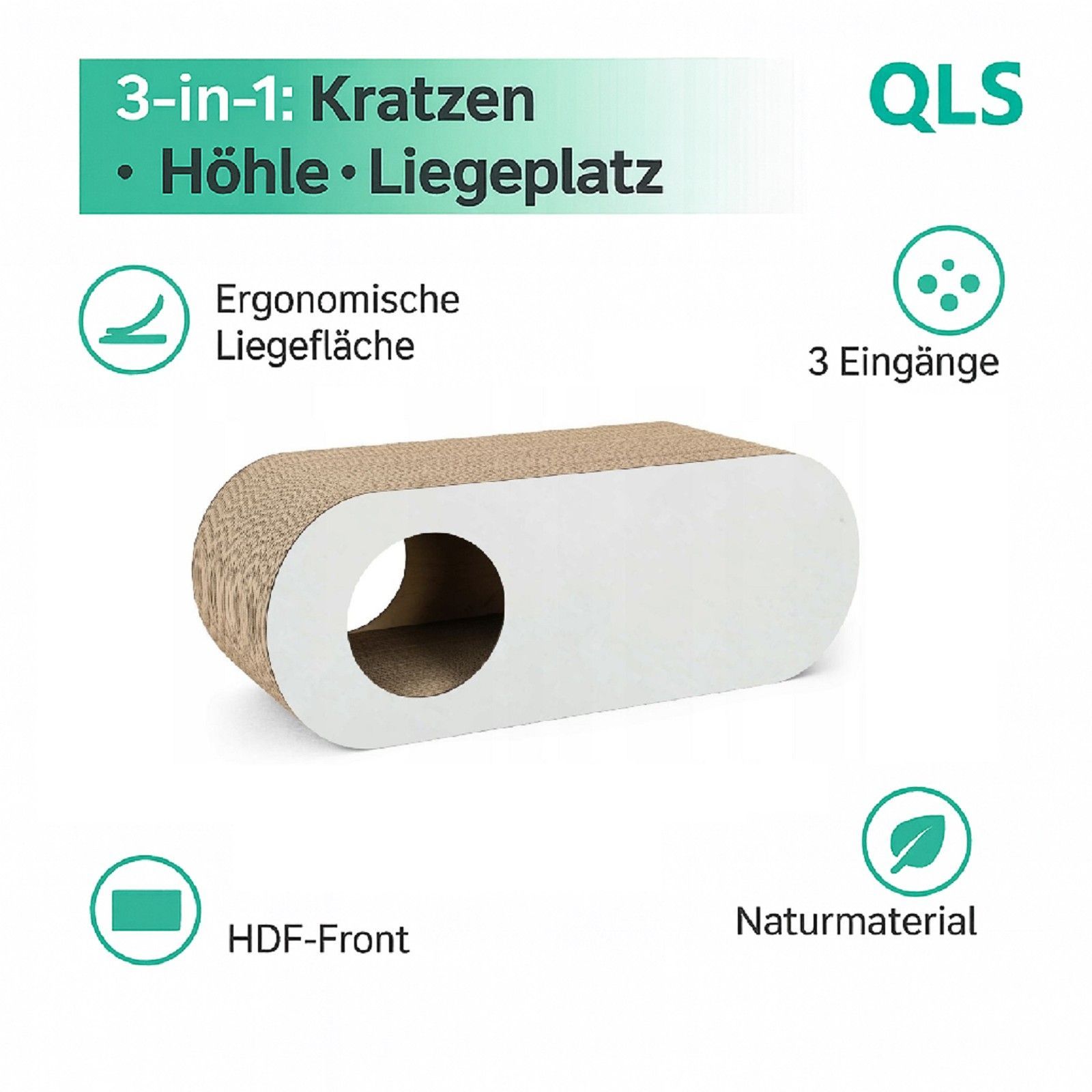 QLS QLS Kratzmöbel 3in1 für Katzen Wellpappe 75×27×29 cm Grau Kratzbrett Höhle 11370