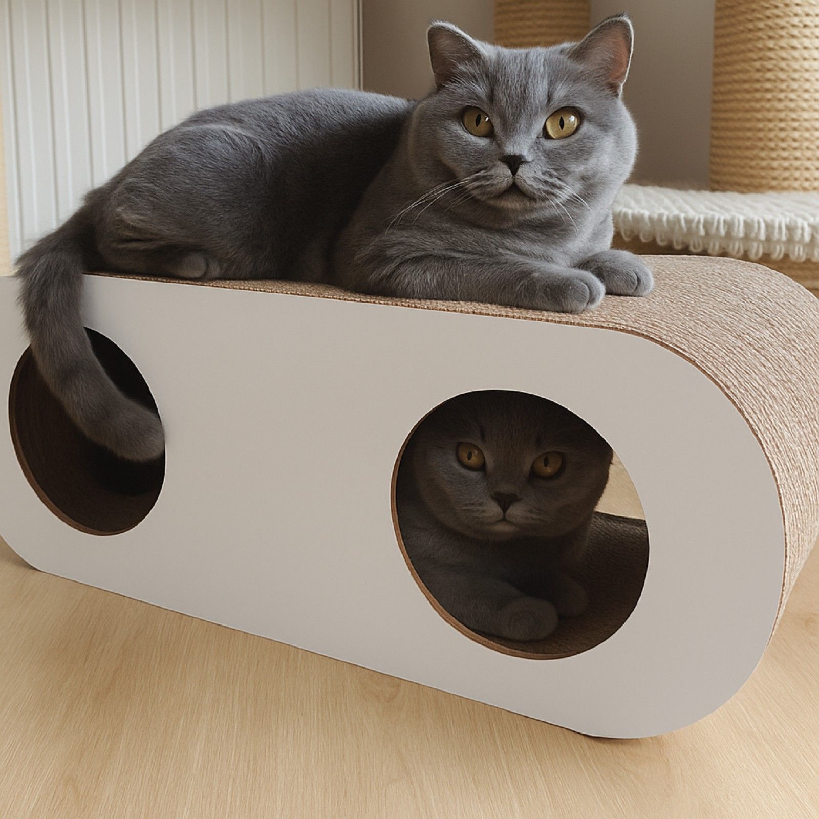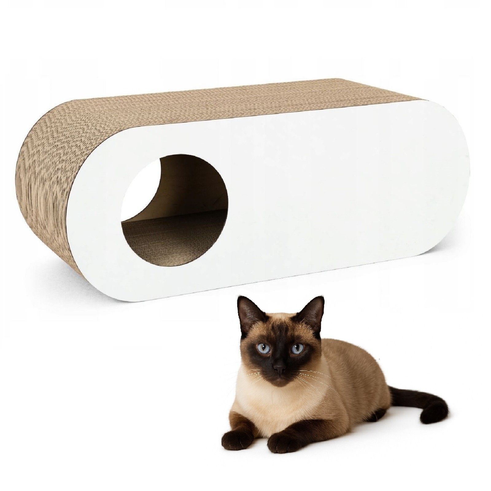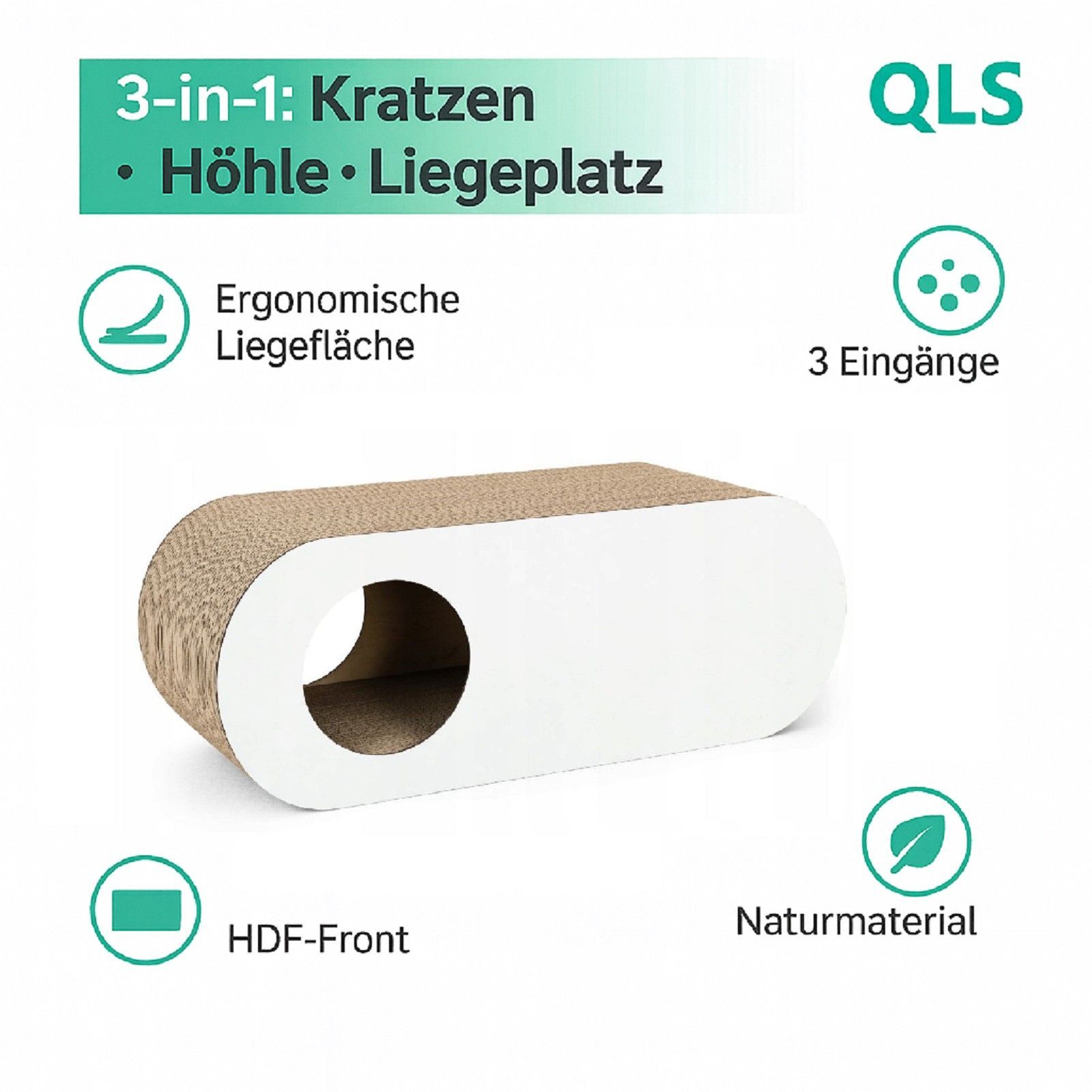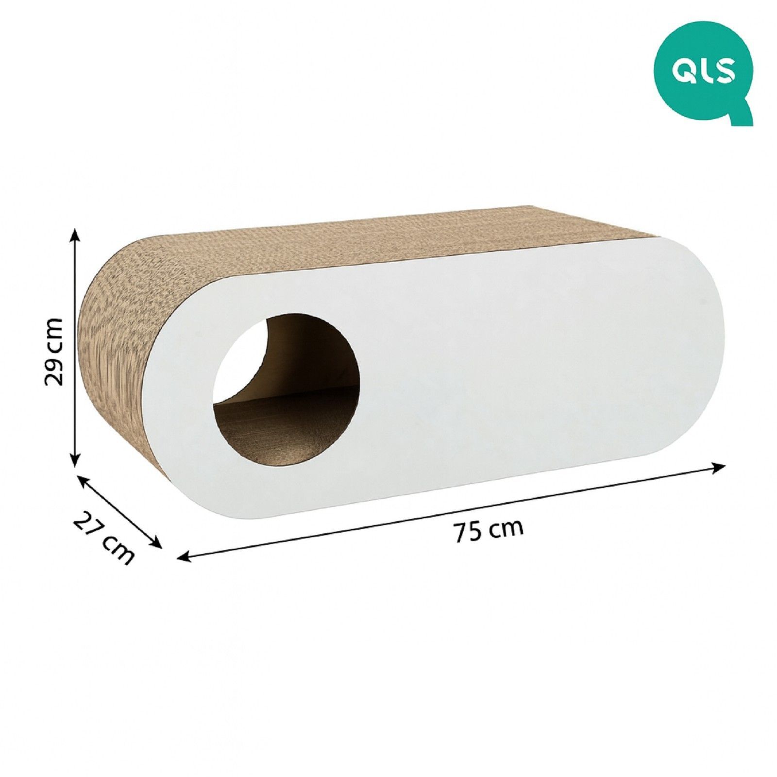 QLS QLS Kratzmöbel 3in1 für Katzen Wellpappe 75×27×29 cm Weiß Kratzbrett Höhle 11365