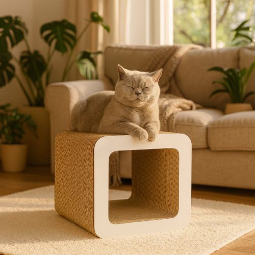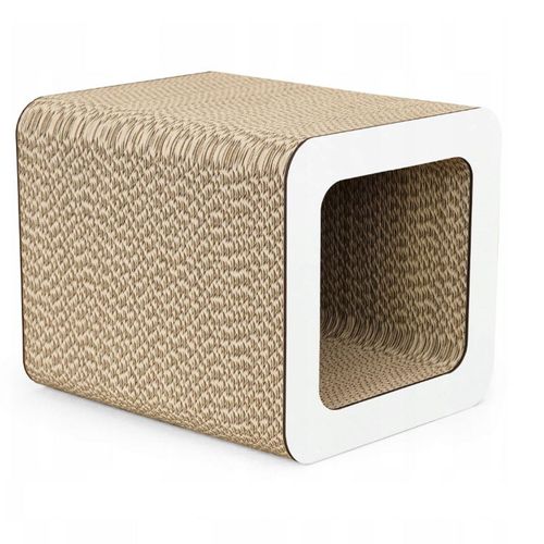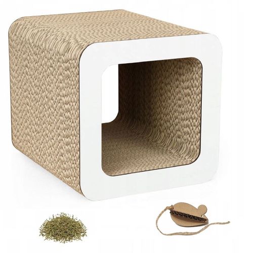 QLS QLS Kratzmöbel 3in1 Katzen Wellpappe 37×30×30 cm Kratzbrett Liege Höhle Weiß 11382