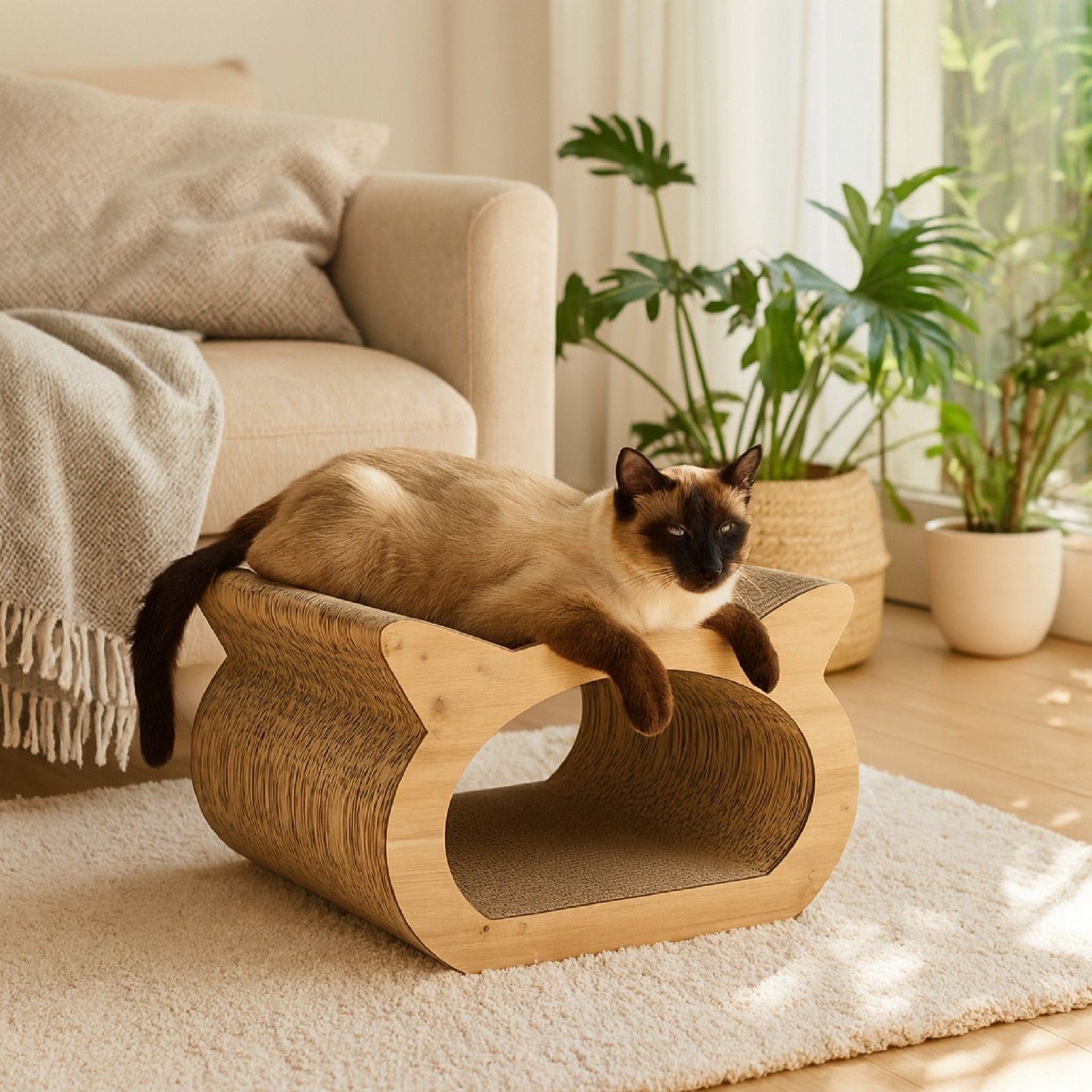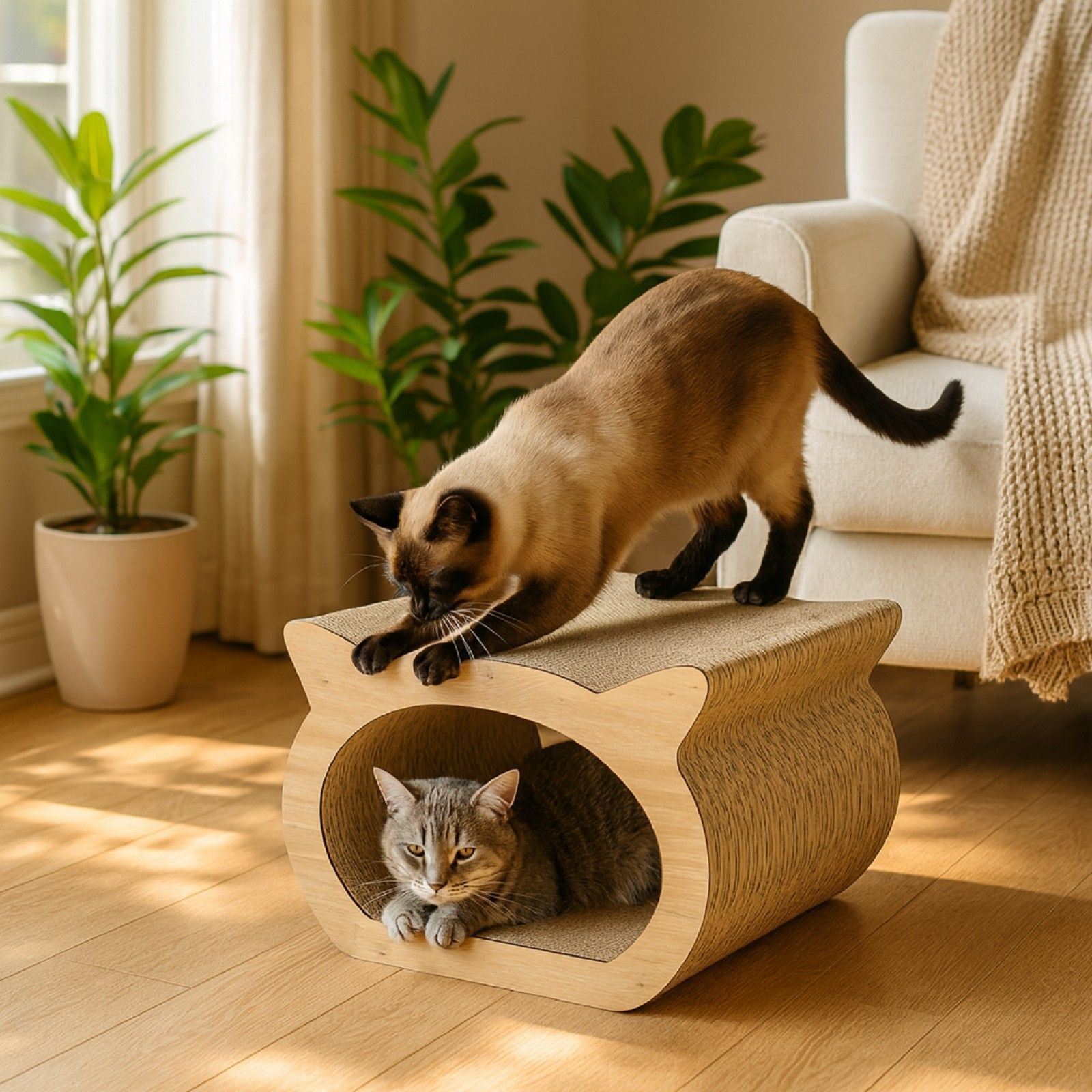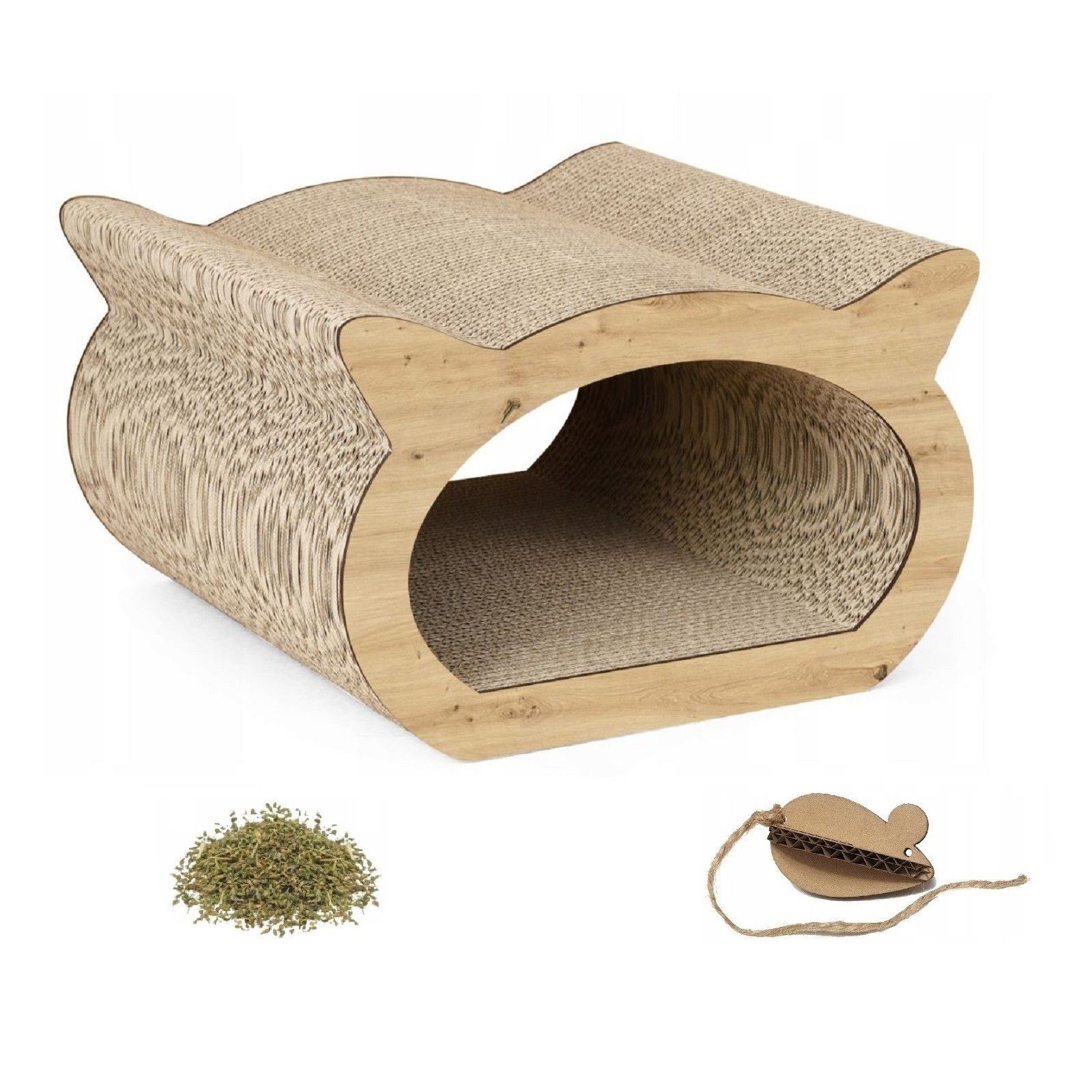 QLS QLS Kratzmöbel 3in1 Katzen Wellpappe 37×36×23cm Eiche Kratzbrett Liege Höhle 11372