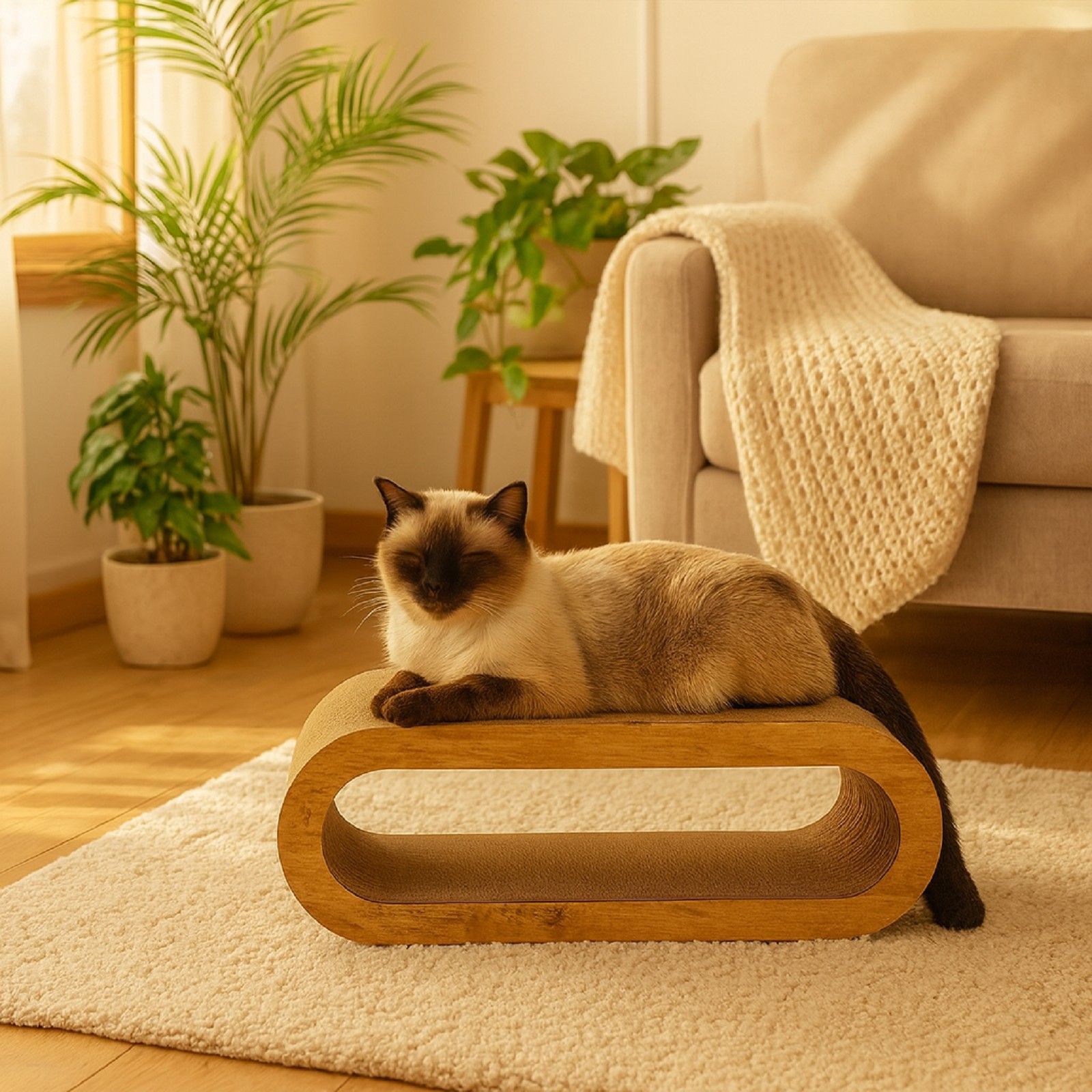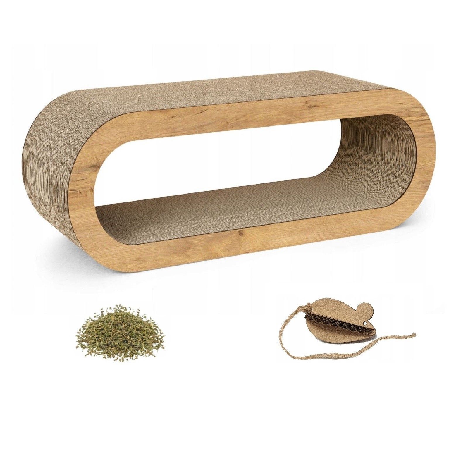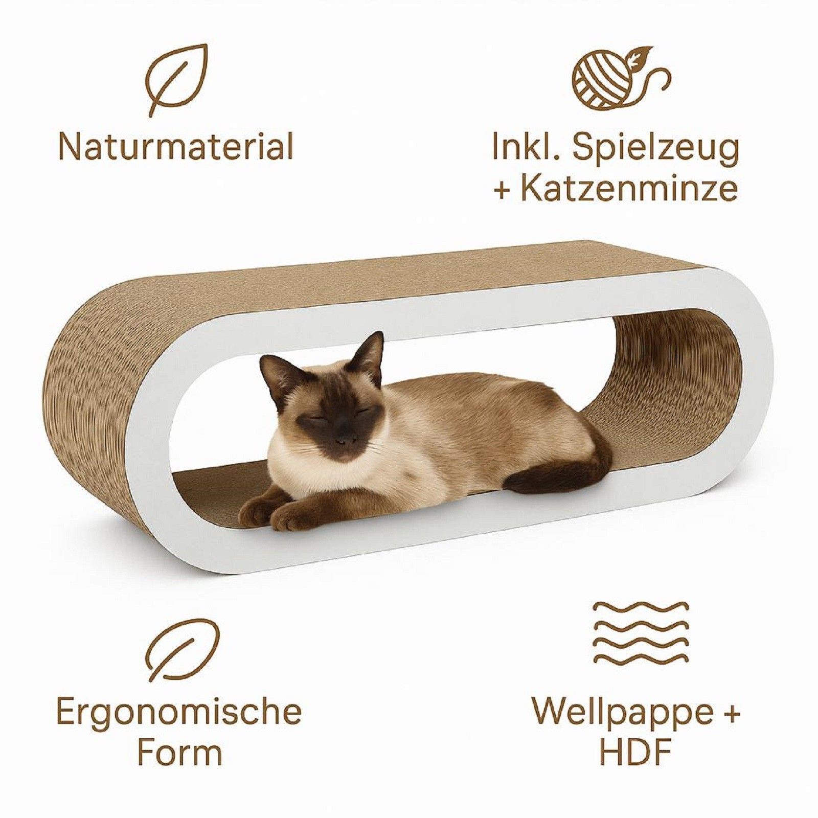 QLS QLS Kratzmöbel 3in1 Katzen Wellpappe 75×27×29 cm Eiche Kratzbrett Liege Höhle 11376