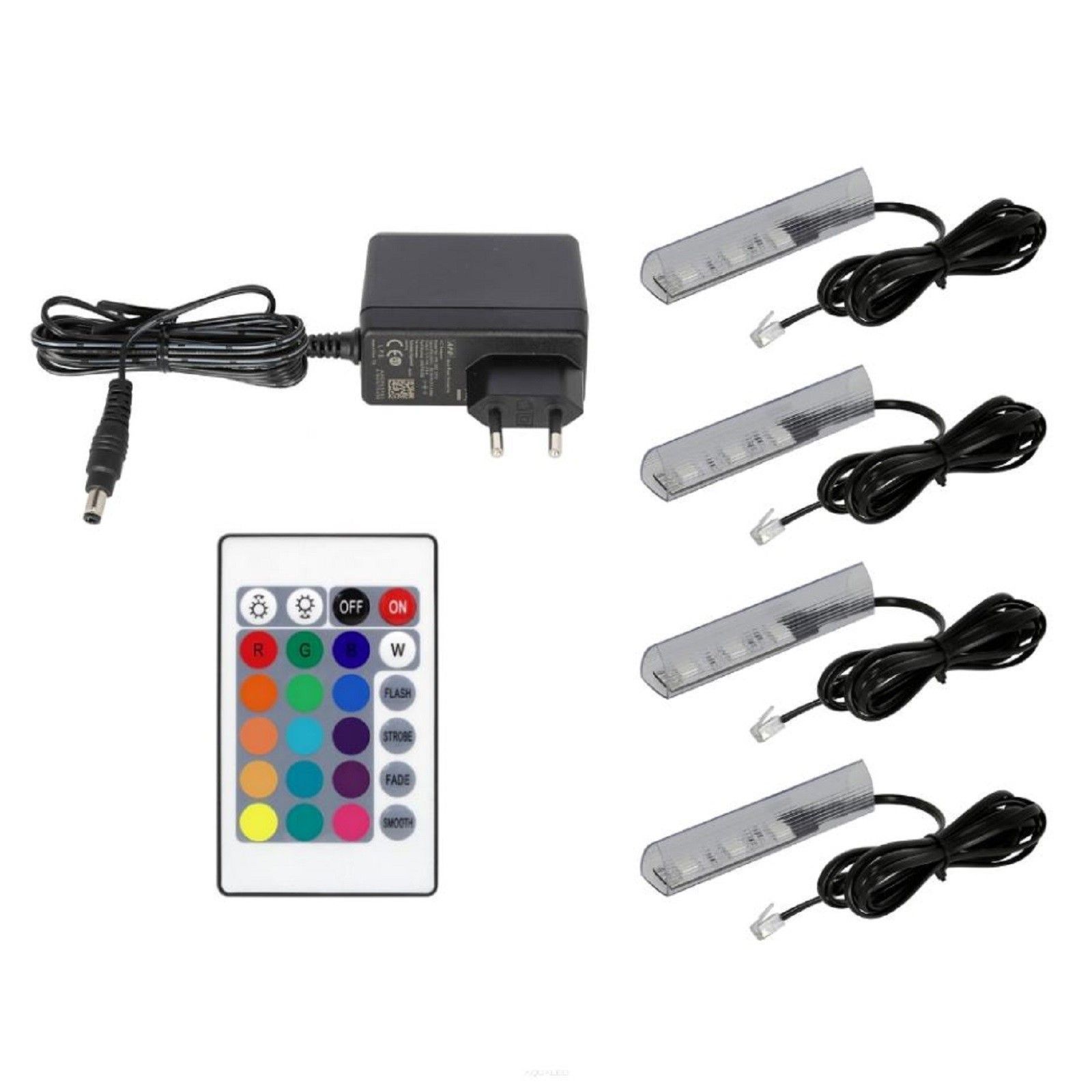 QLS QLS LED RGB 4er Set Glaskantenbeleuchtung Clip 12V mit Fernbedienung 16 Farben 11027