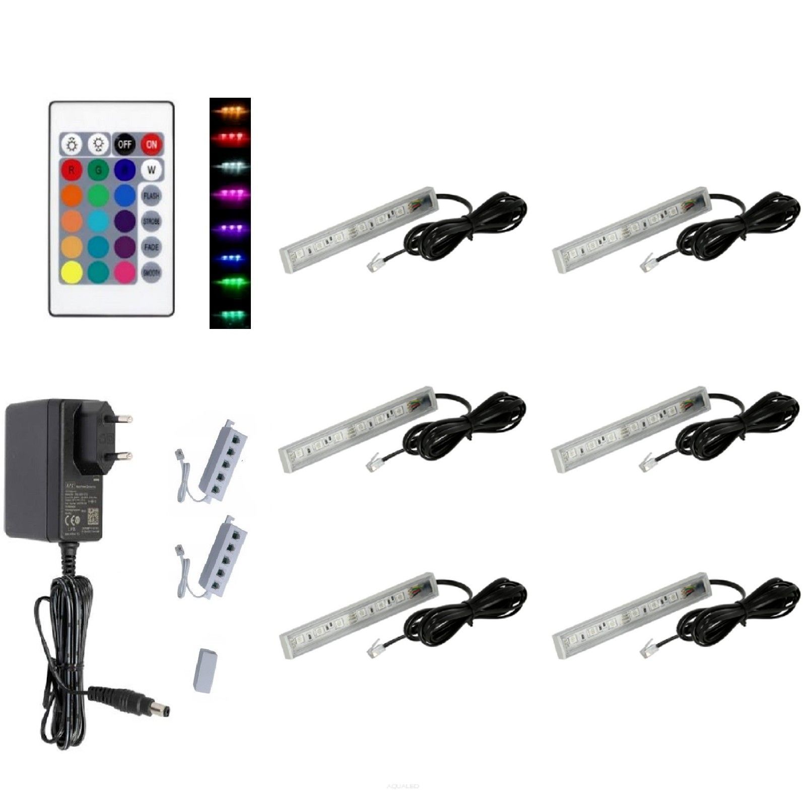 QLS QLS LED RGB 6 Set Glasbodenbeleuchtung Lichtleiste 12V Fernbedienung 16 Farben 11137
