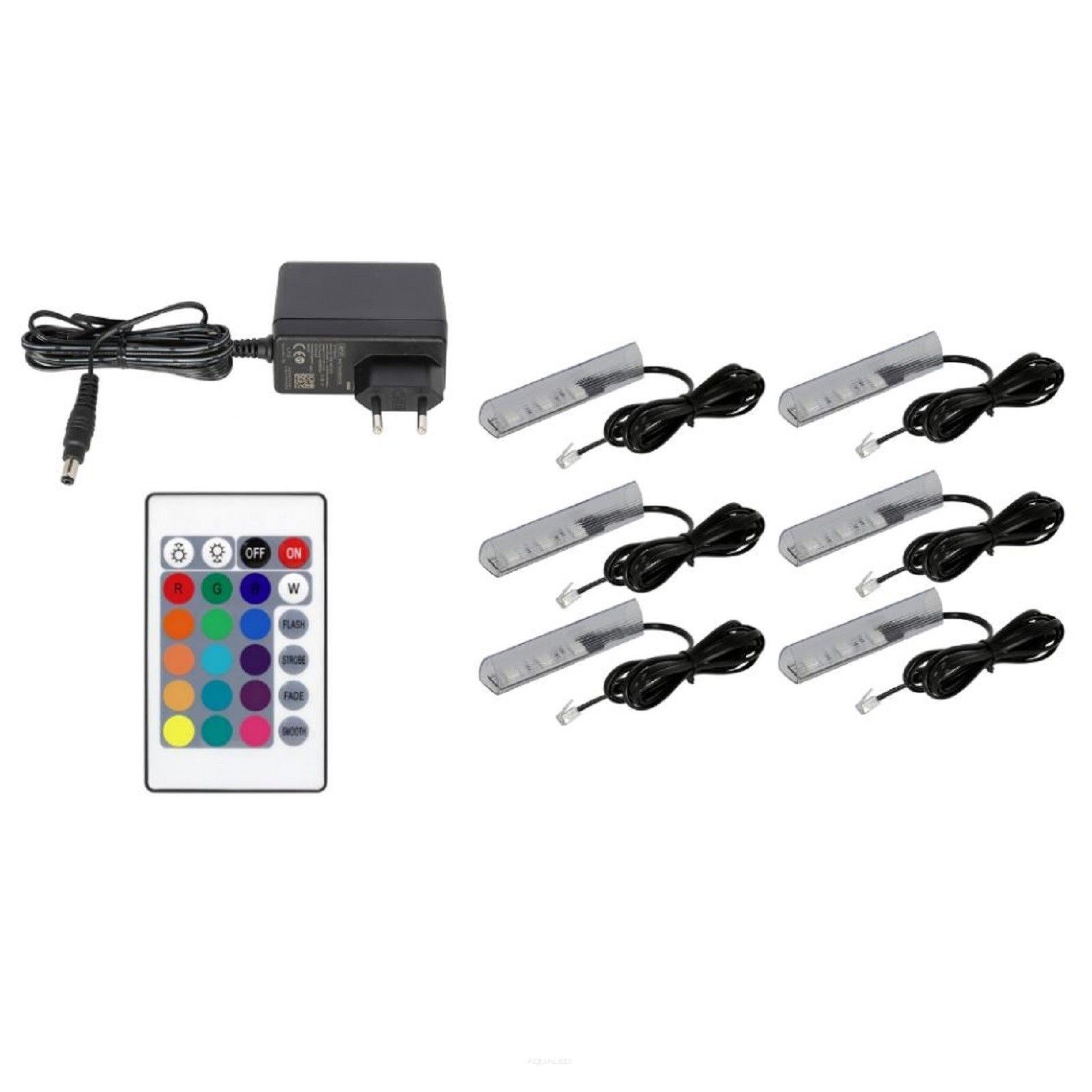 QLS QLS LED RGB 6er Set Glaskantenbeleuchtung Clip 12V mit Fernbedienung 16 Farben 11028