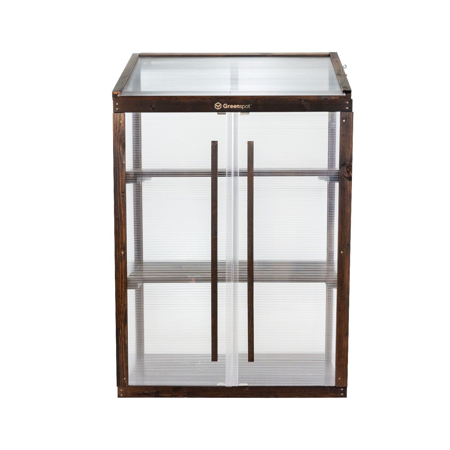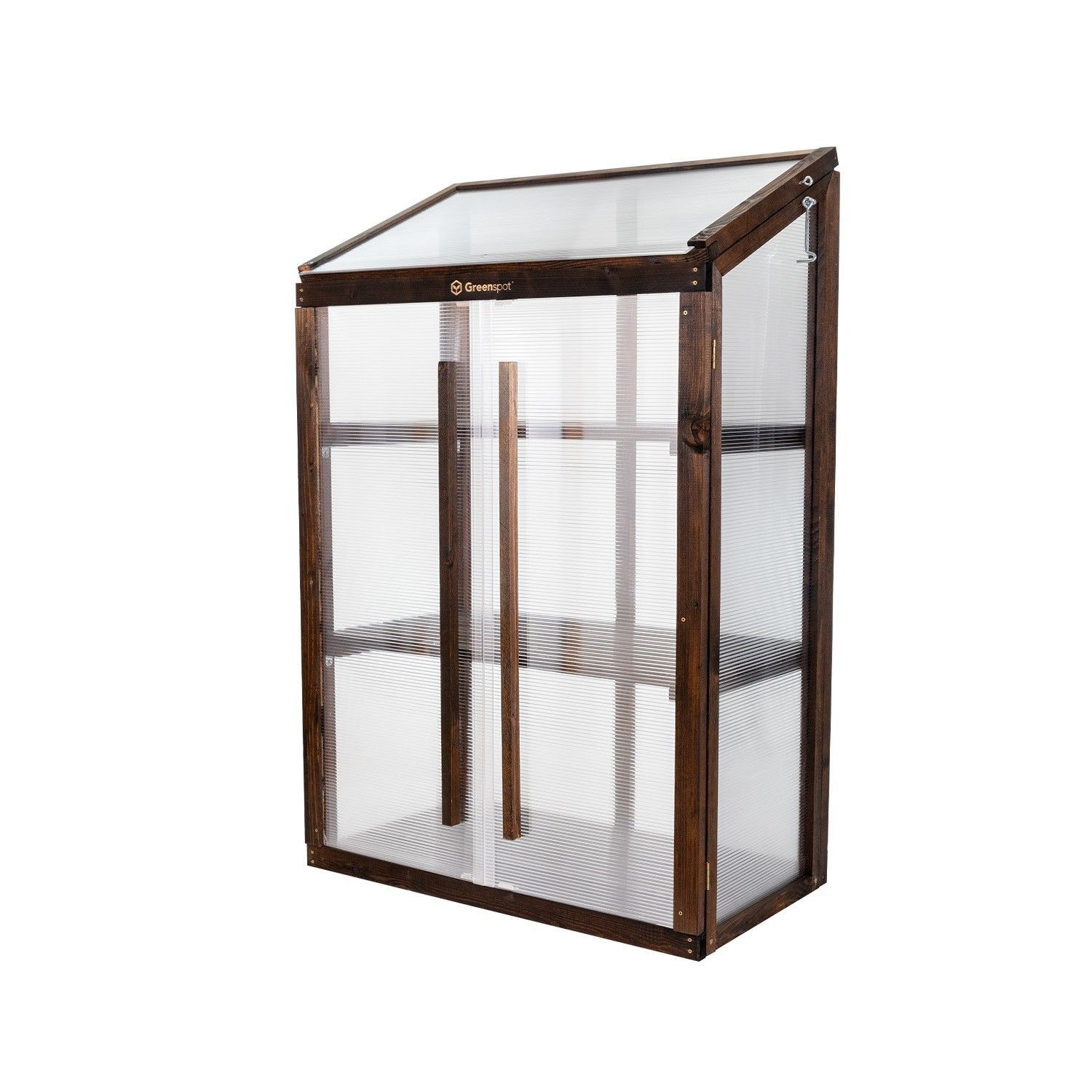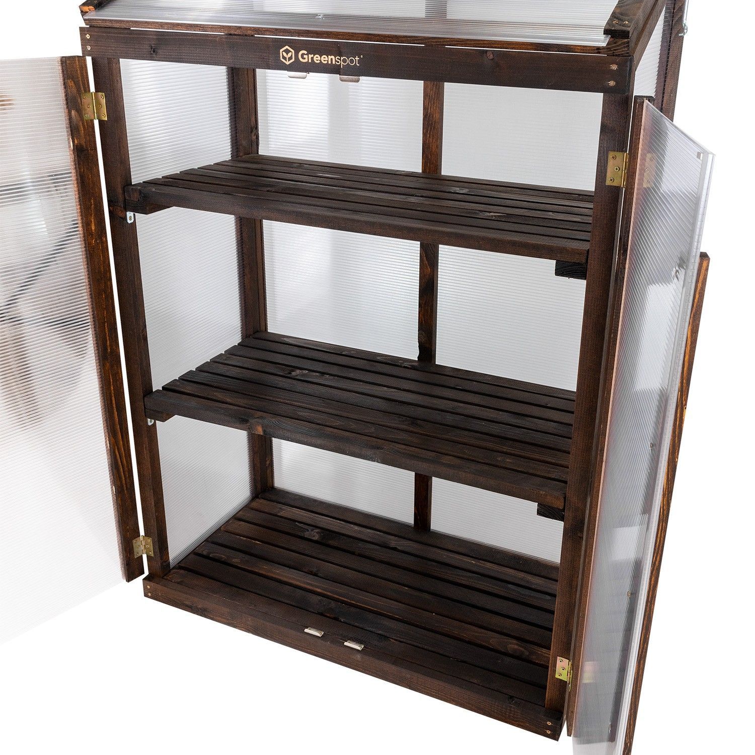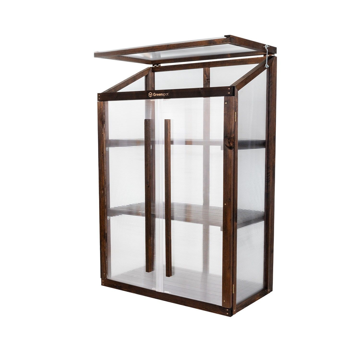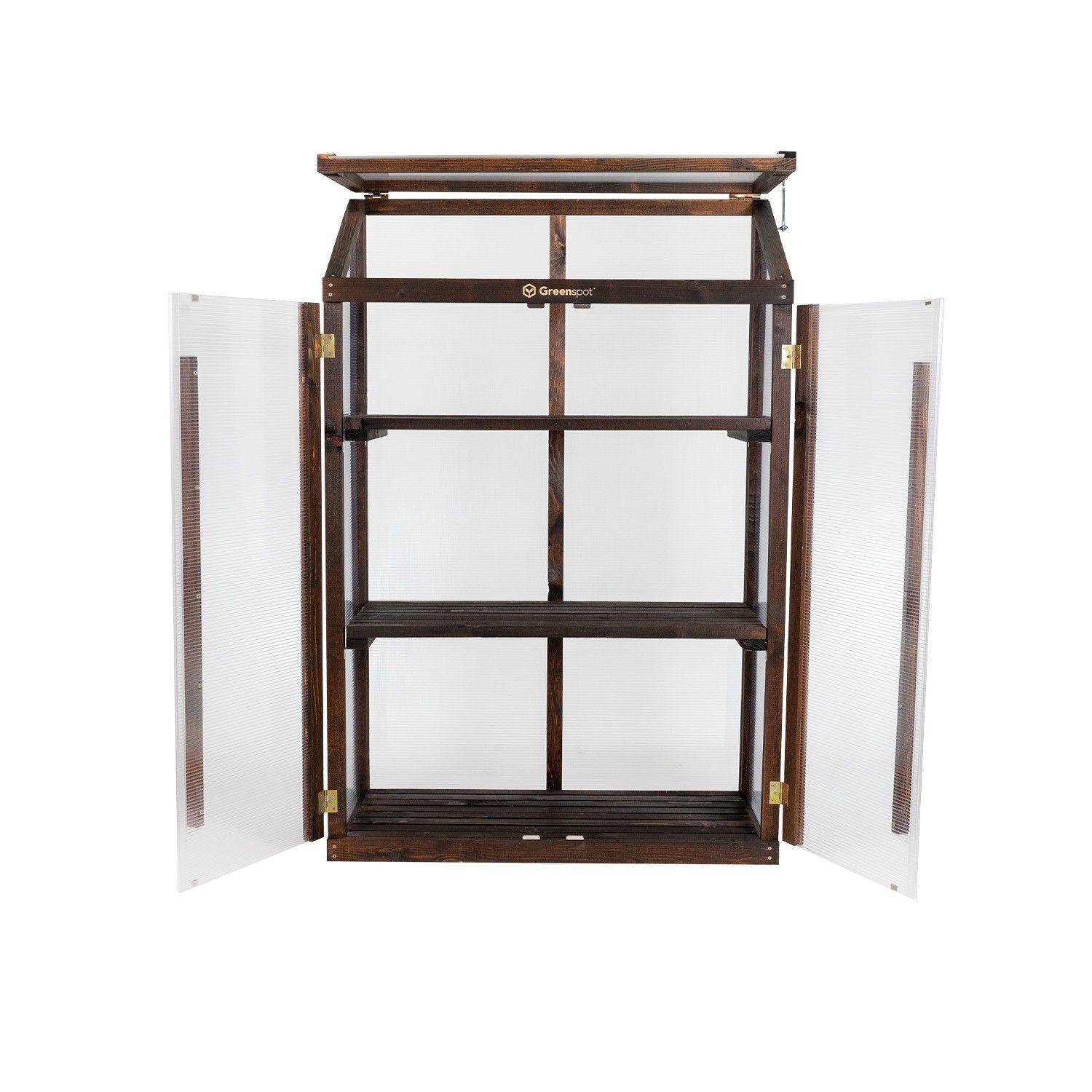 QLS QLS Mini Gewächshaus für Balkon Holz & Polycarbonat 80x42x121 cm dunkel 11264